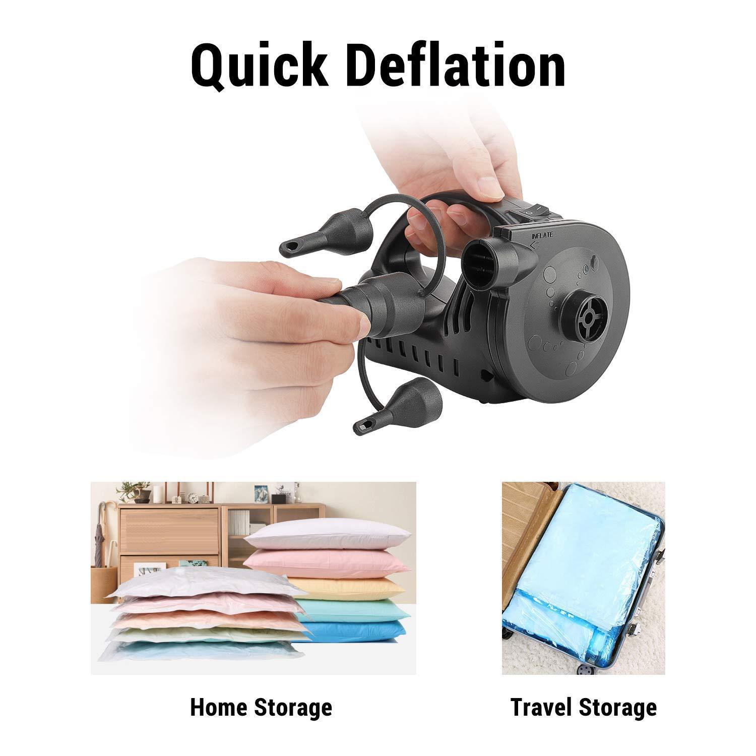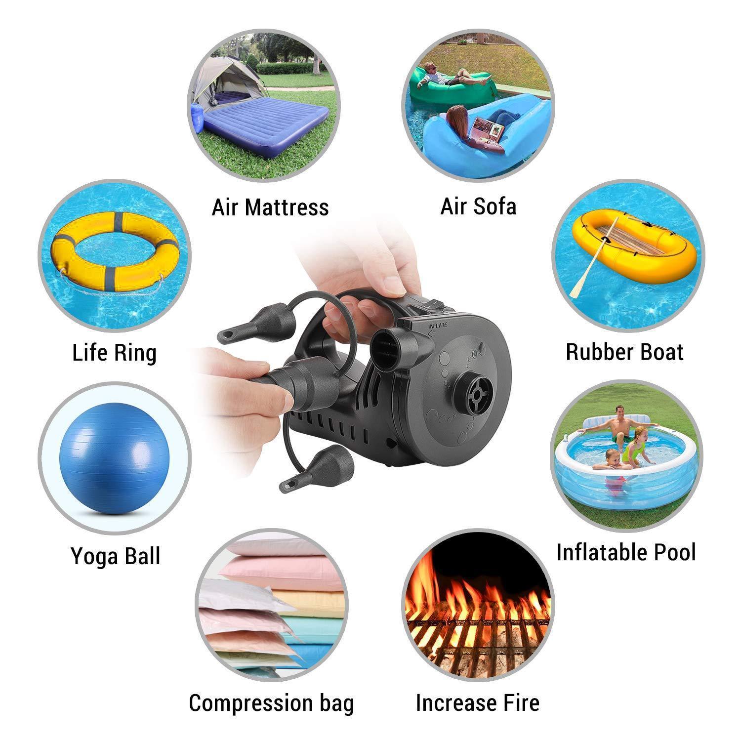 OlarHike Portable Quick-Fill Electric Air Mattress Pump for Pool Floats, Rechargeable Inflator Deflator with 110V AC & 12V DC Adapter, Black
