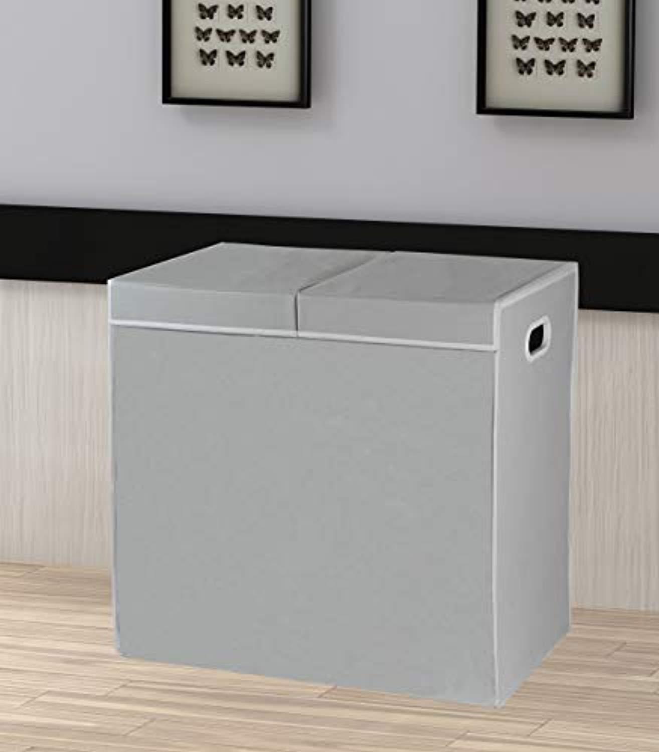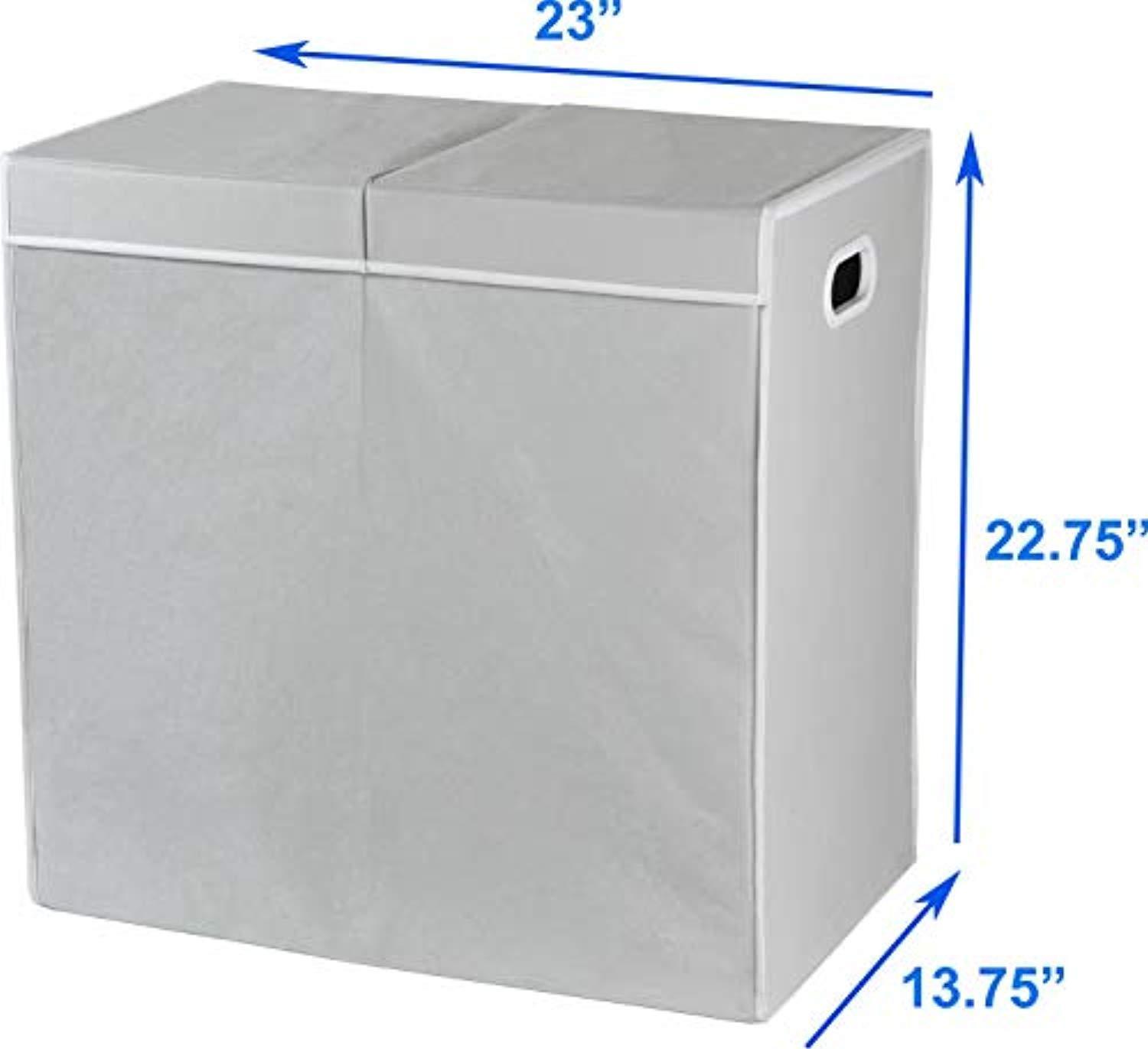 Simplehouseware Double Laundry Hamper with Lid and Removable Laundry Bags, Grey