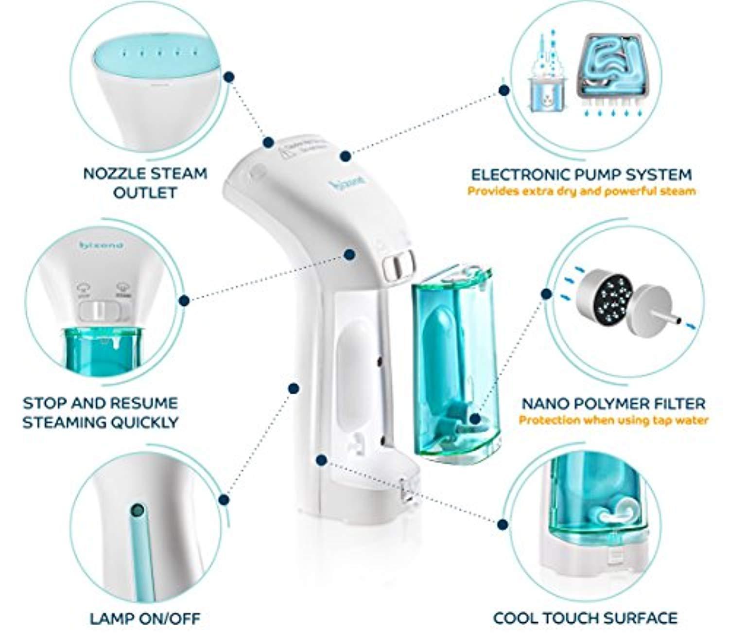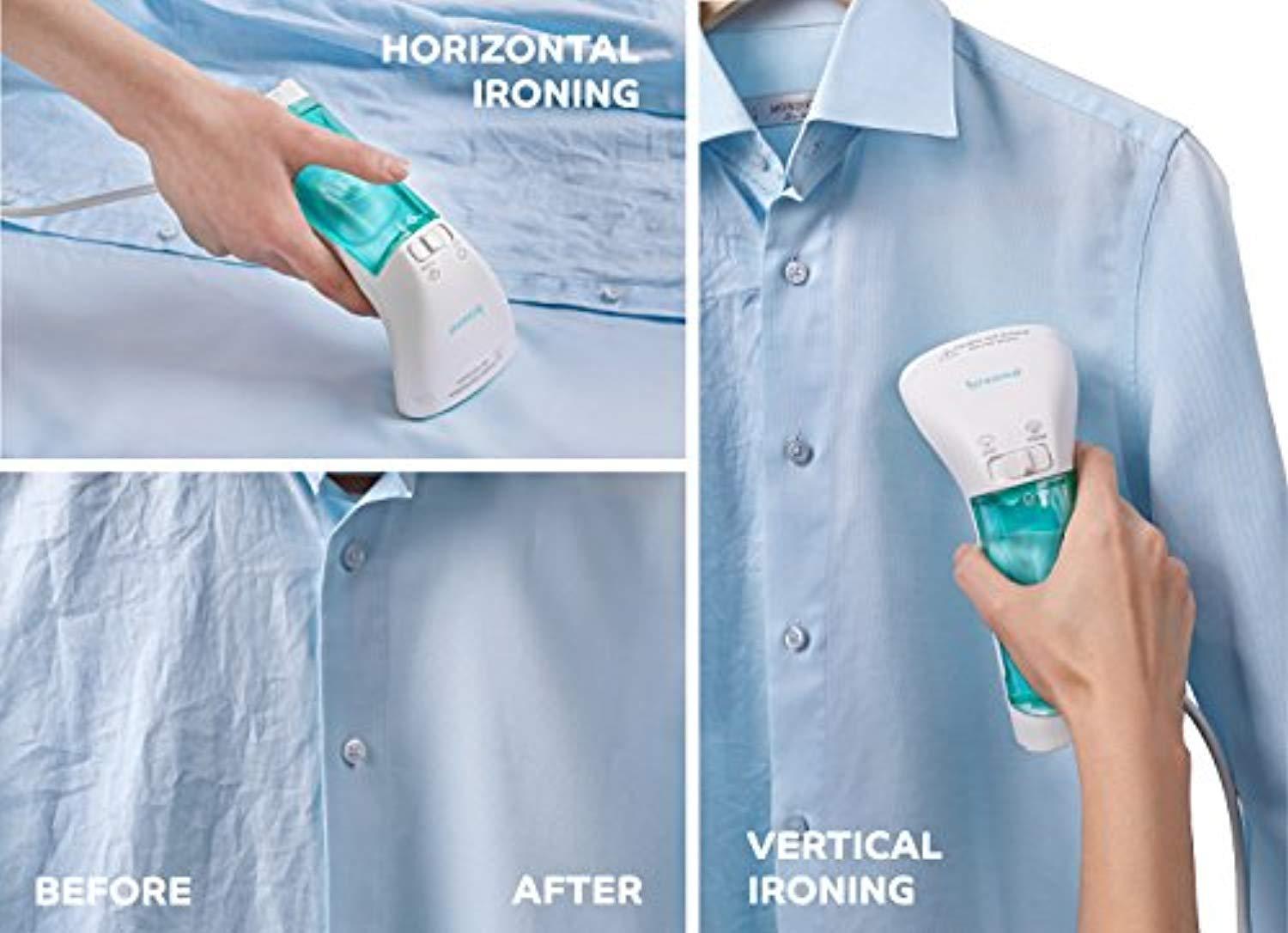 Steamer for Clothes Mini - Portable, Handheld Garment Steamer for Travel and Home - No Spitting, Works at All Angles - Best Ironing Steamer for Clothing, Any Fabrics and Curtains, 110V, (White)