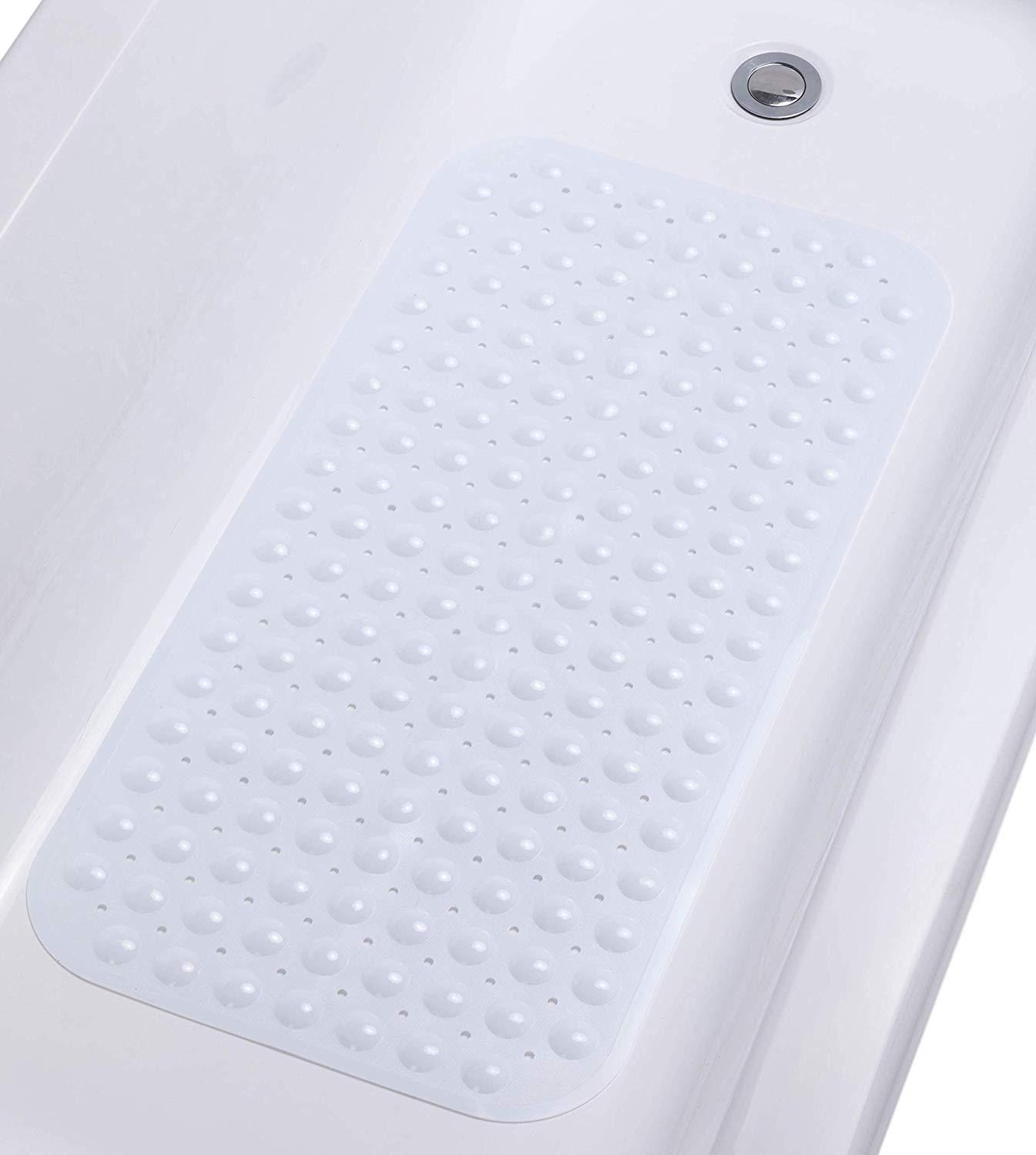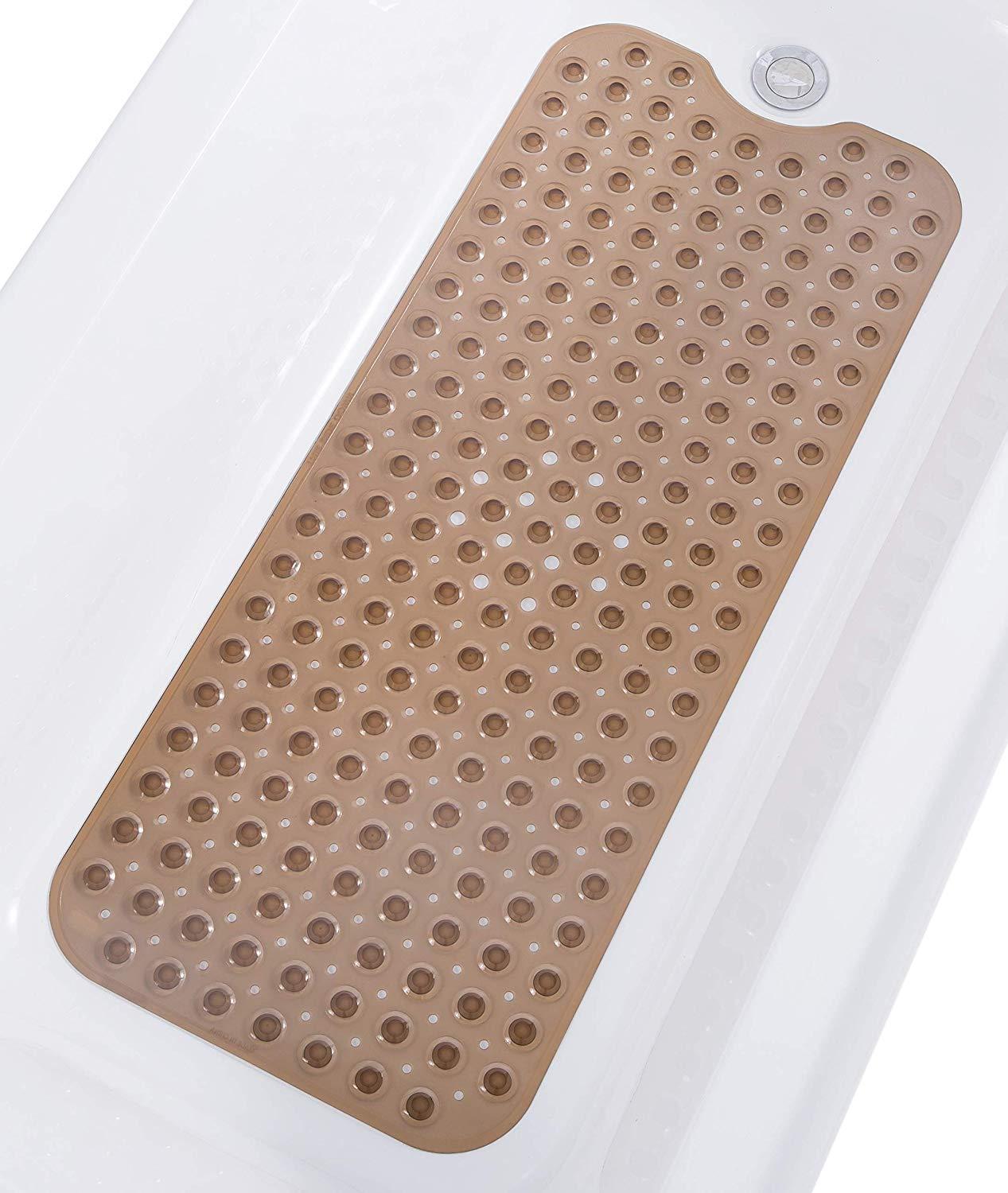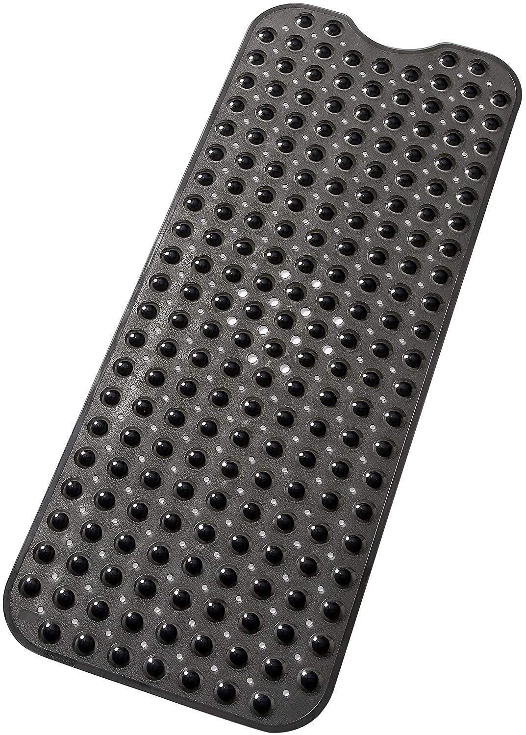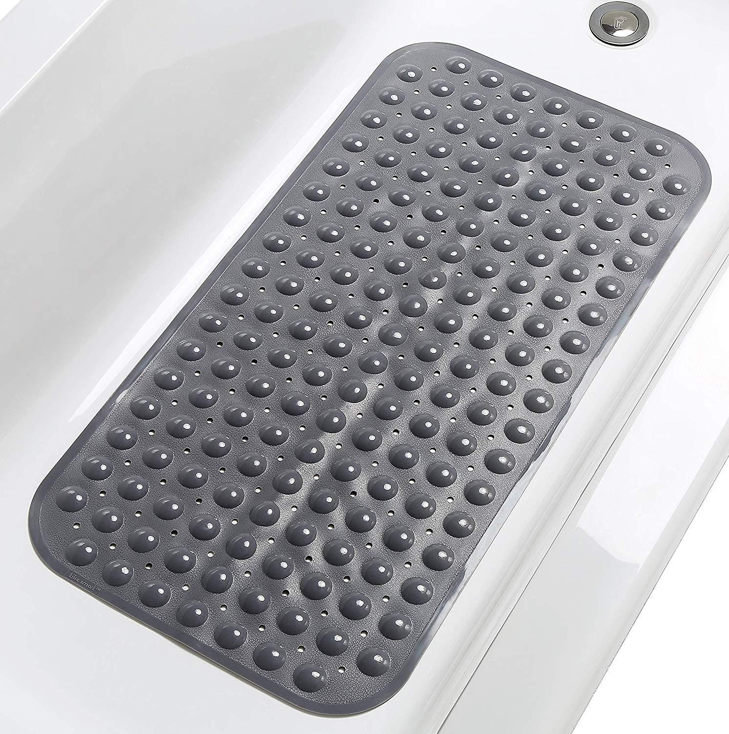 tike smart Extra-Long Non-Slip Bathtub Mat 39”x16” (for Smooth/Non-Textured Tubs Only) Safe, Clean, Anti-Bacterial, Machine-Washable, Superior Grip&Drainage, Vinyl Bath Mat, Opaque Gray (Grey) …