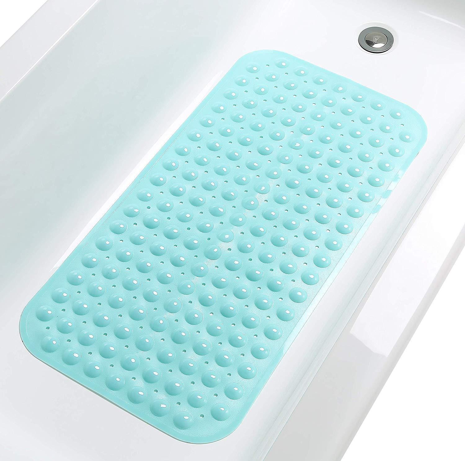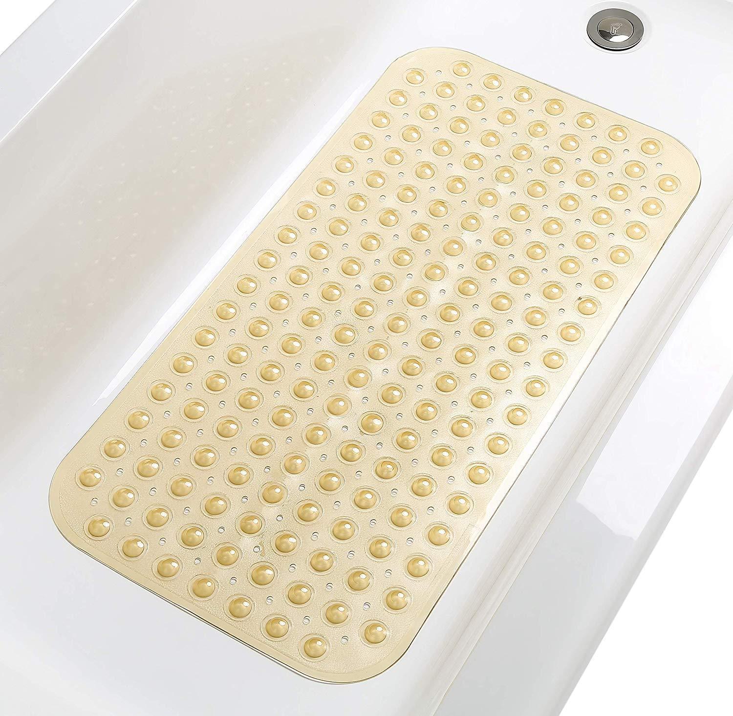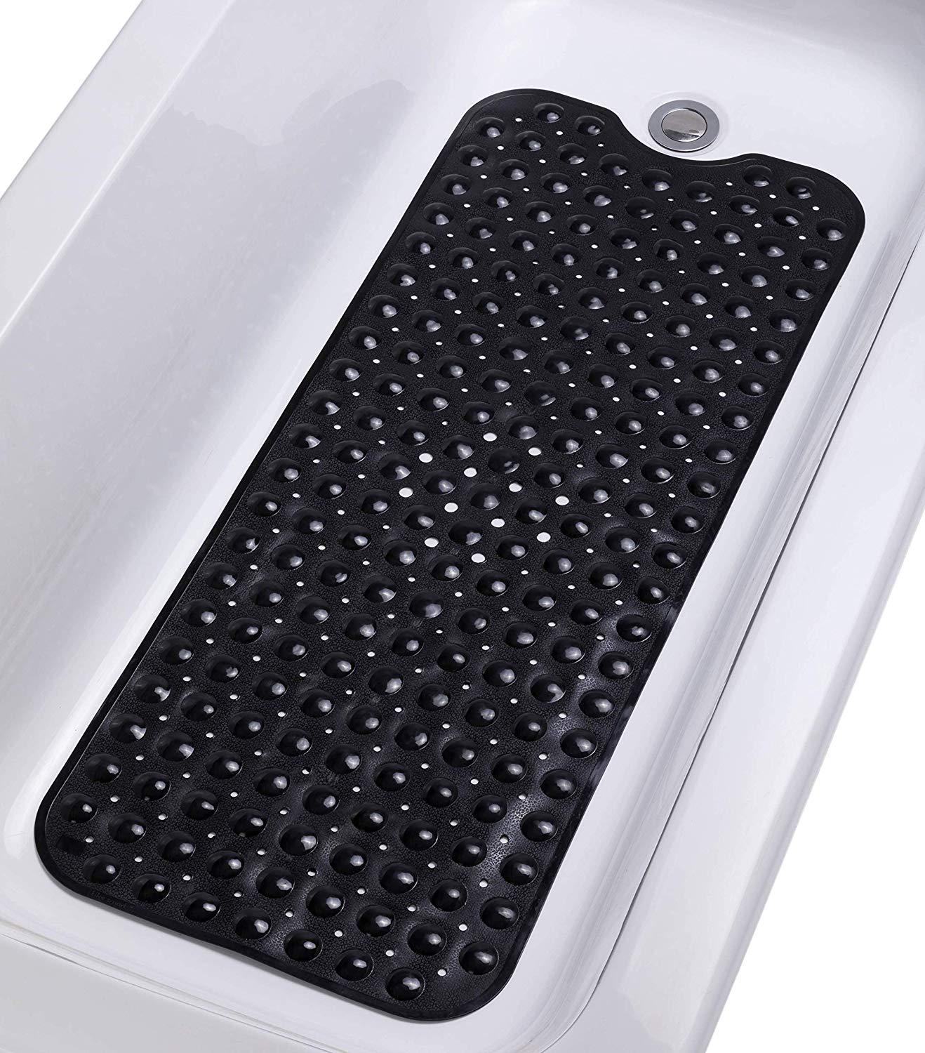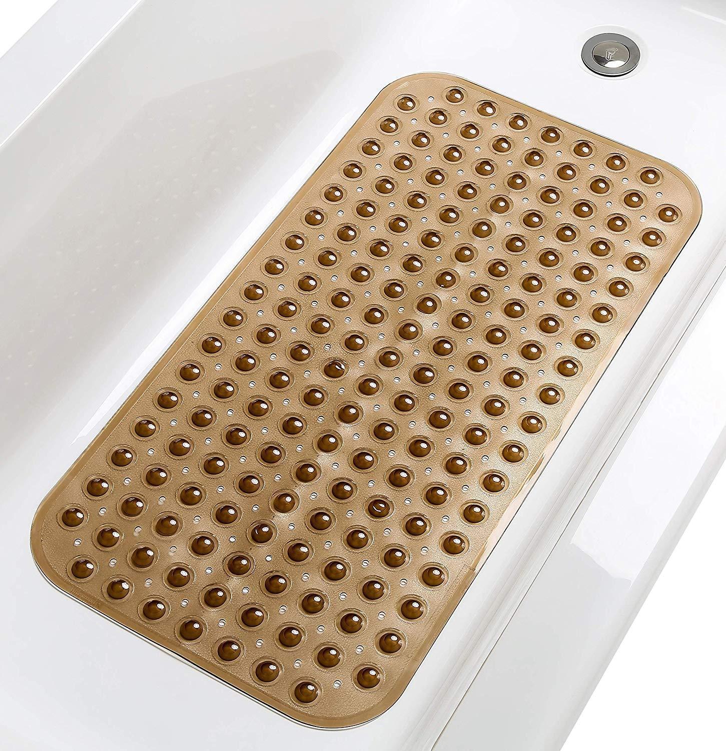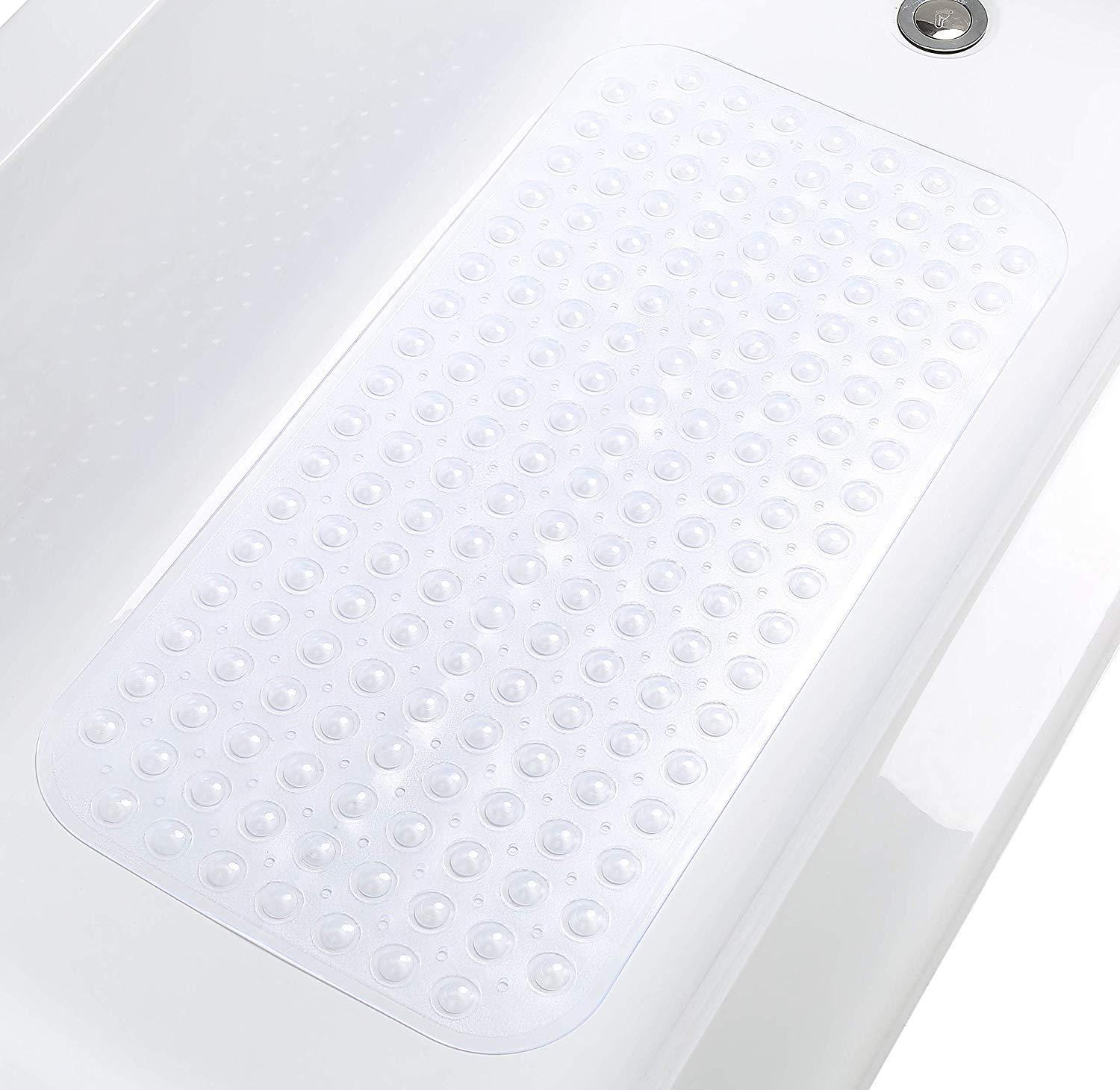 tike smart Extra-Long Non-Slip Bathtub Mat 39”x16” (for Smooth/Non-Textured Tubs Only) Safe, Clean, Anti-Bacterial, Machine-Washable, Superior Grip&Drainage, Vinyl Bath Mat, Opaque Gray (Grey) …