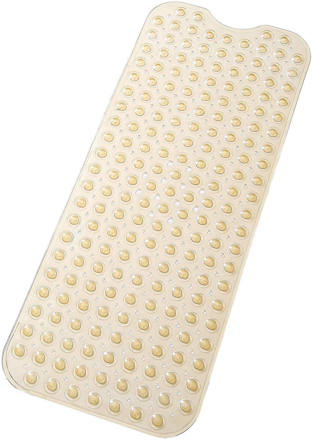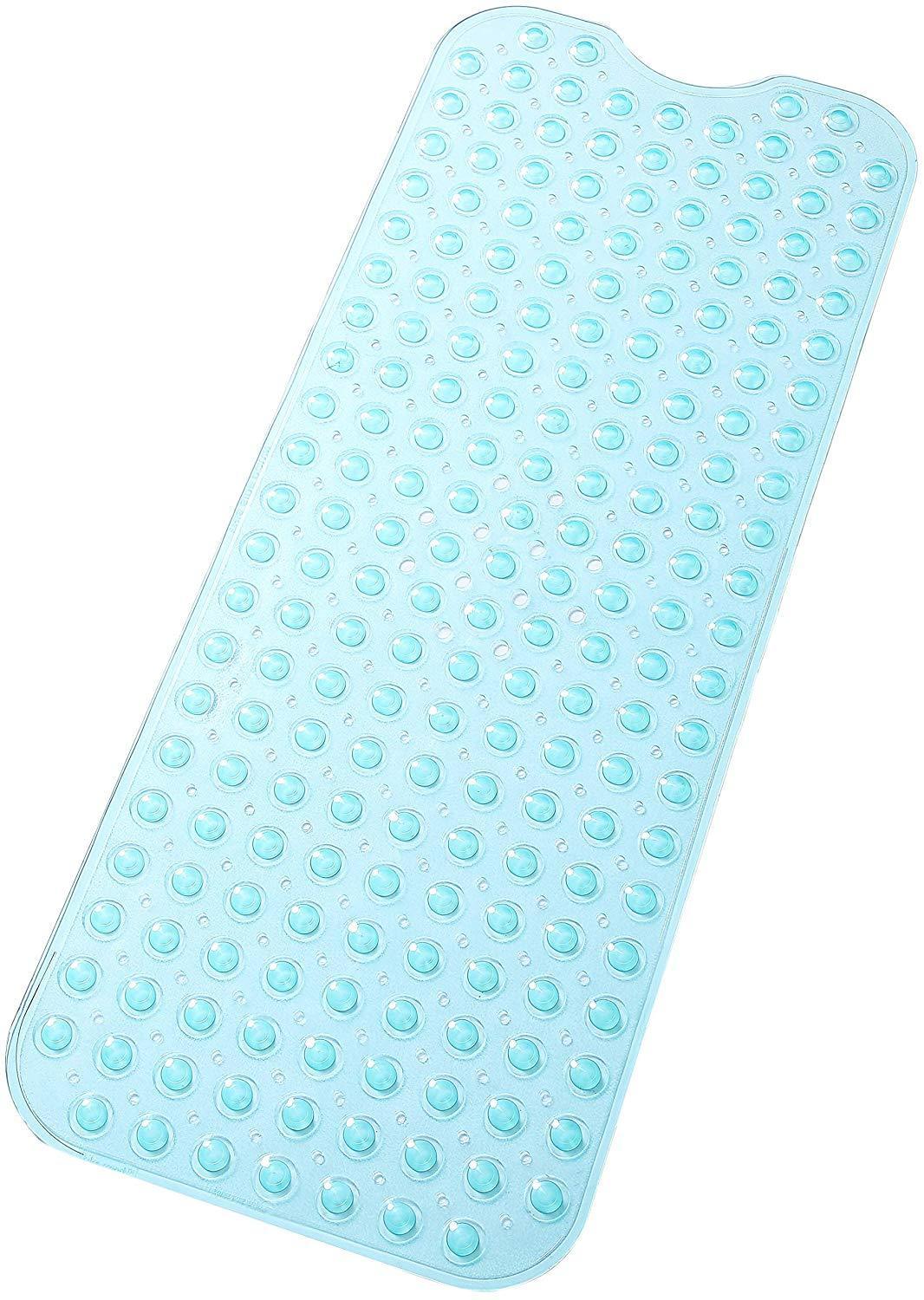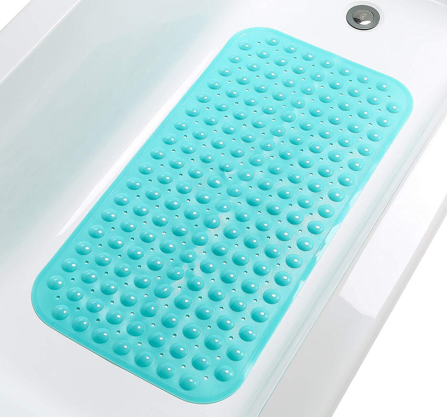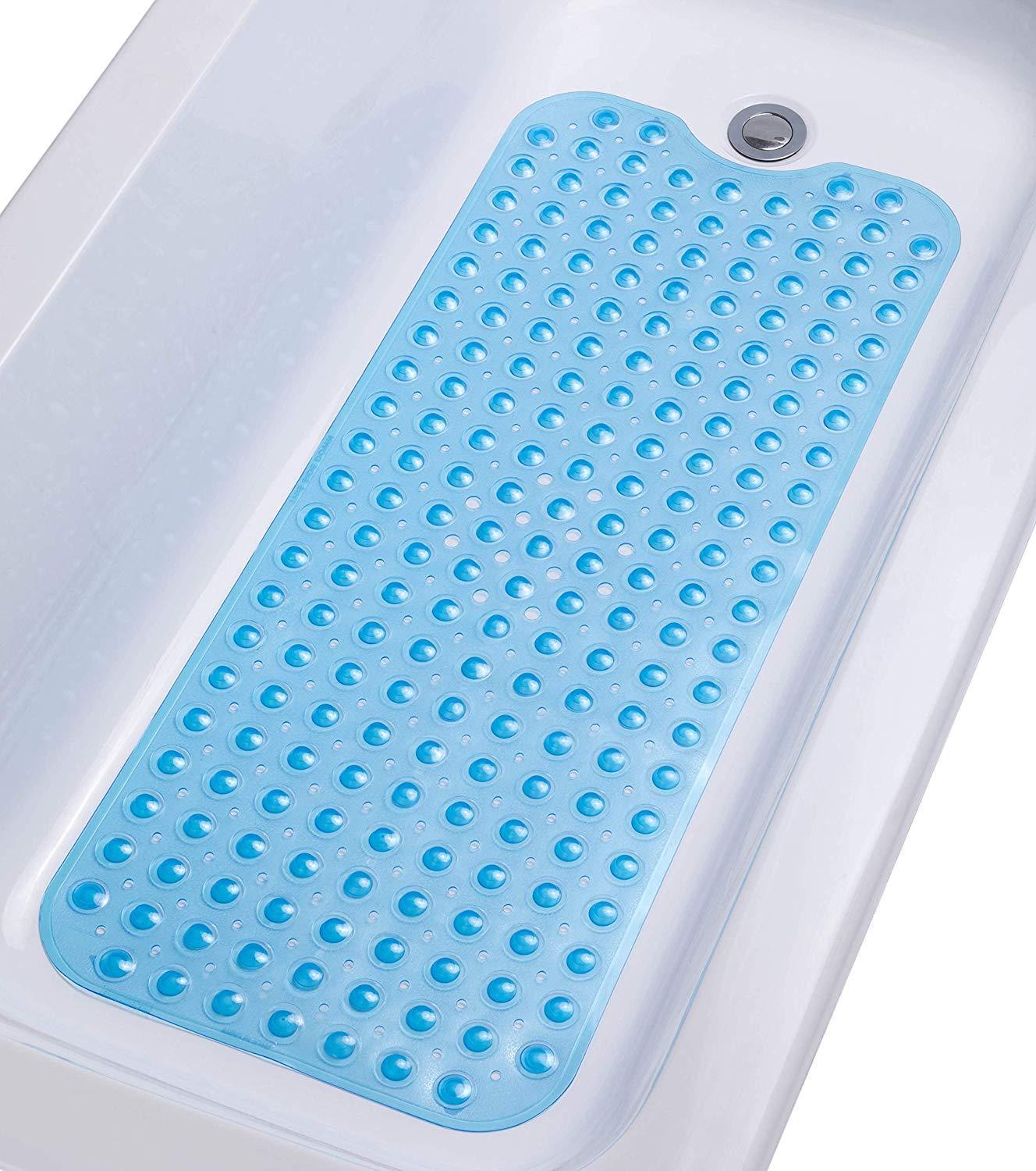 tike smart Extra-Long Non-Slip Bathtub Mat 39”x16” (for Smooth/Non-Textured Tubs Only) Safe, Clean, Anti-Bacterial, Machine-Washable, Superior Grip&Drainage, Vinyl Bath Mat, Opaque Gray (Grey) …