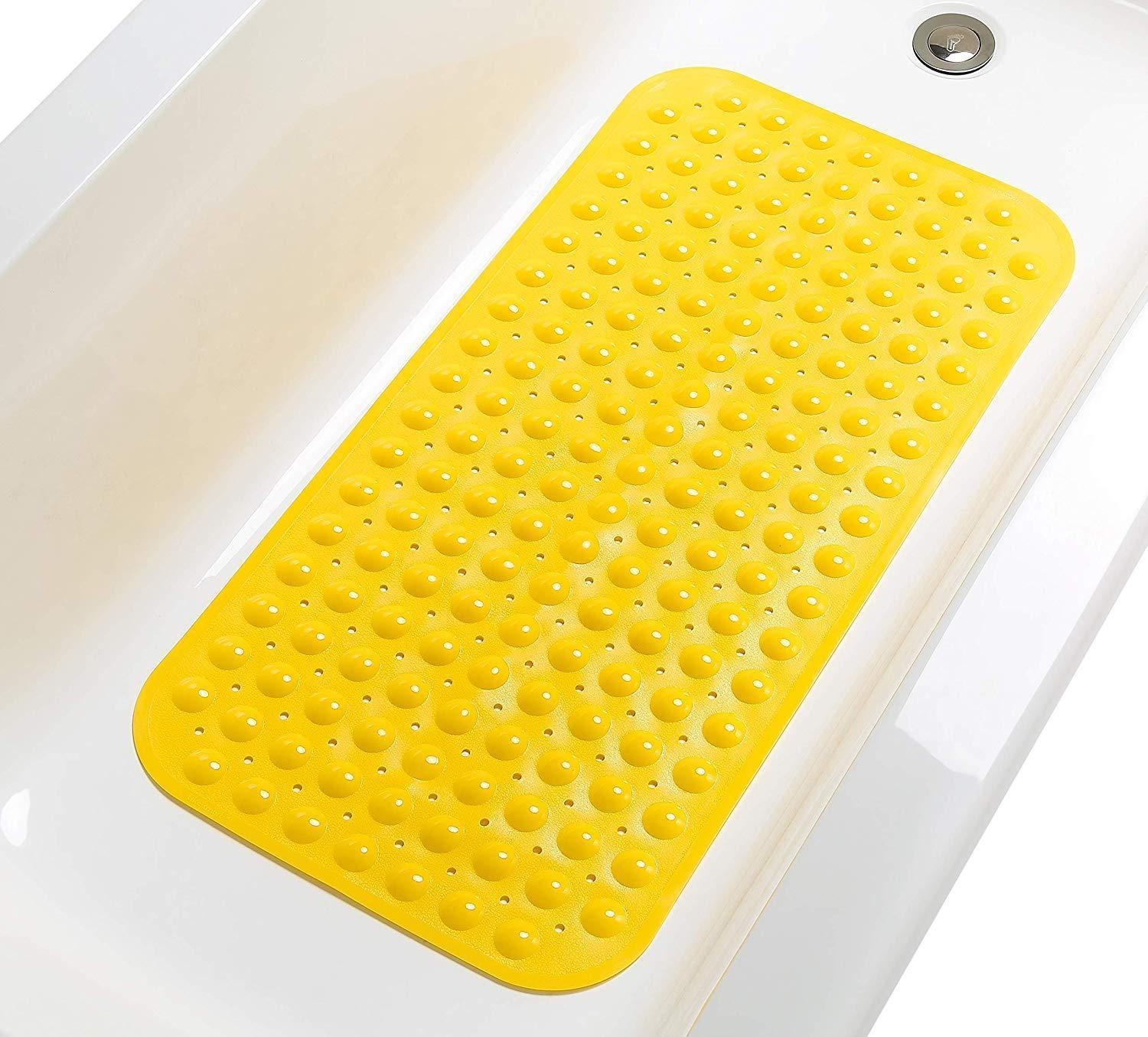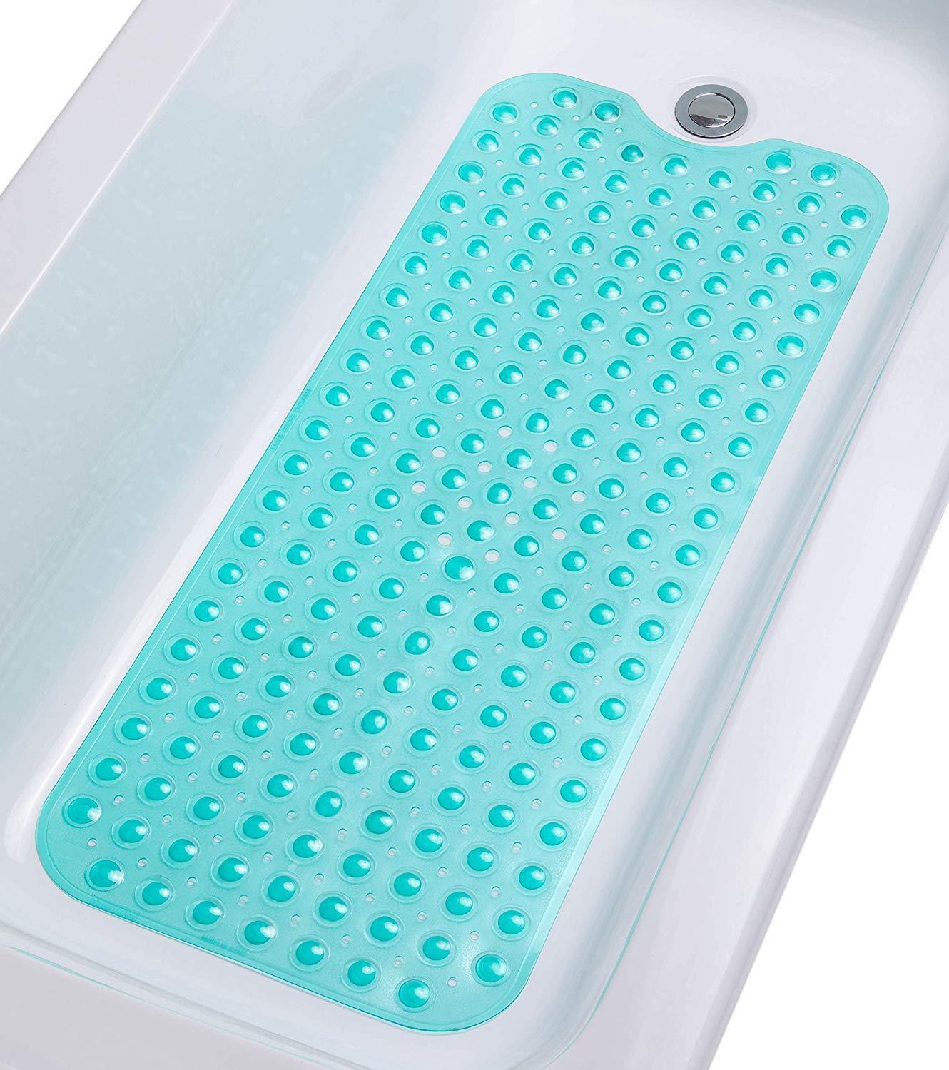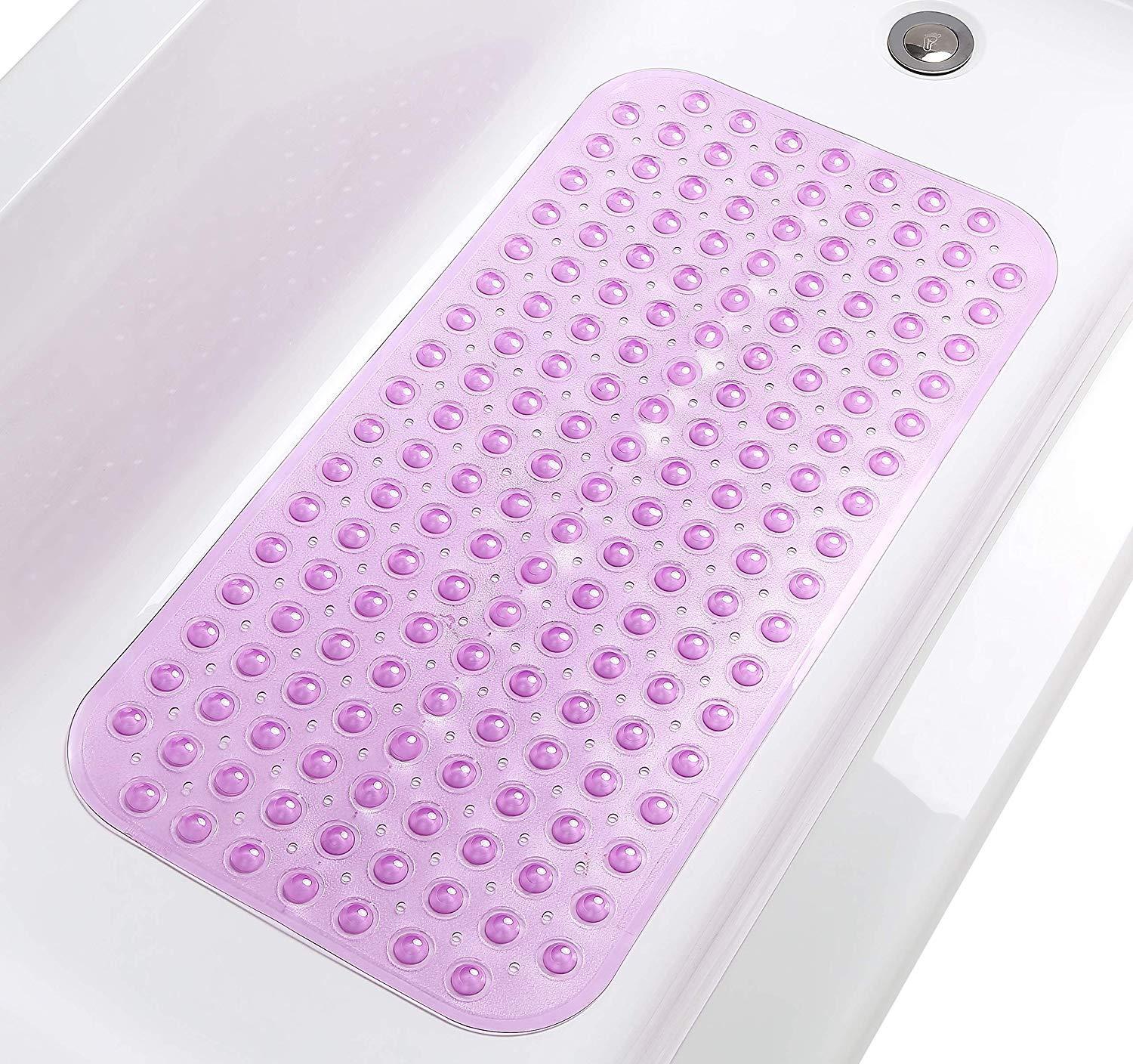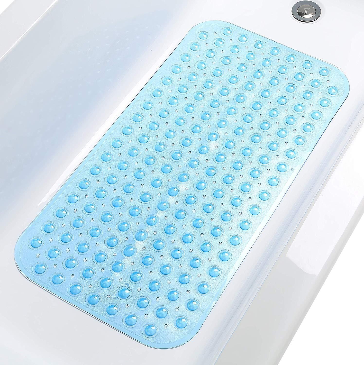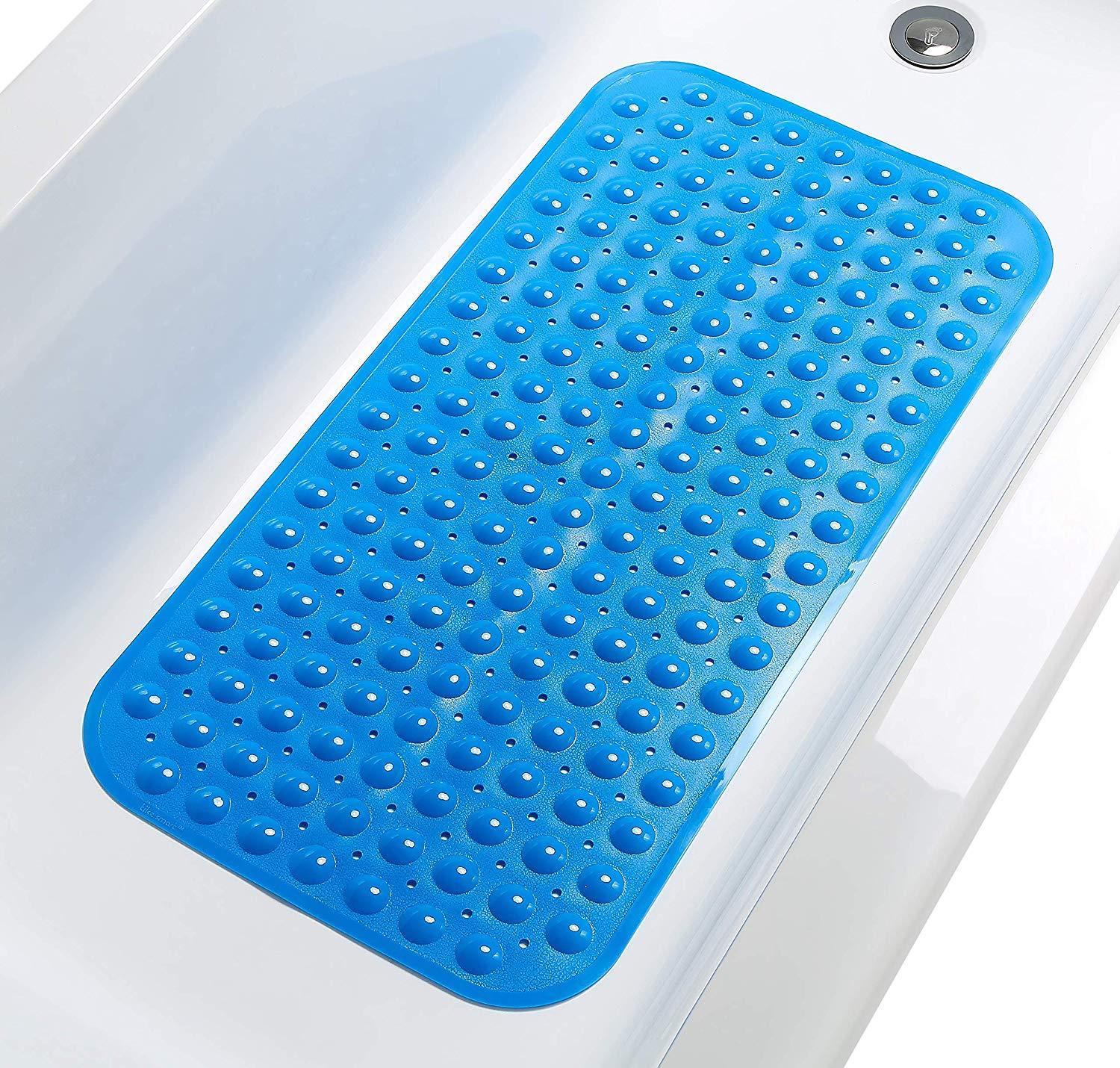 tike smart Extra-Long Non-Slip Bathtub Mat 39”x16” (for Smooth/Non-Textured Tubs Only) Safe, Clean, Anti-Bacterial, Machine-Washable, Superior Grip&Drainage, Vinyl Bath Mat, Opaque Gray (Grey) …