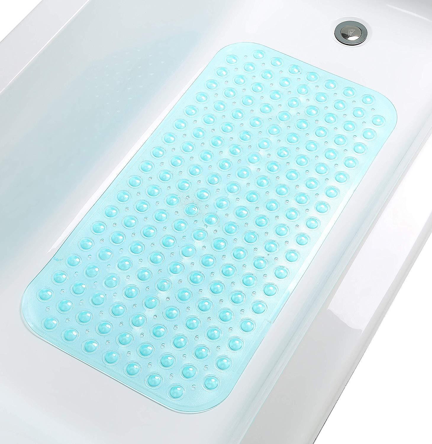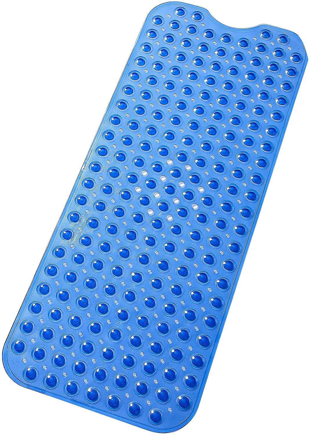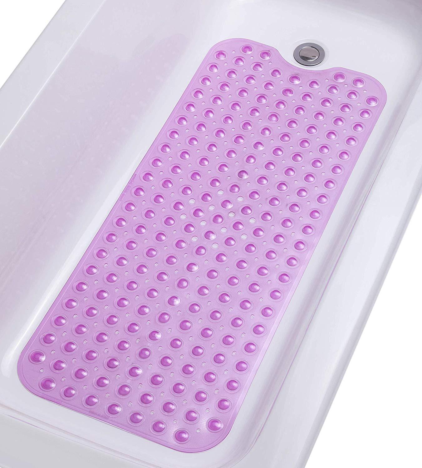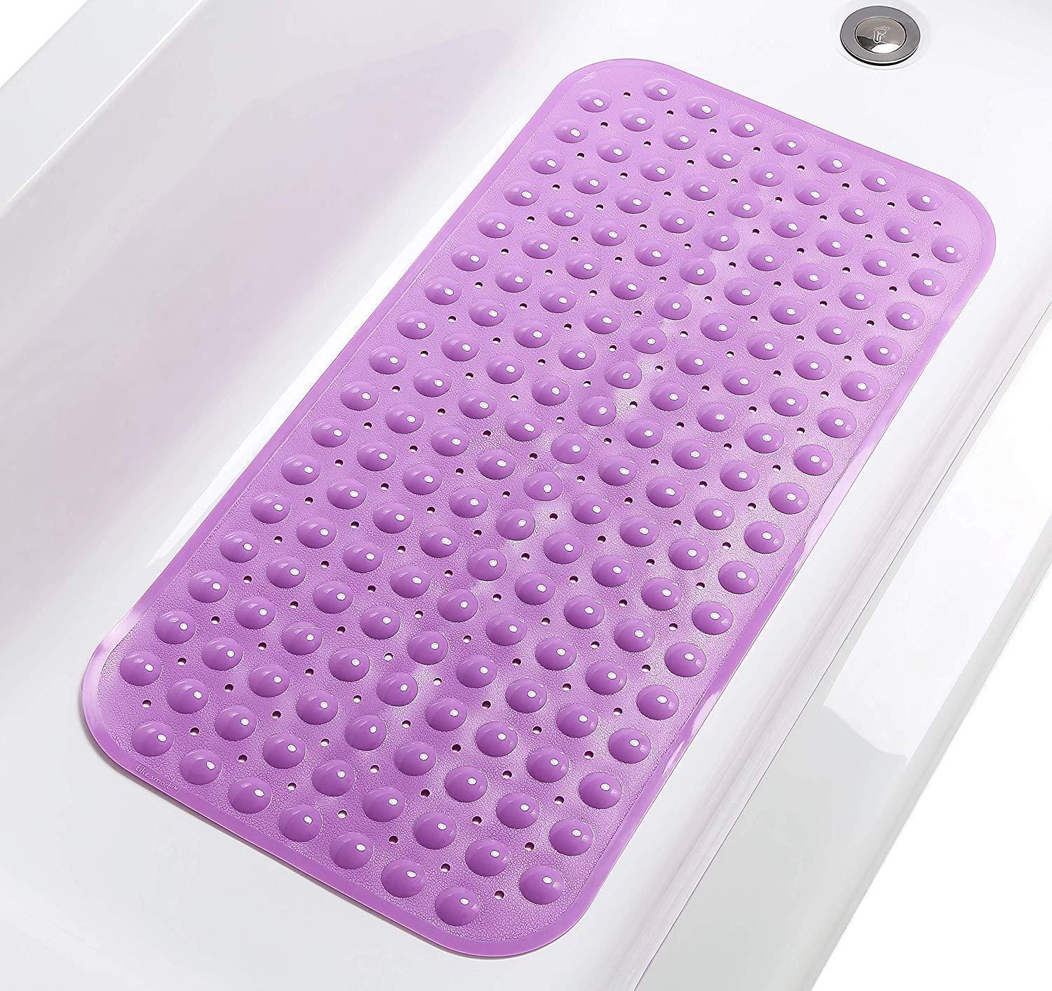 tike smart Extra-Long Non-Slip Bathtub Mat 39”x16” (for Smooth/Non-Textured Tubs Only) Safe, Clean, Anti-Bacterial, Machine-Washable, Superior Grip&Drainage, Vinyl Bath Mat, Opaque Gray (Grey) …