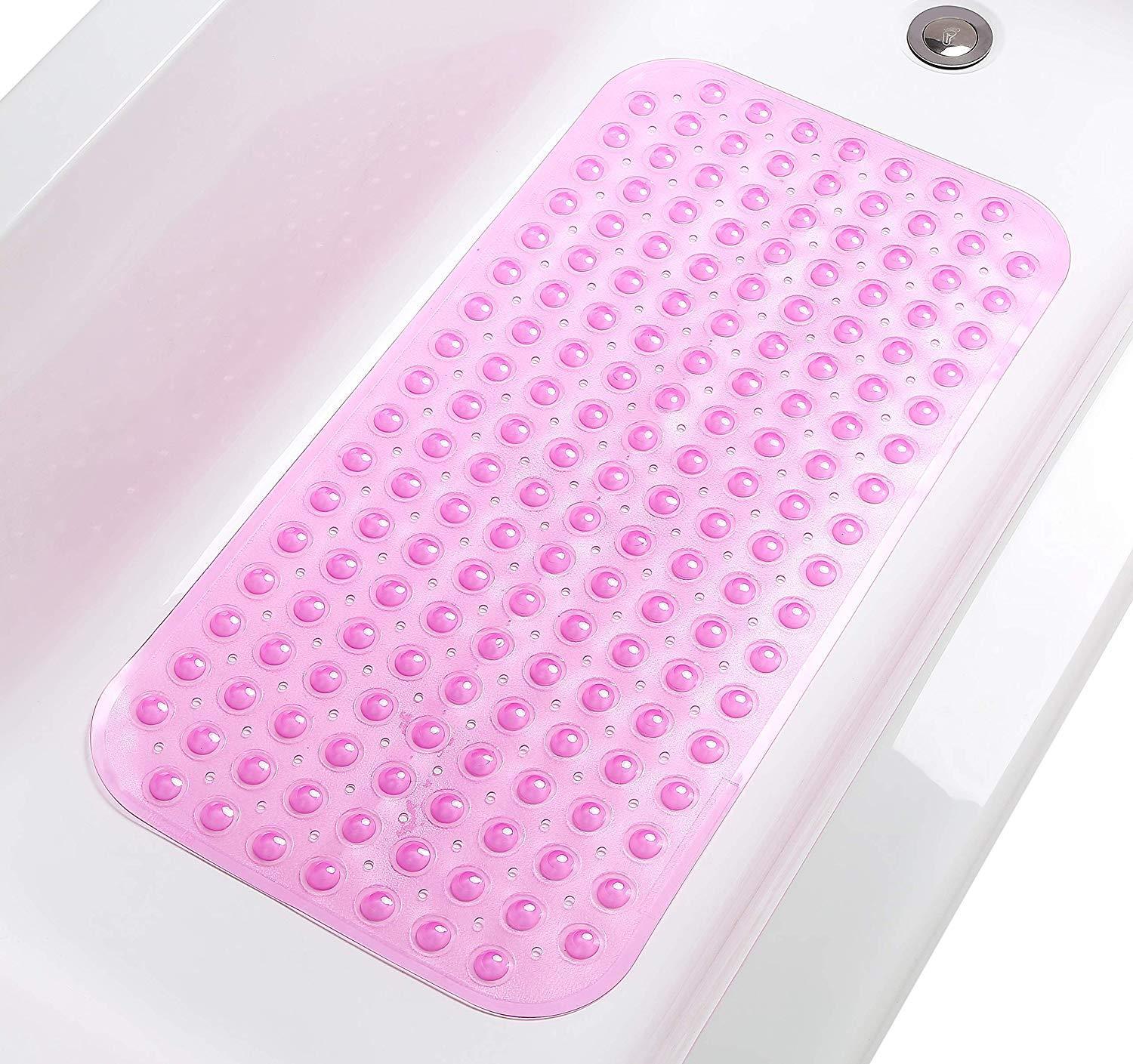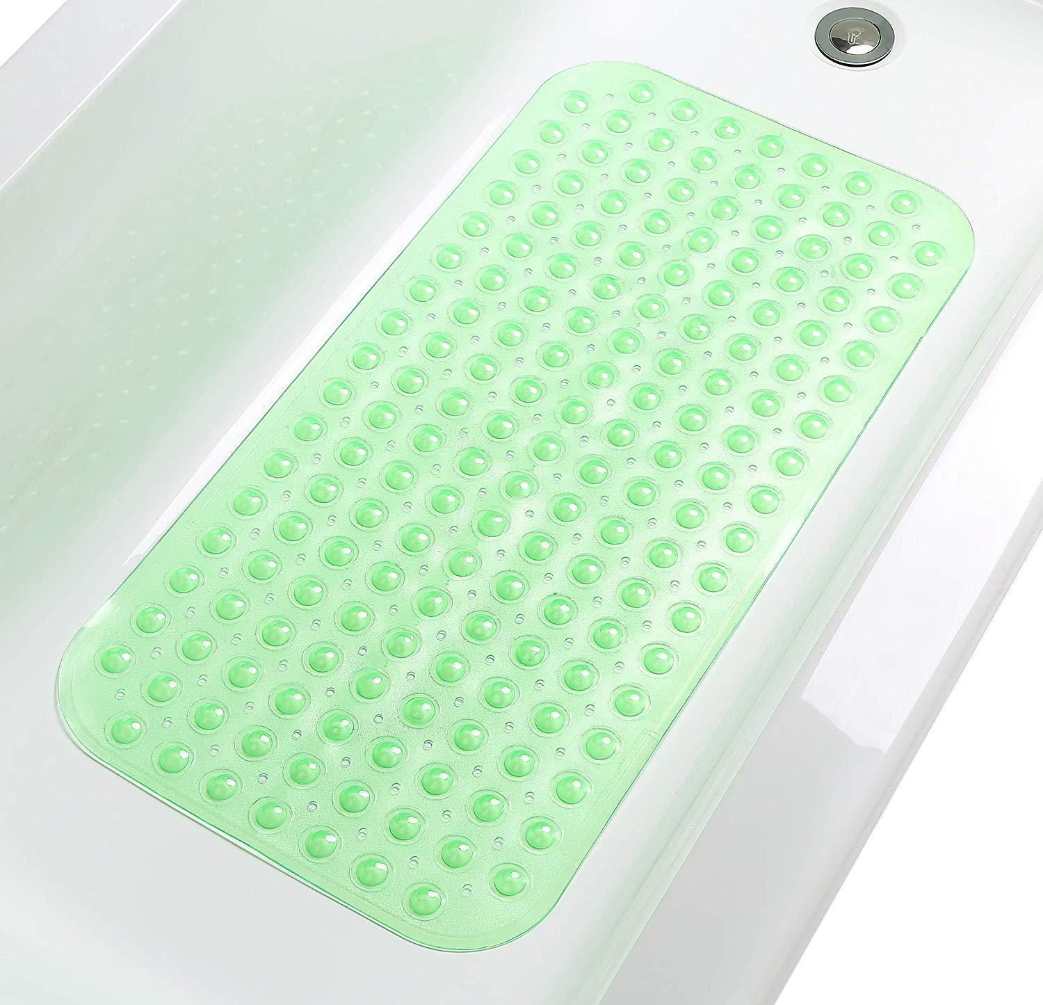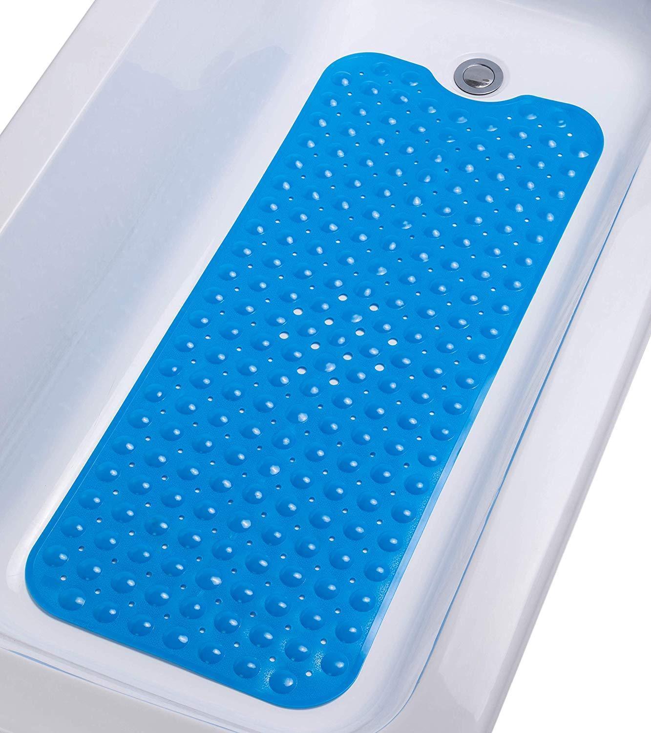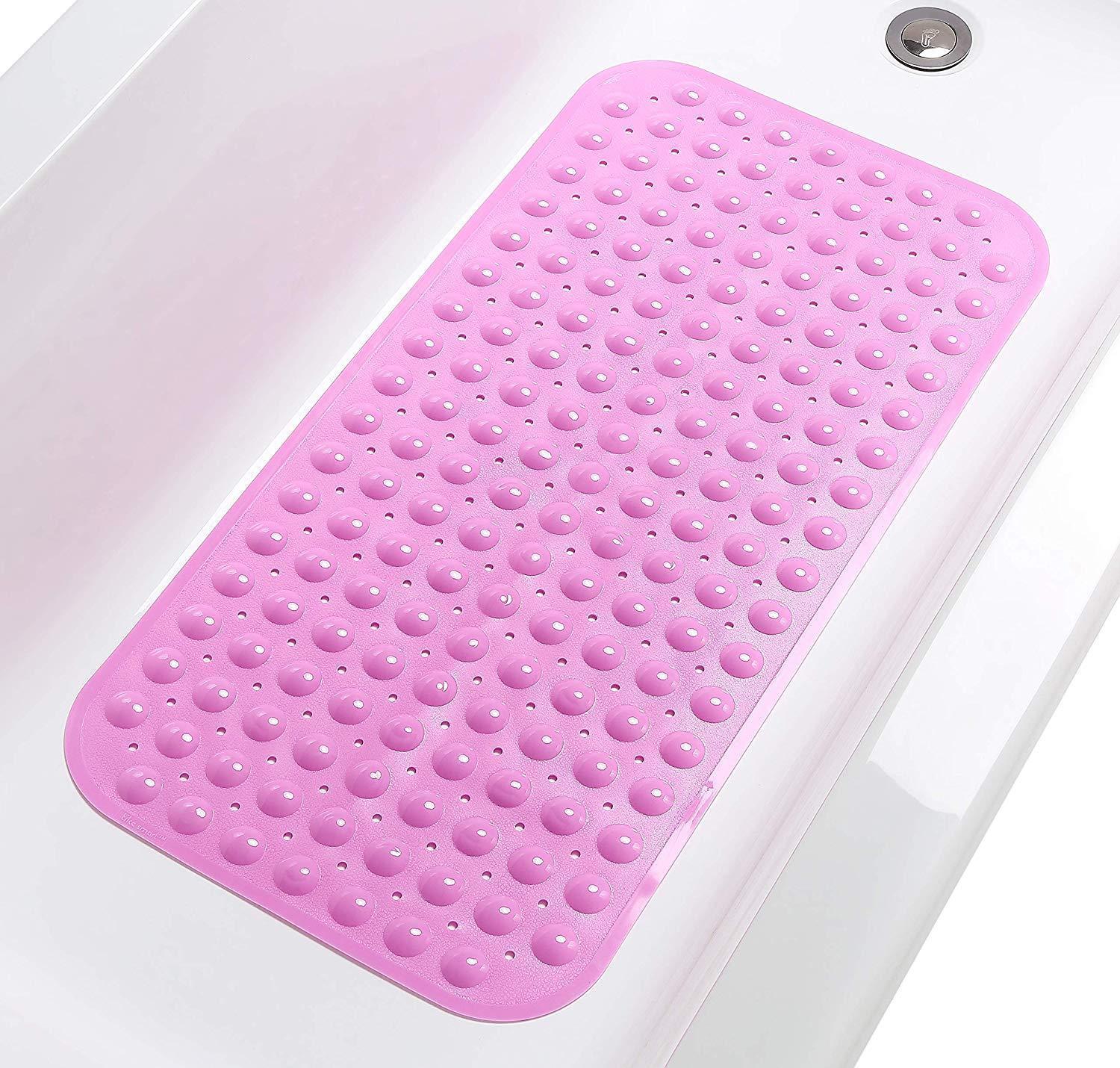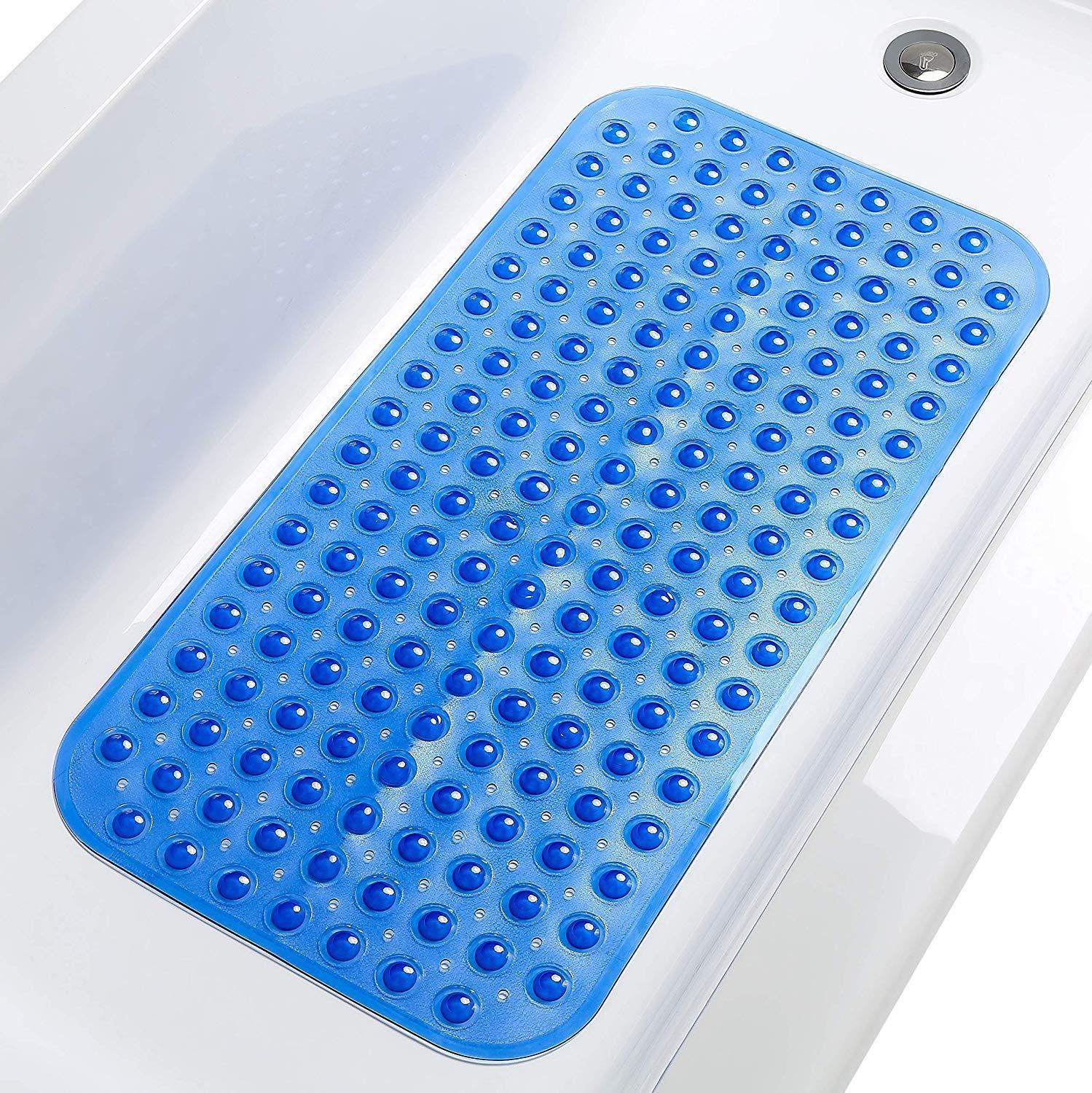 tike smart Extra-Long Non-Slip Bathtub Mat 39”x16” (for Smooth/Non-Textured Tubs Only) Safe, Clean, Anti-Bacterial, Machine-Washable, Superior Grip&Drainage, Vinyl Bath Mat, Opaque Gray (Grey) …