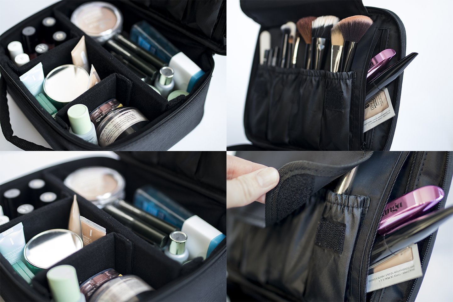 EXCELLENT PROTECTION: Hard cover for keeping cosmetics safe, 4 smalls pockets keep cosmetic brush from dropping.