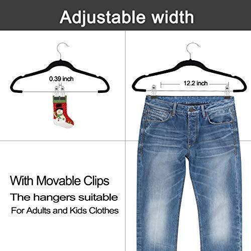 YIKALU Clothes Hangers with Clips 20 Pack Velvet Hangers Non Slip Hangers Premium Ultra Thin Pants Hangers Skirt Hangers with Swivel Hooks for Closet(Black)