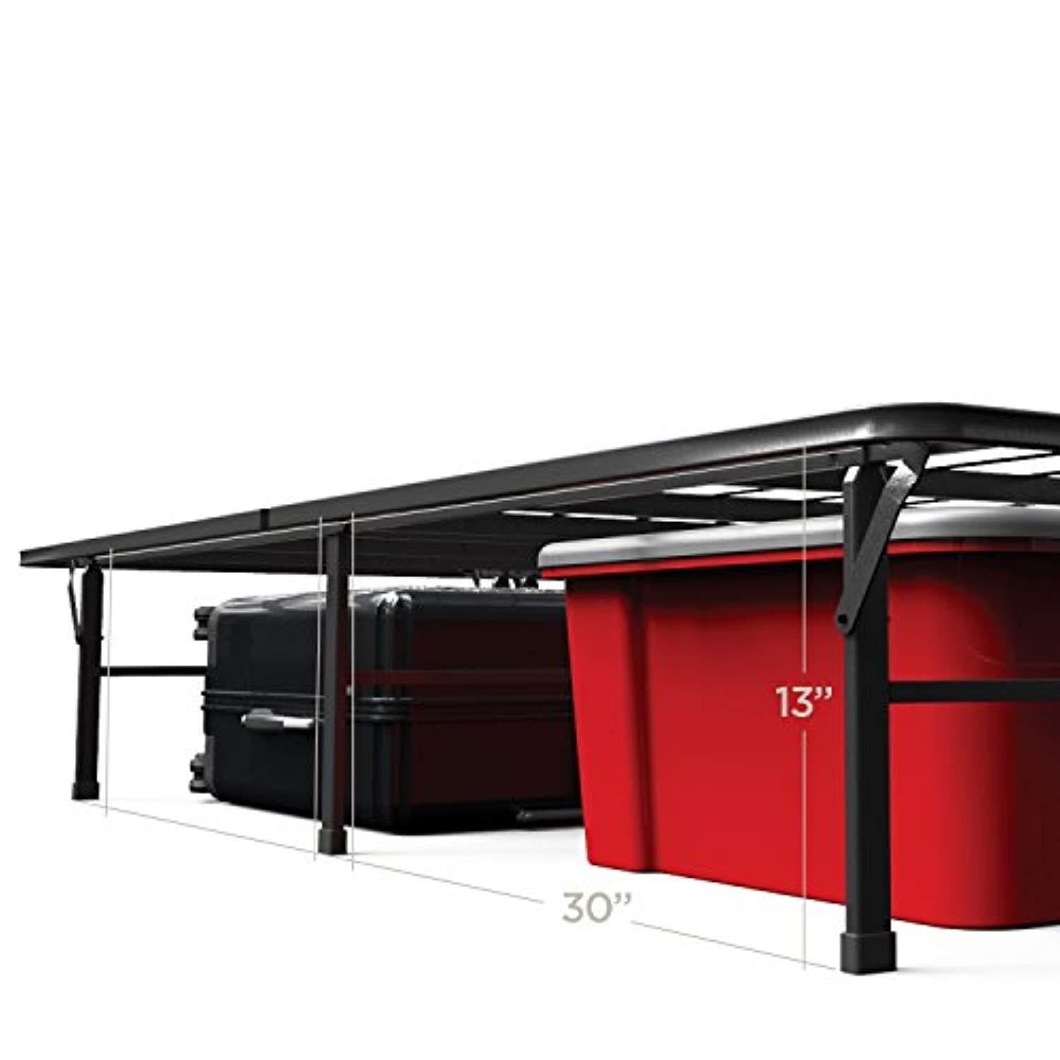Reinforced stability with t-shape leg construction and locking system / Best fit for larger than average weight people No tools are required, assembles in minutes Replaces bed frame and box spring. King- 76 x 80 x 16 inches 12.5 inches of clearance under the frame for valuable under bed storage space Requires the use of SmartBase headboard brackets to connect to a headboard