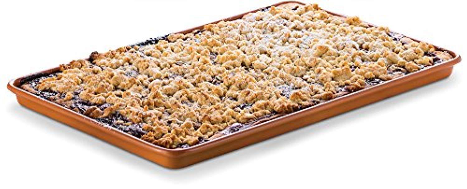 PERFECTLY EVEN BAKING: Get perfect results every time you bake! Copper infused bakeware ensures even heat distribution for perfectly baked cookies and pastries on this baking sheet.
