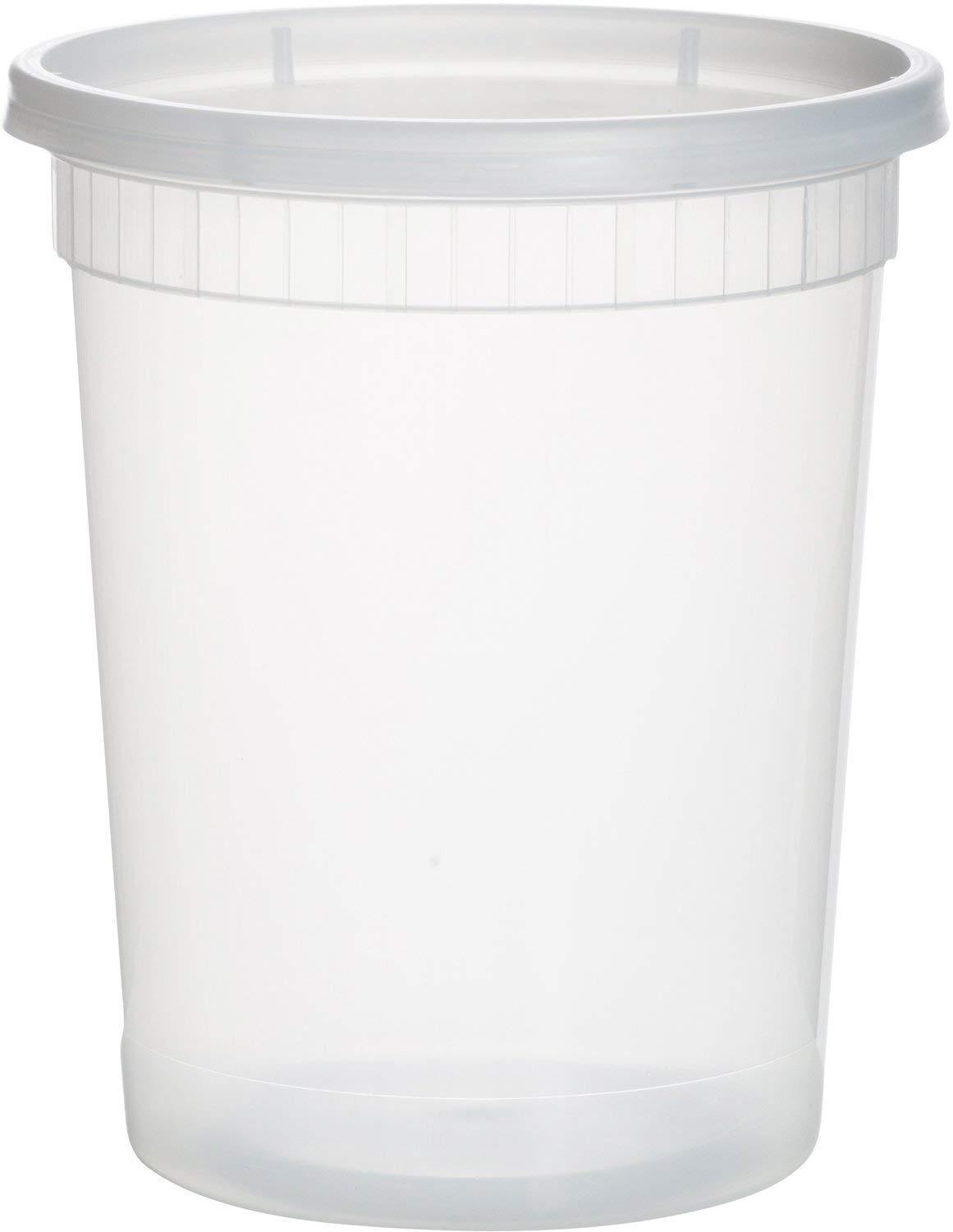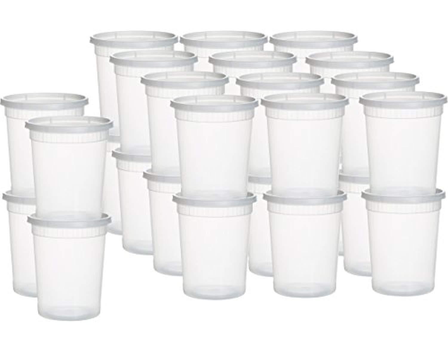 Paksh Novelty Plastic Containers for Lunch / Large Food Container with Lid, Leak Proof, Microwavable, Freezer & Dishwasher Safe, 32 Ounce, 24 Pack