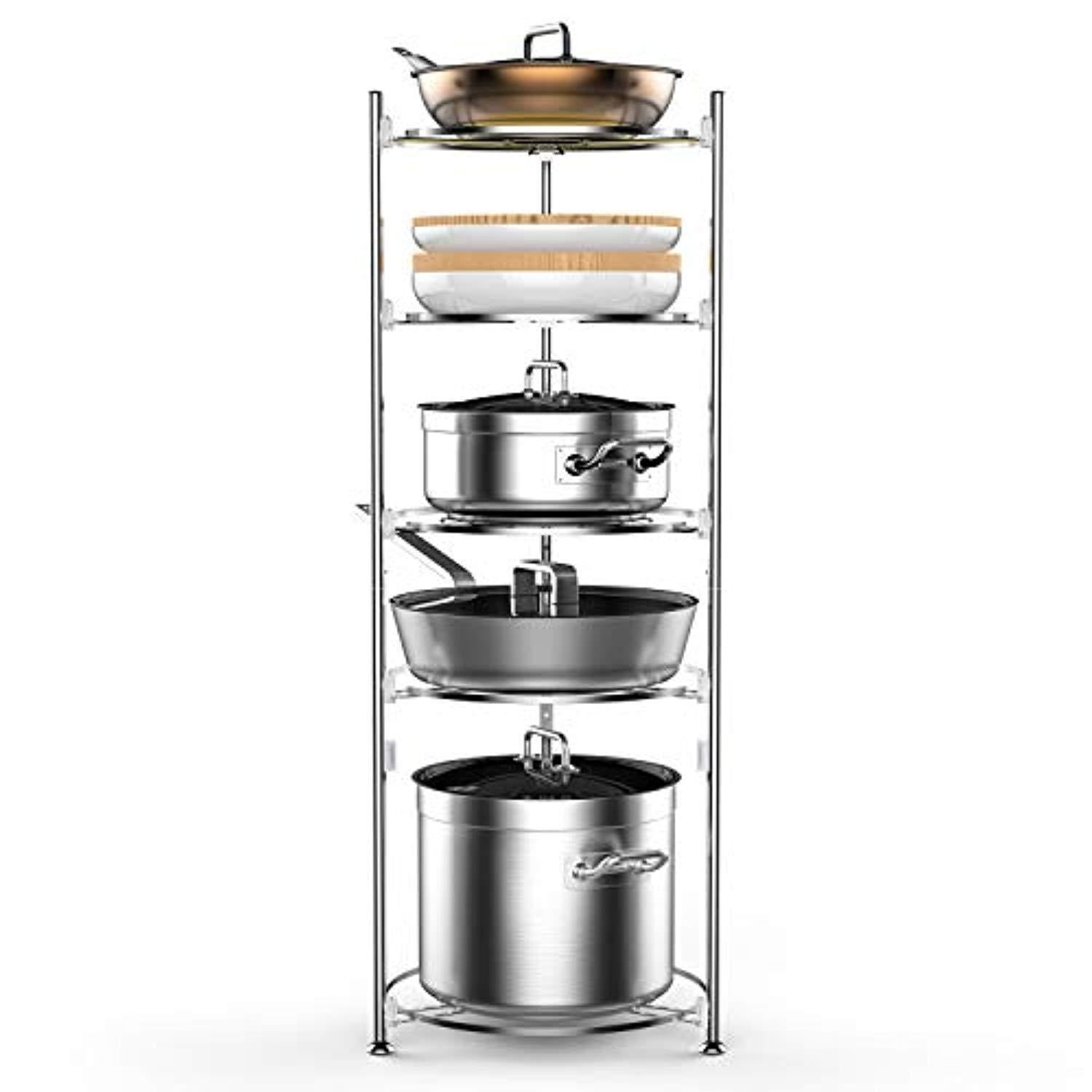 Pot and Pan Organizer, Lifinity 5-Tier Pot Rack Heavy Duty Cookware Stand for Kitchen Organization and Storage Free-Standing Kitchen Organizer for Pot and Pan, Stainless Steel (38.6''Tall)