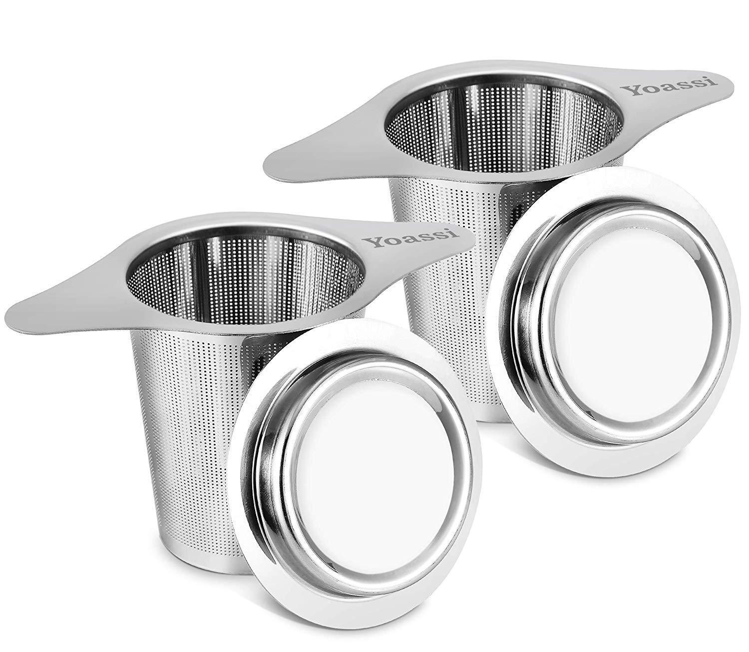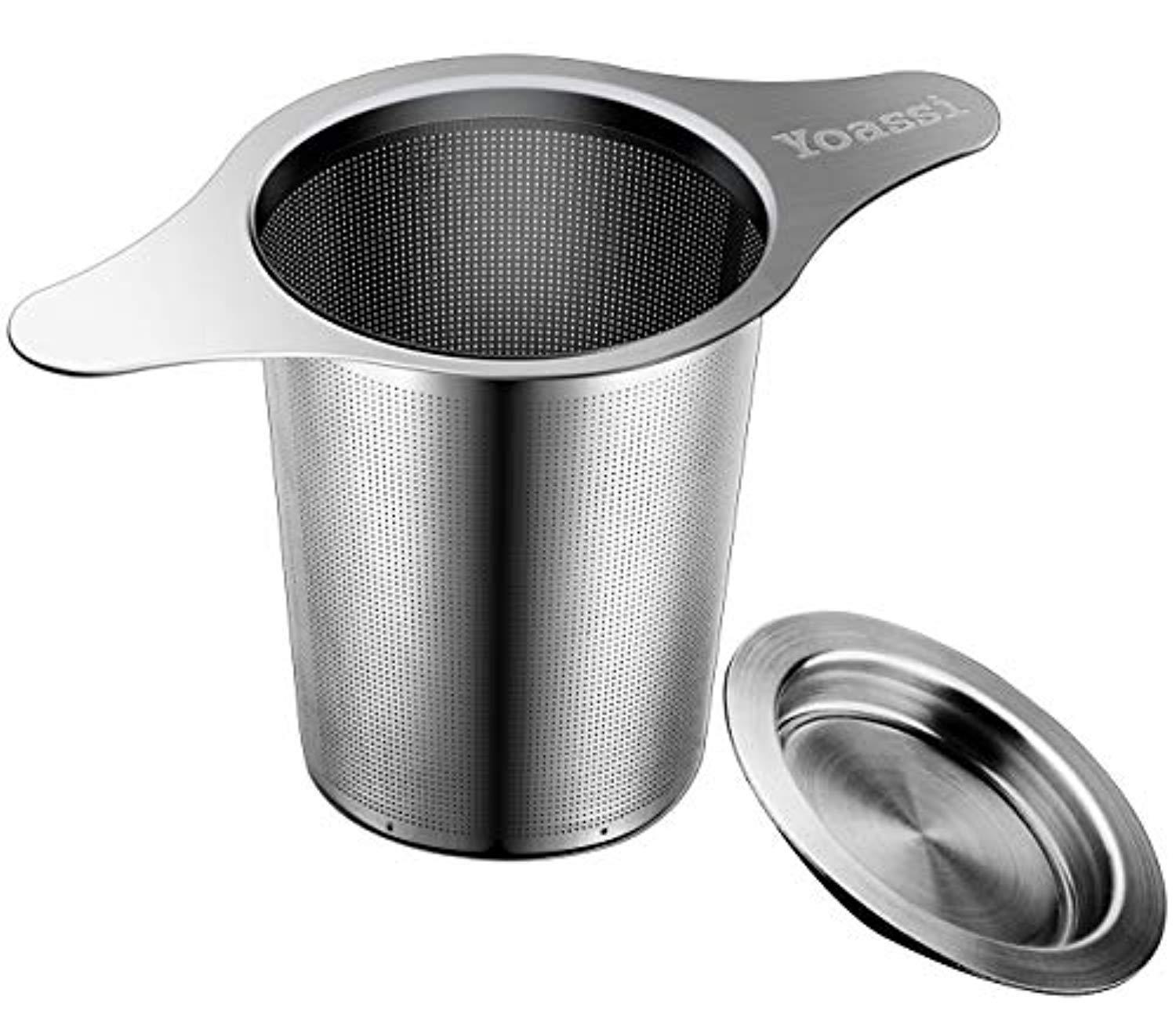 Yoassi Extra Fine FDA Approved 18/8 Stainless Steel Tea Infuser Mesh Strainer with Large Capacity & Perfect Size Double Handles for Hanging on Teapots