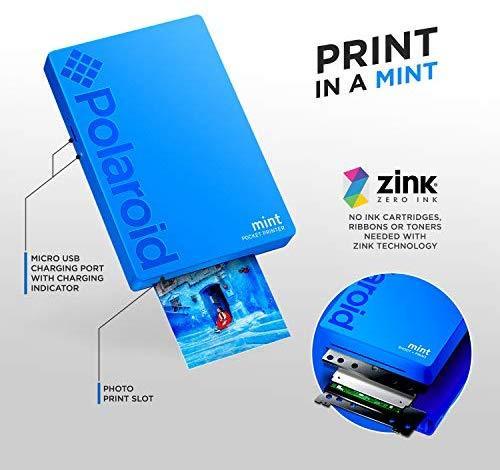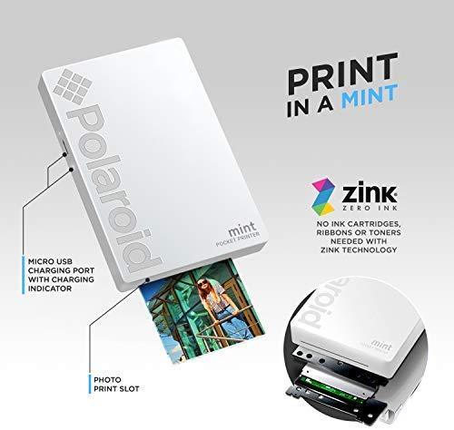 Polaroid Mint Pocket Printer W/ Zink Zero Ink Technology & Built-In Bluetooth for Android & iOS Devices - Black