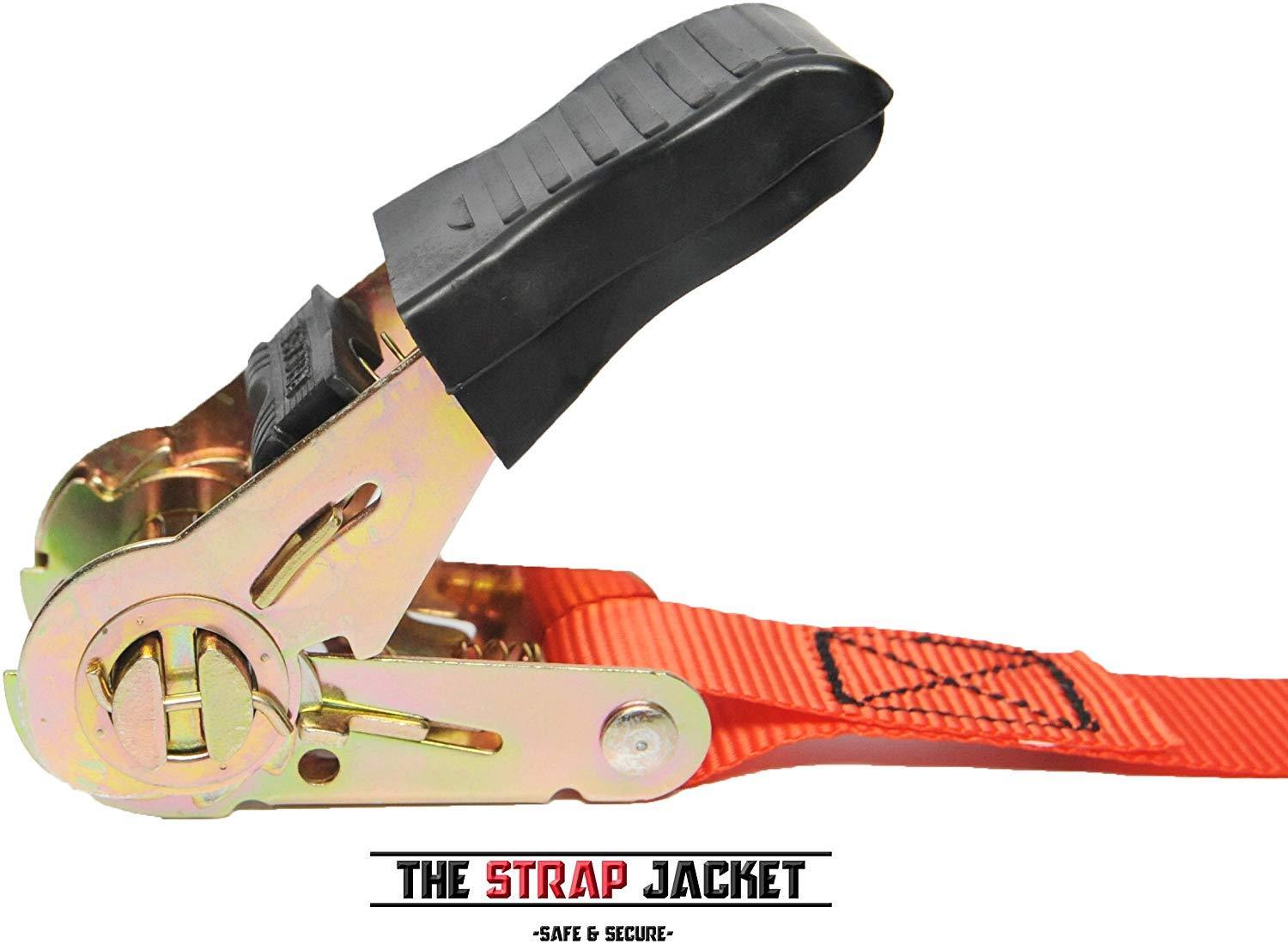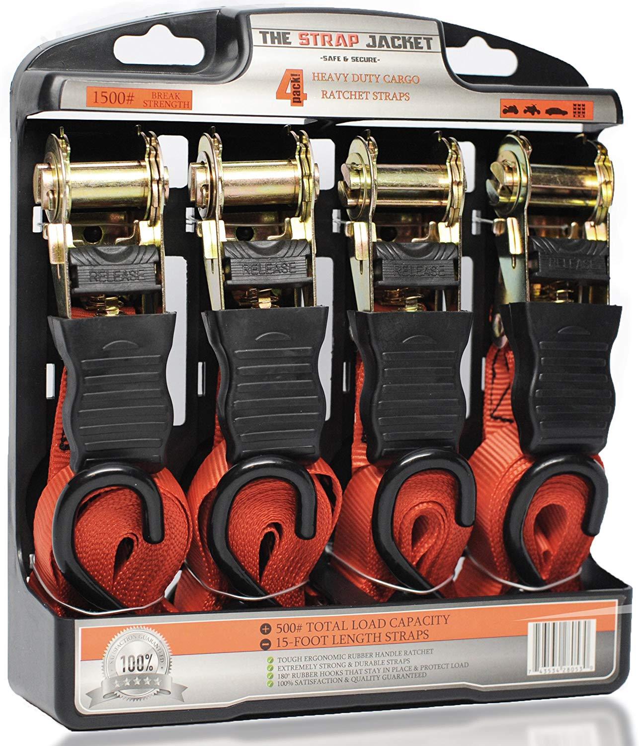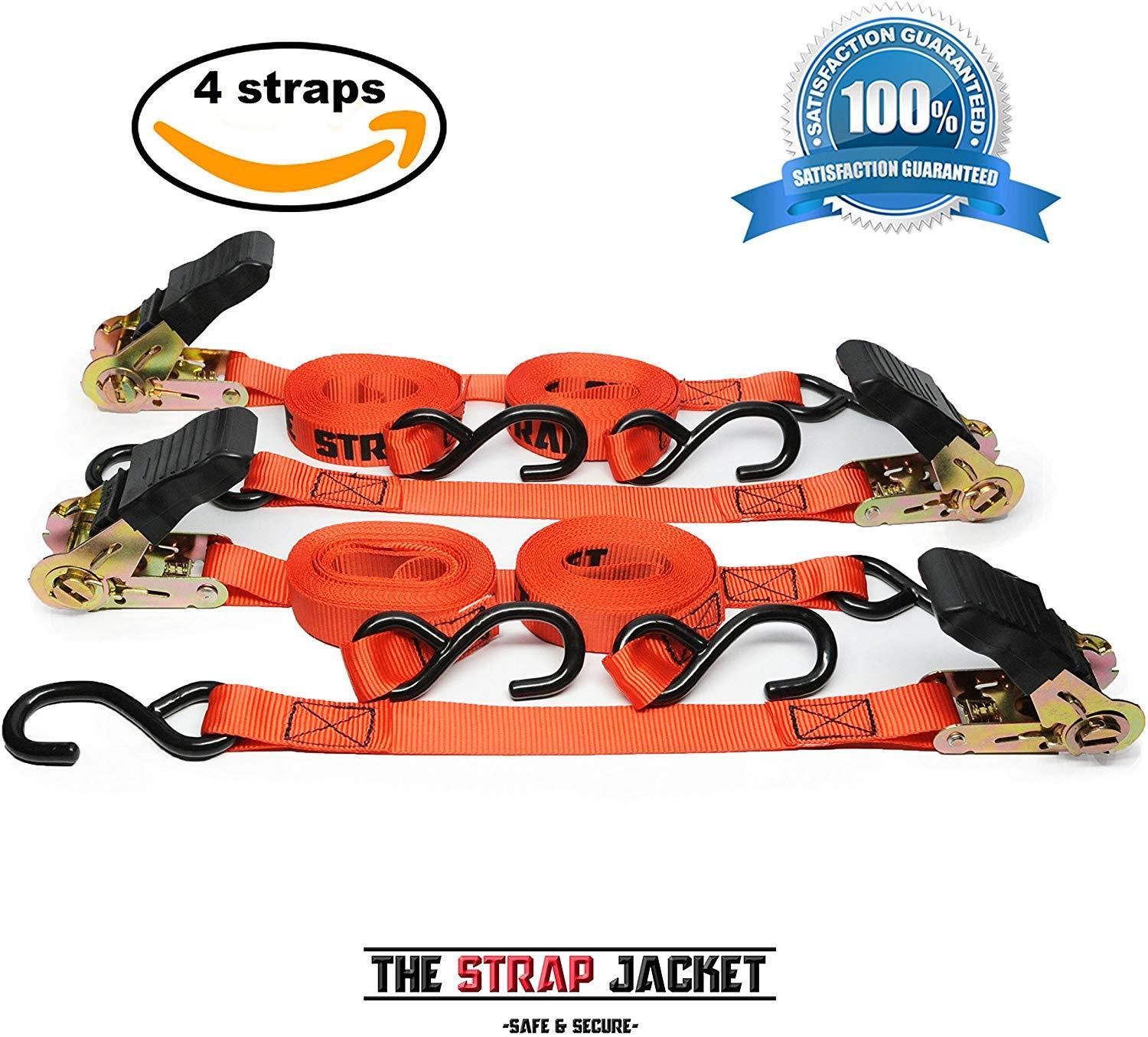 Ratchet Tie Down Straps | 4 pk Heavy-Duty Professional Strength | Built Stronger to Work Harder | Rubber Handle & 180° Hooks | Cargo Straps for Moving Motorcycle, Kayak, Truck, Trailer and Boat