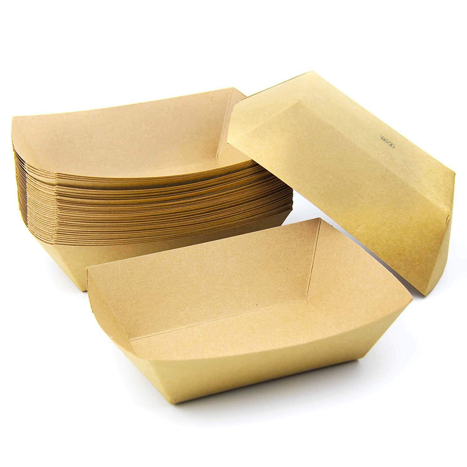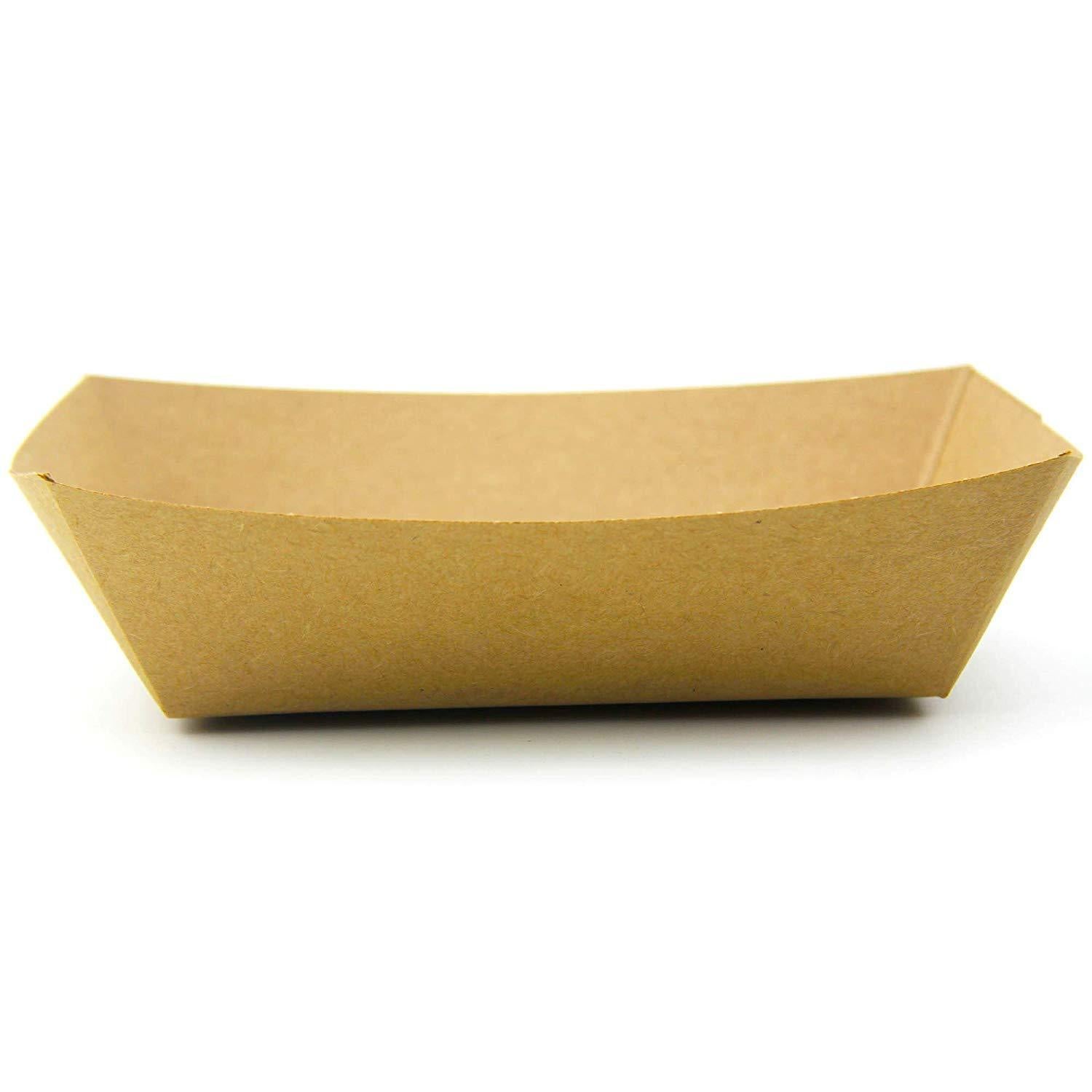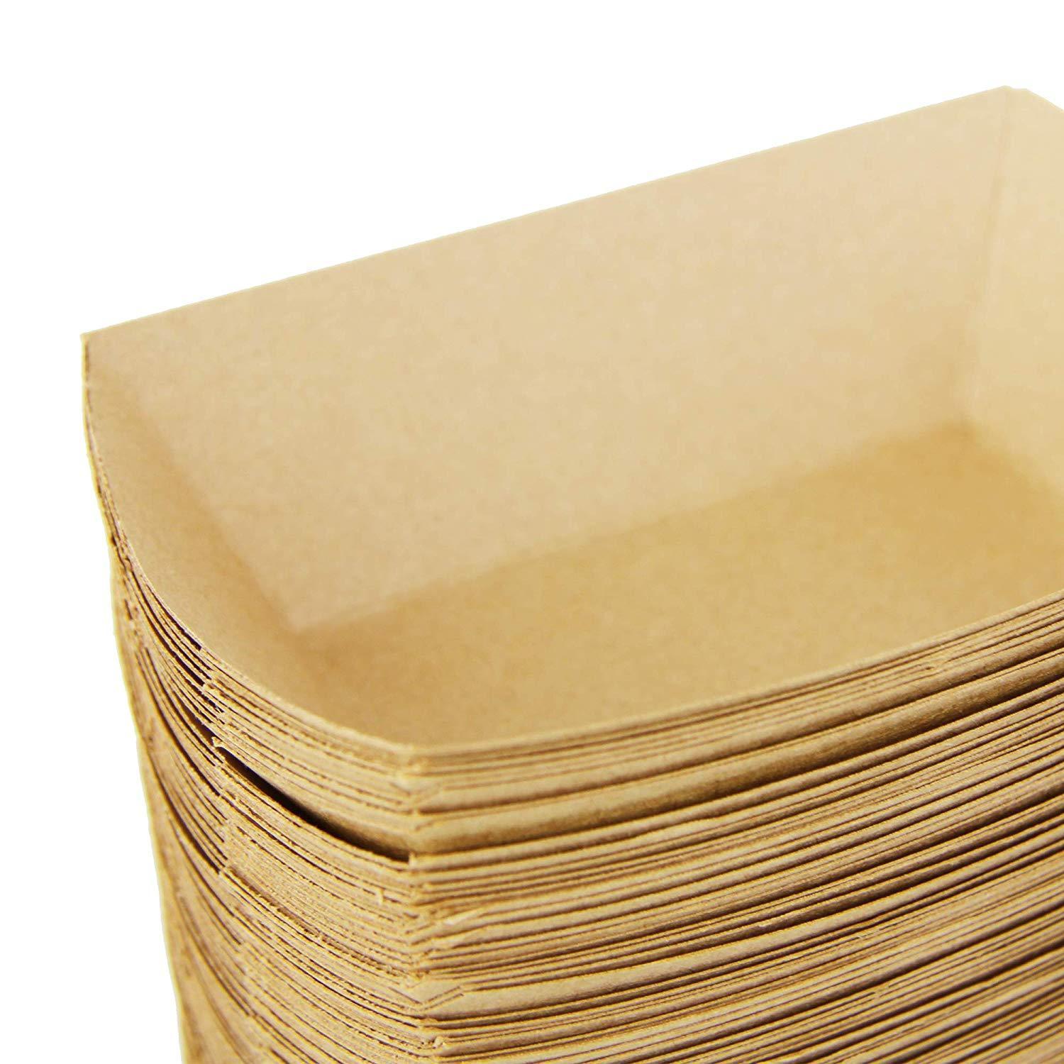 [250 Pack] 2 lb Heavy Duty Disposable Kraft Brown Paper Food Trays Grease Resistant Fast Food Paperboard Boat Basket for Parties Fairs Picnics Carnivals, Holds Tacos Nachos Fries Hot Corn Dogs