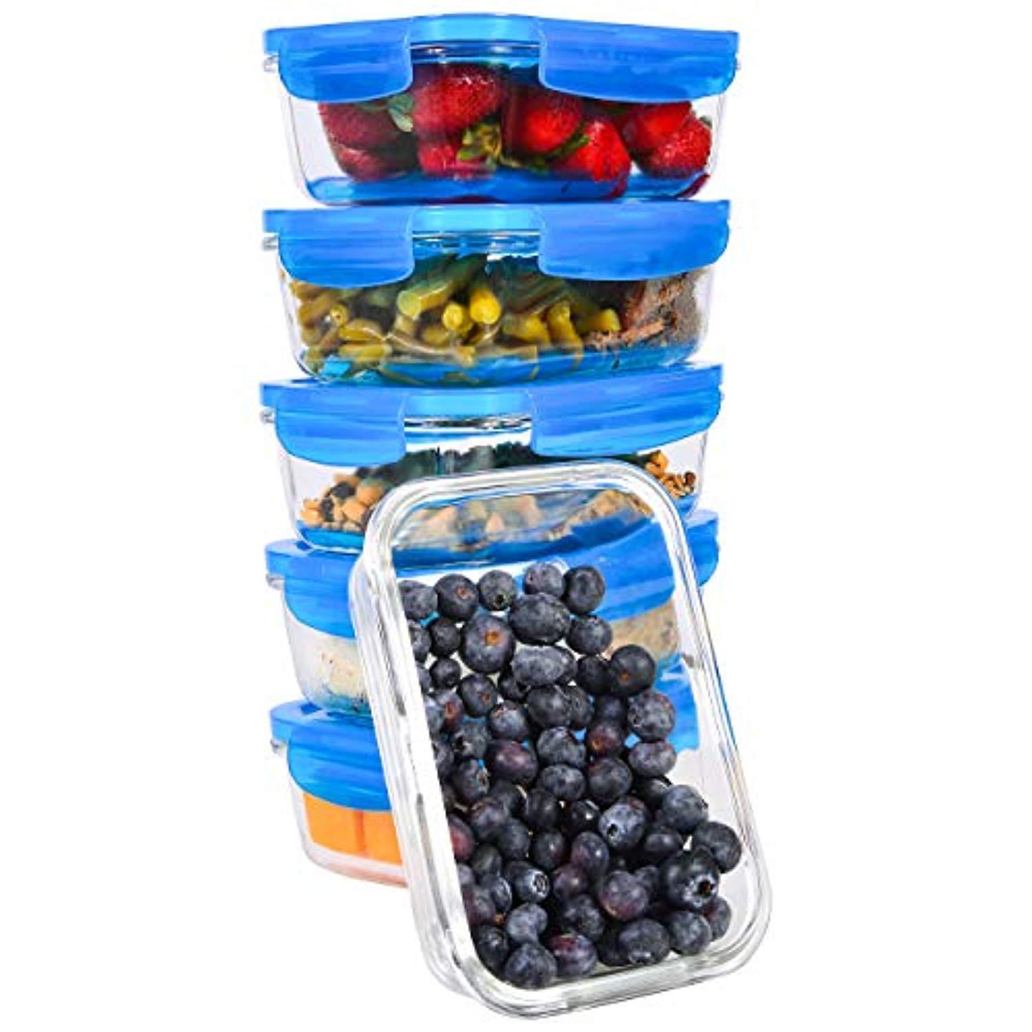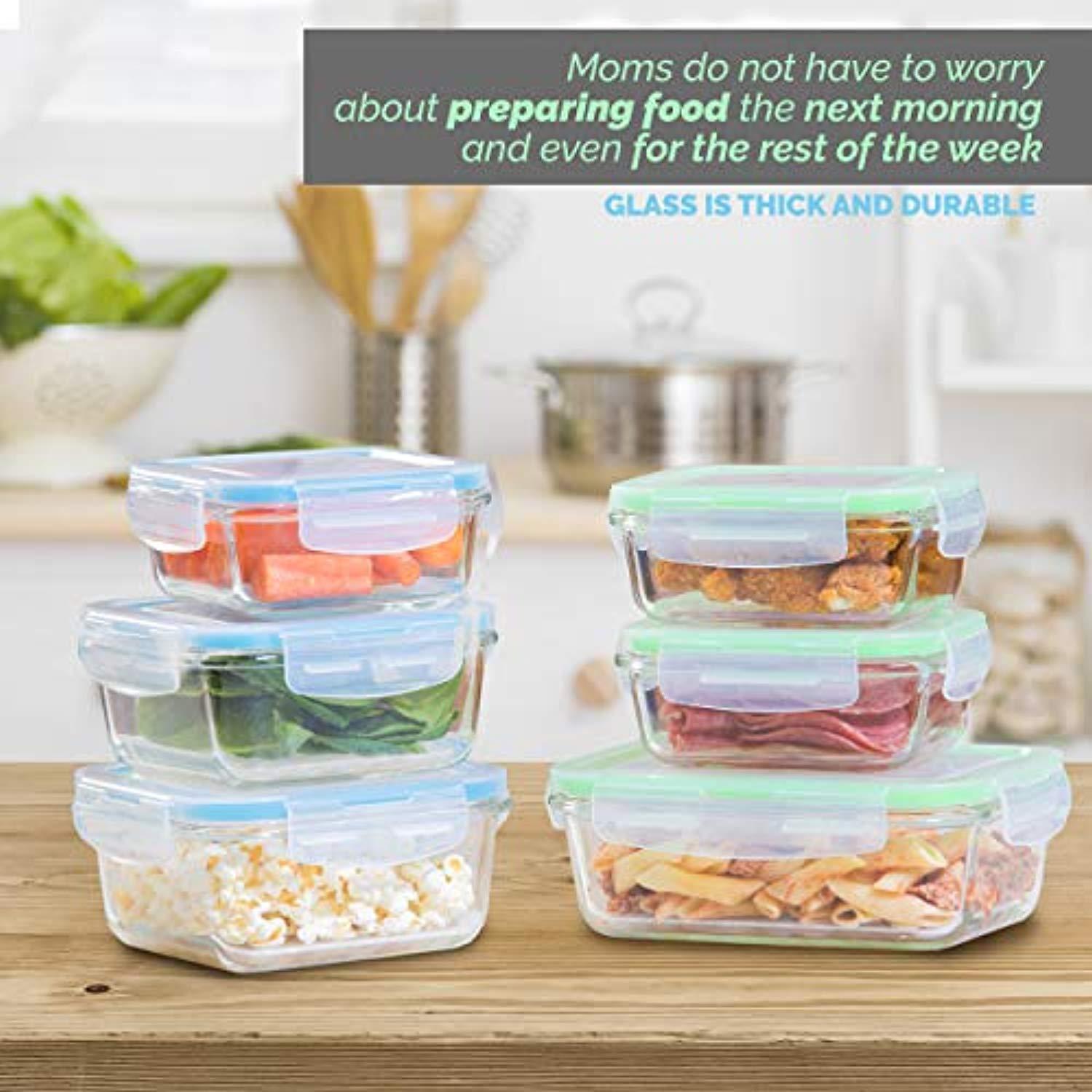 [6-Pack, 28oz] Glass Meal Prep Containers - Glass Food Storage Containers - Great for Lunch Portion Control and Food Prep - Glass Storage Containers with BPA-Free Locking Lids - Elacra