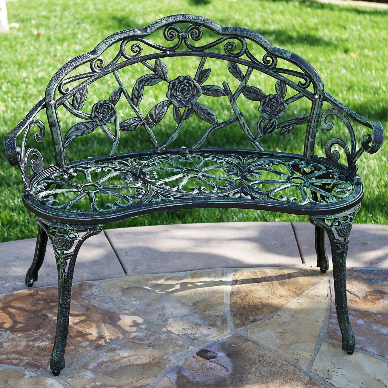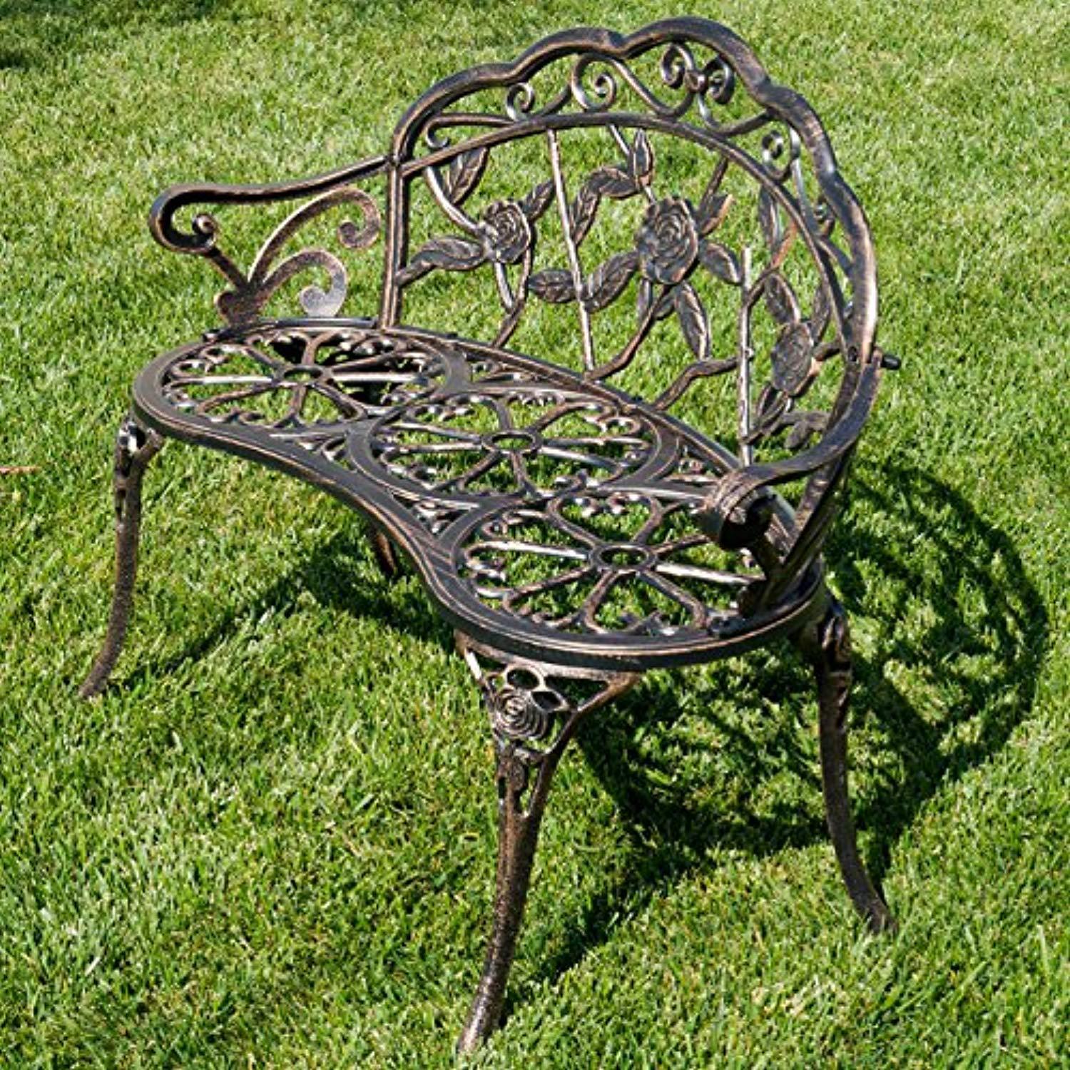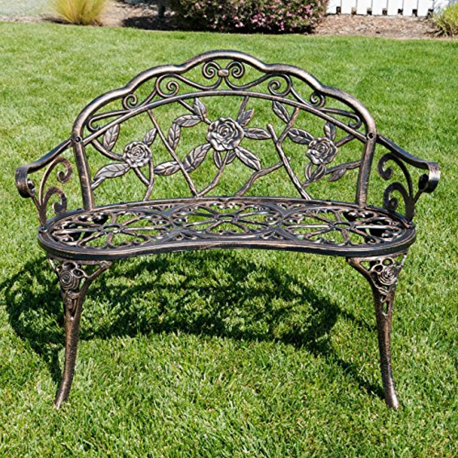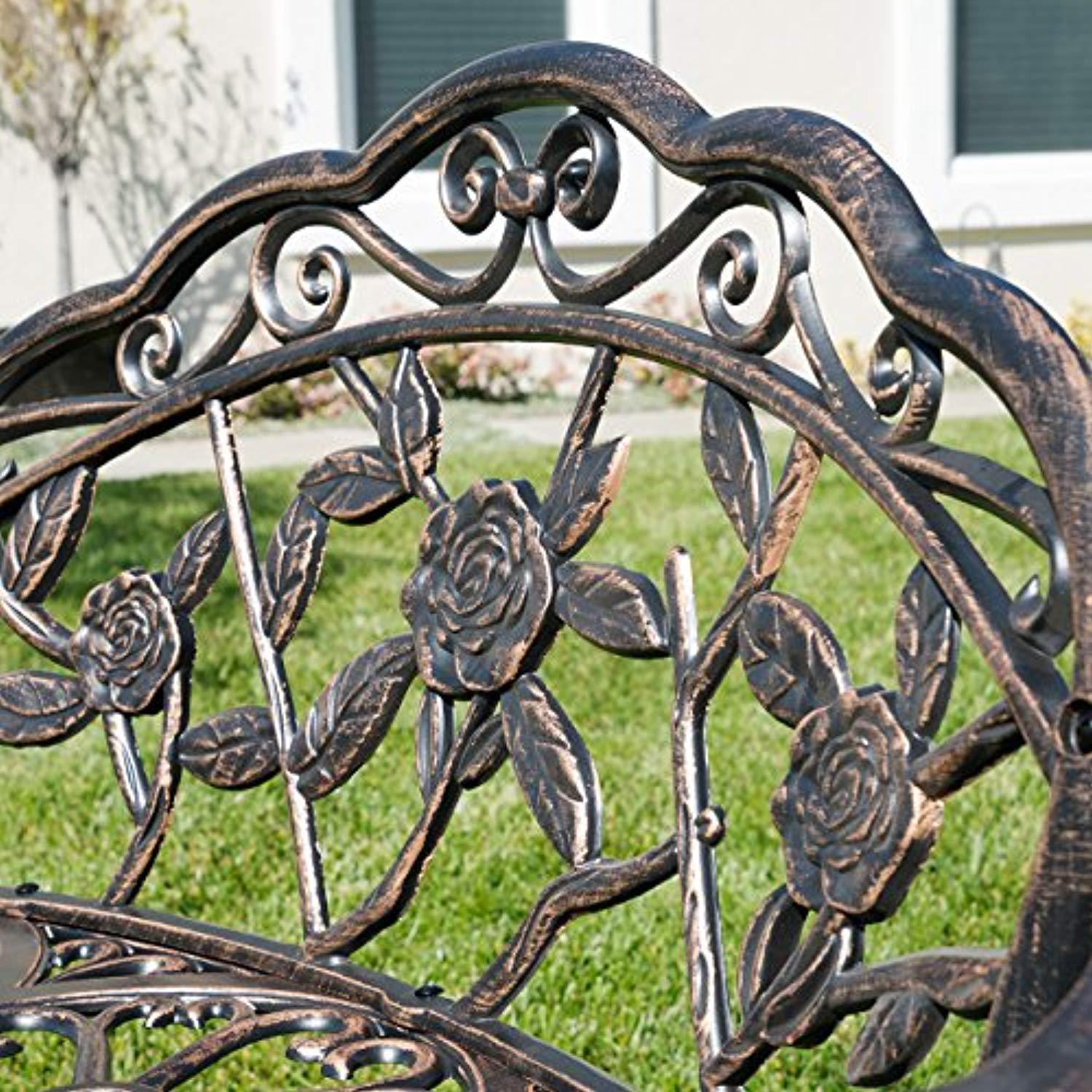 Belleze Antique Designed Rose Style Outdoor Patio Park Garden Bench Bronze Love Seat Cast Iron Backyard Porch Home Pool