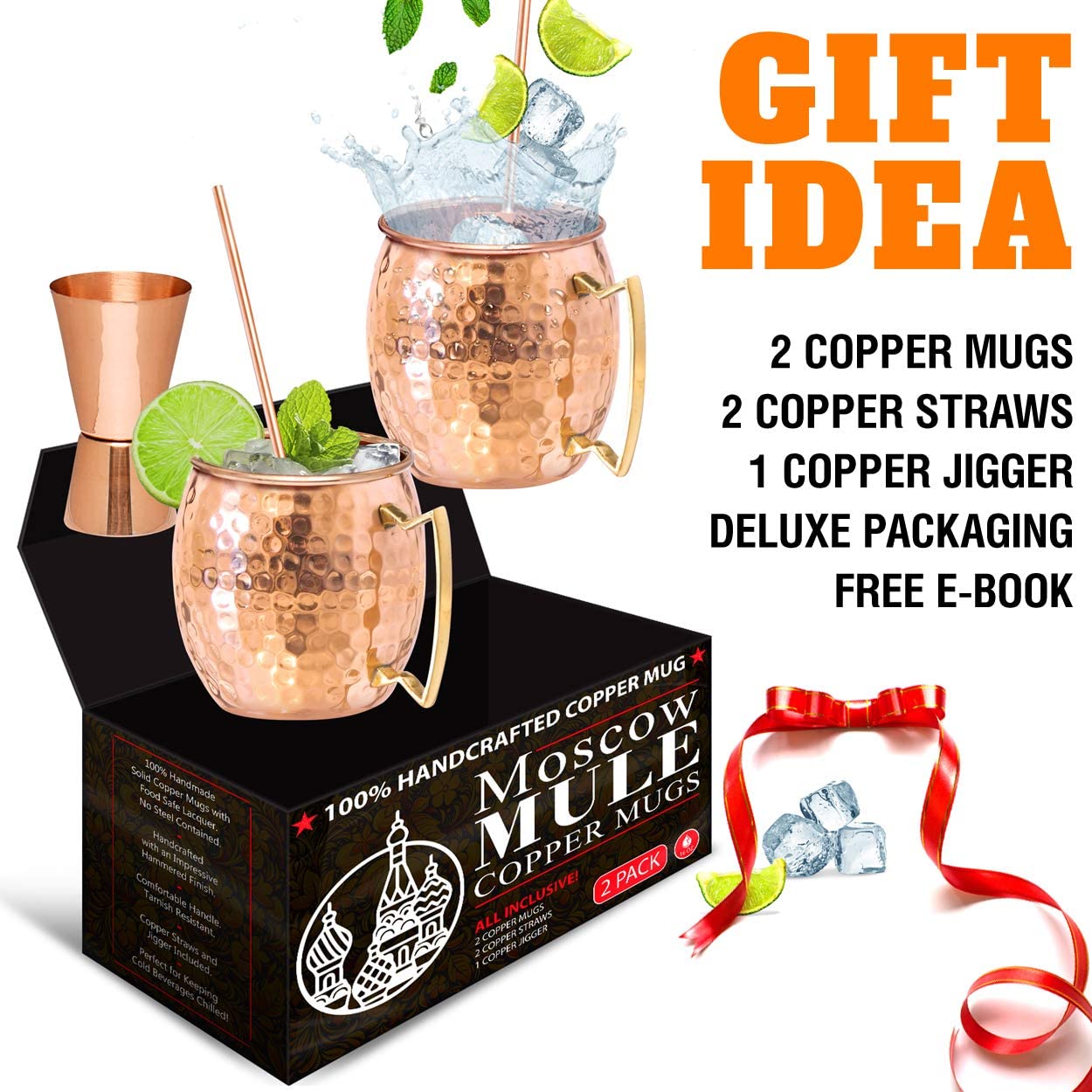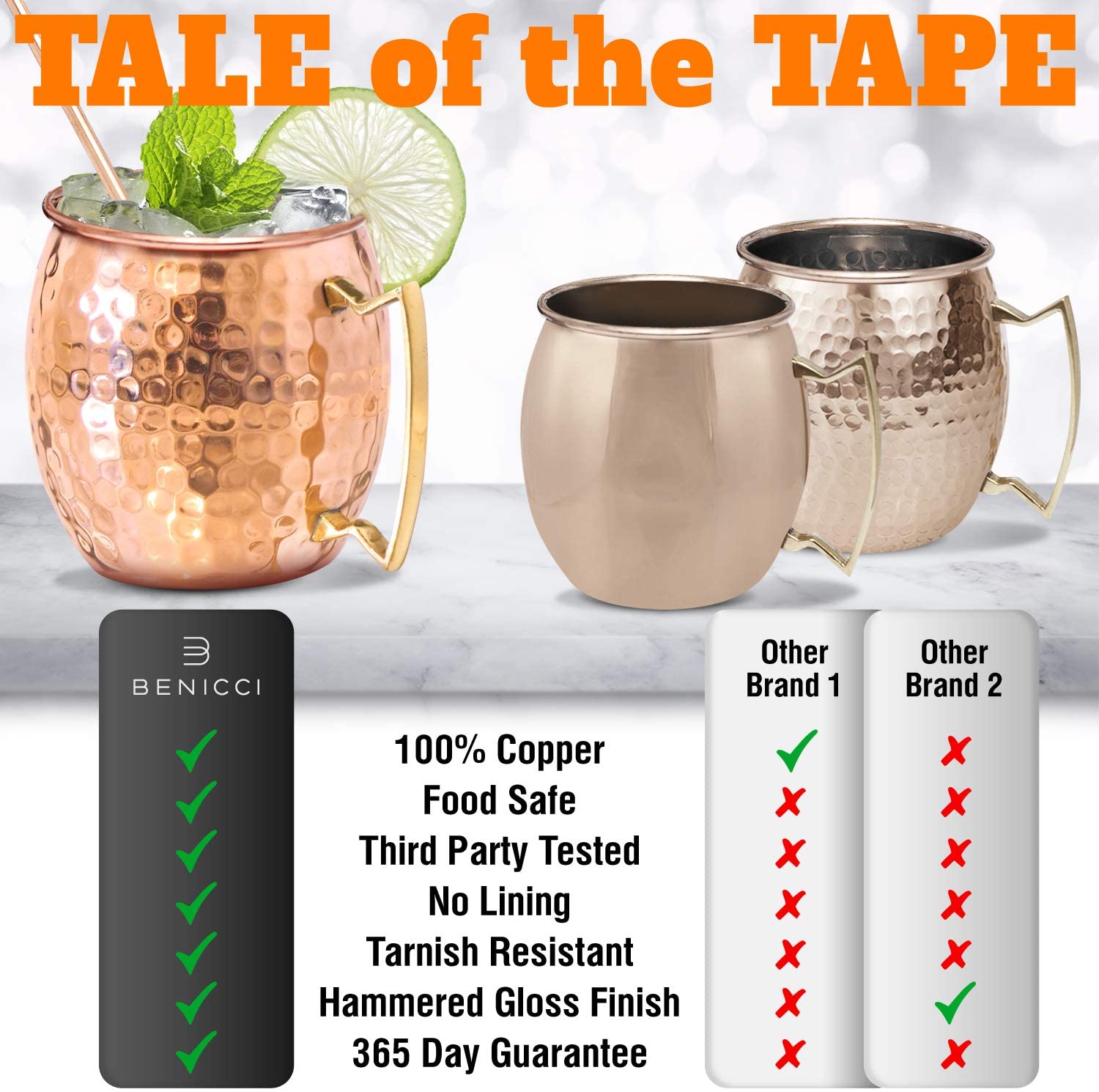 Benicci Moscow Mule Copper Mugs - Set of 2-100% HANDCRAFTED - Food Safe Pure Solid Copper Mugs - 16 oz Gift Set