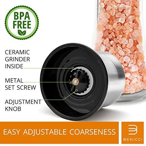 DURABLE & THICK GLASS SHAKERS: Designed to look beautiful and last forever with sturdy glass that handles daily use with ease. Never run out of salt or pepper - always know how much is in your shakers.