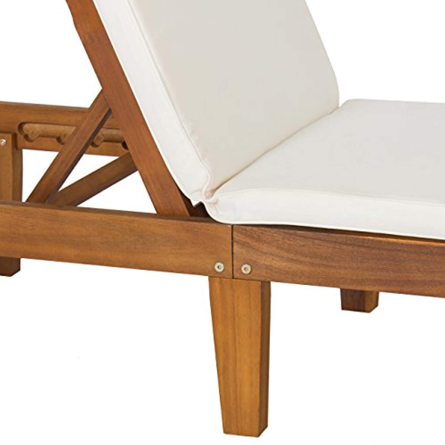 Chaise lounge set is certain to add a touch of old-fashioned appeal to your backyard setting Allows you and a friend or family member to lay out and enjoy each other’s company by the lawn or pool for hours Includes 2 chaise lounge chairs constructed with Acacia wood, with weather-resistant nylon cushions to promote durability Chairs can adjust to multiple resting positions, allowing you sit up for an interesting read or recline for a relaxing outdoor slumber