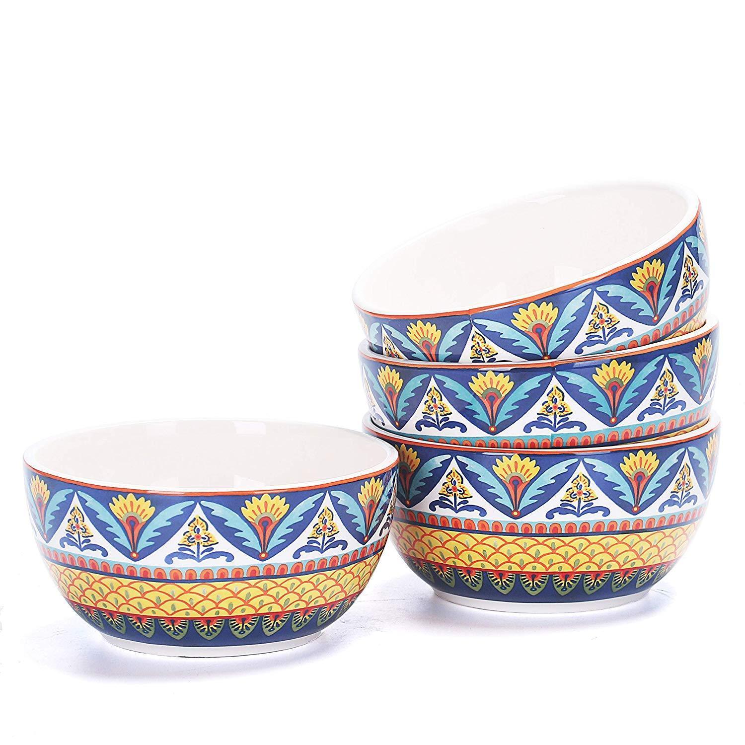 Bico Havana 26oz Ceramic Cereal Bowls Set of 4, for Pasta, Salad, Cereal, Soup & Microwave & Dishwasher Safe, House Warming Birthday Anniversary Gift