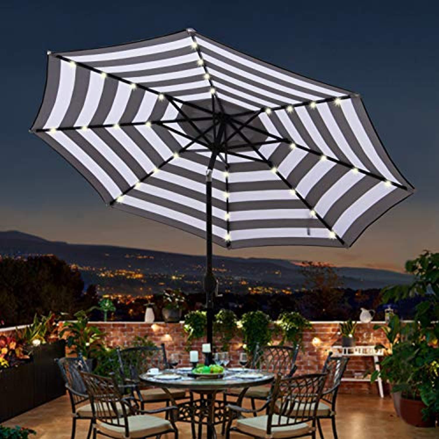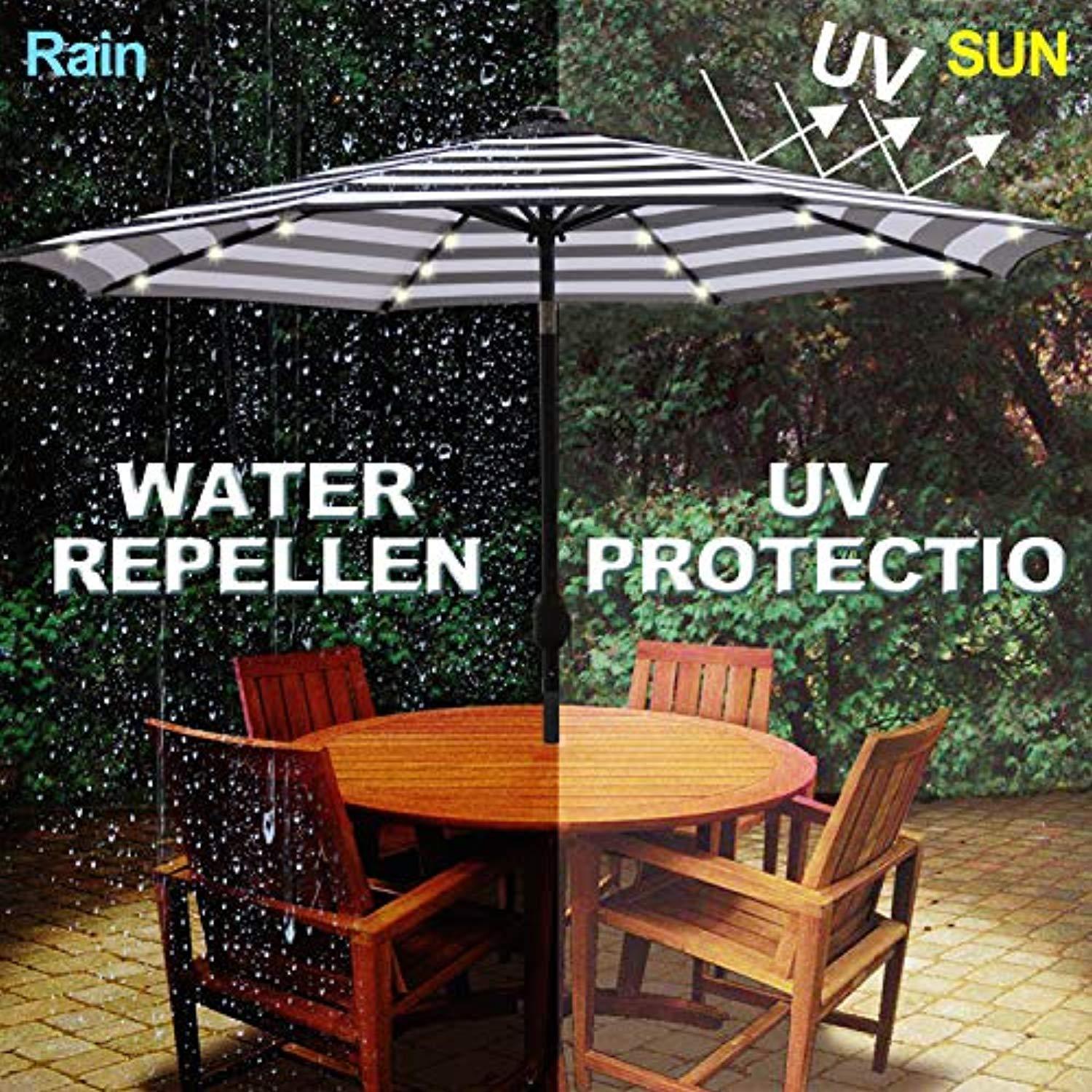 ☂☂【Entertain day and nights】olar powered LED lights brighten up an evening gathering, while the umbrella keeps you shaded as you enjoy daytime drinks with your friends. NOTE: When used as free standing umbrella, it needs over 26.5lb (12KG) patio umbrella base. Umbrella base not included in the package.