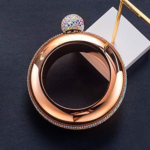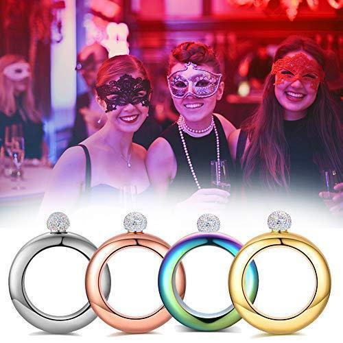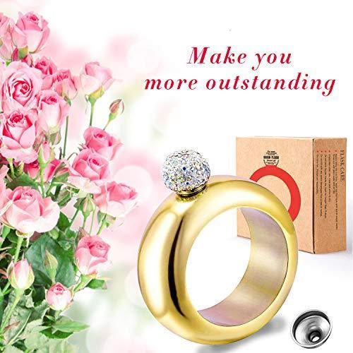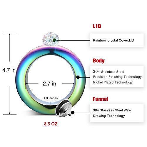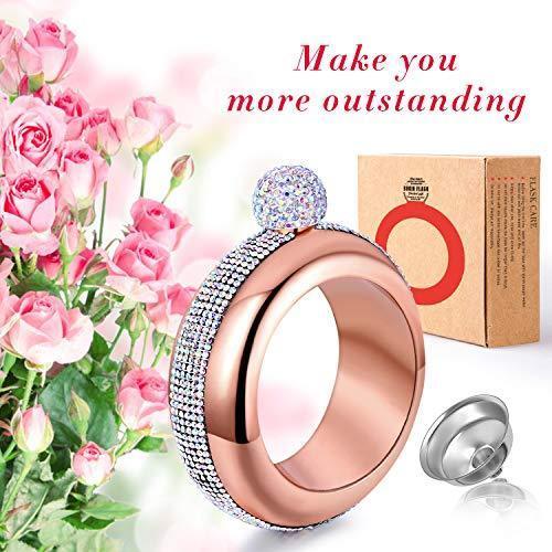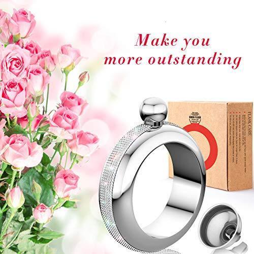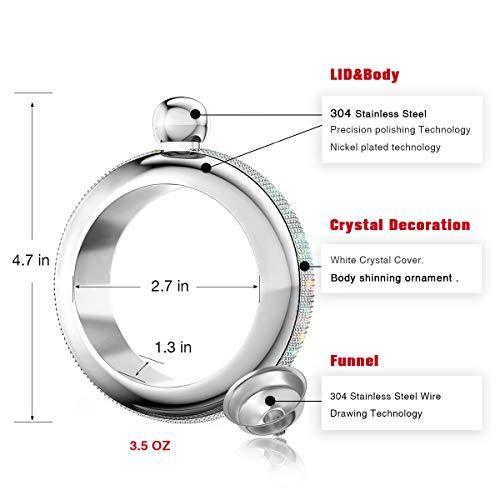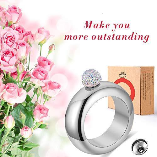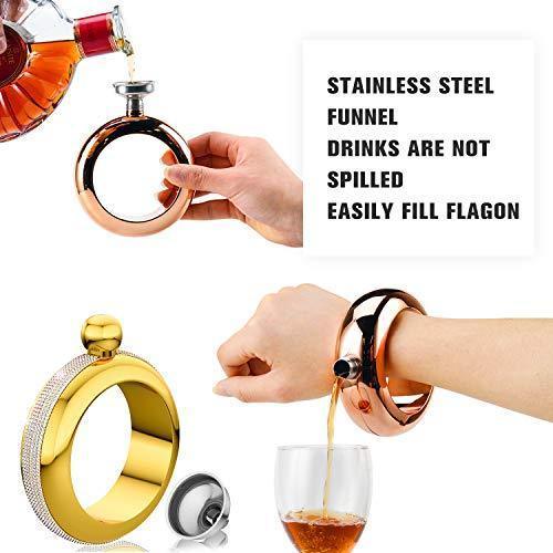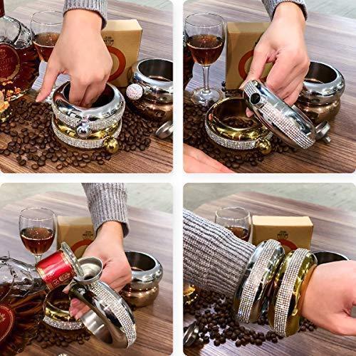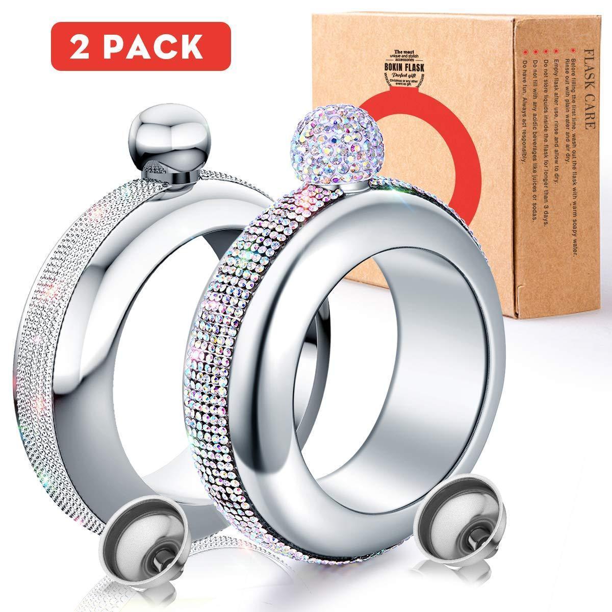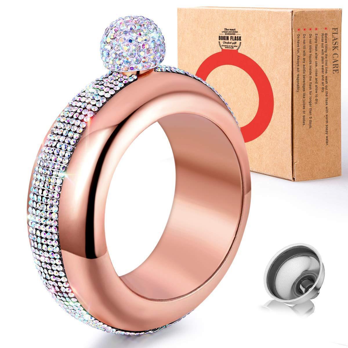 BOKIN Bracelet Bangle Flask 304 Stainless Steel Wine/Alcohol Wrist Flasket with Handmade Rhinestone Lid, Funnel in Gift Box For Women Girls Dance Birthday Party Club Bar 3.5oz Silver