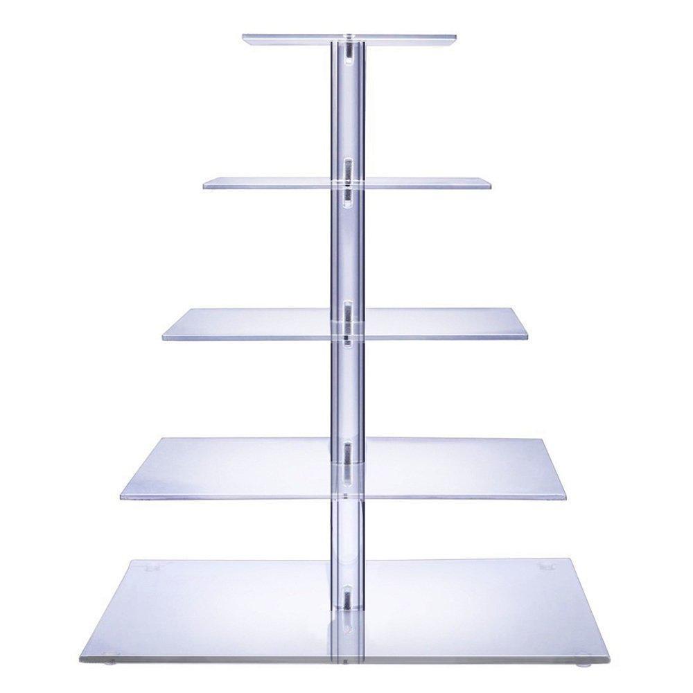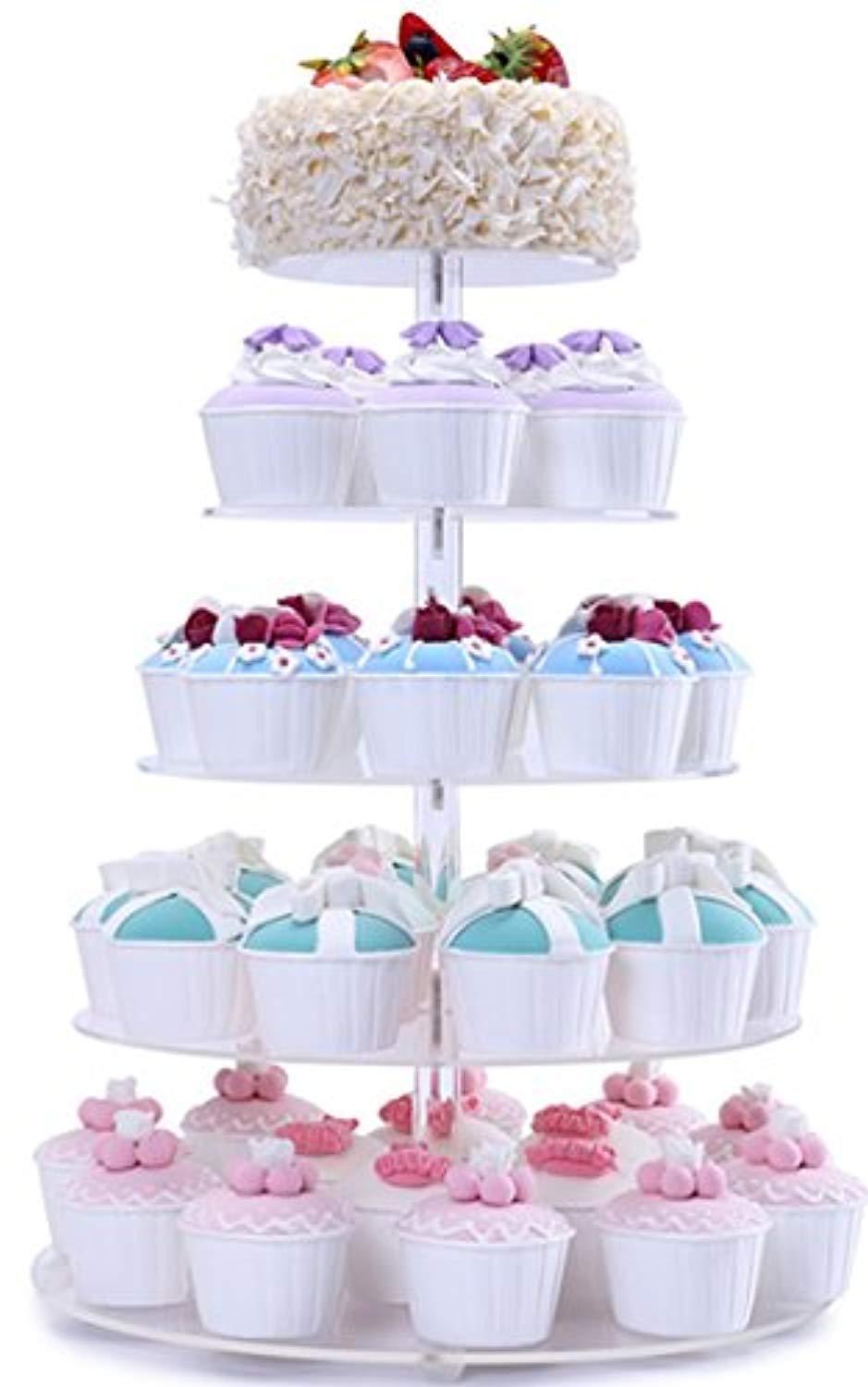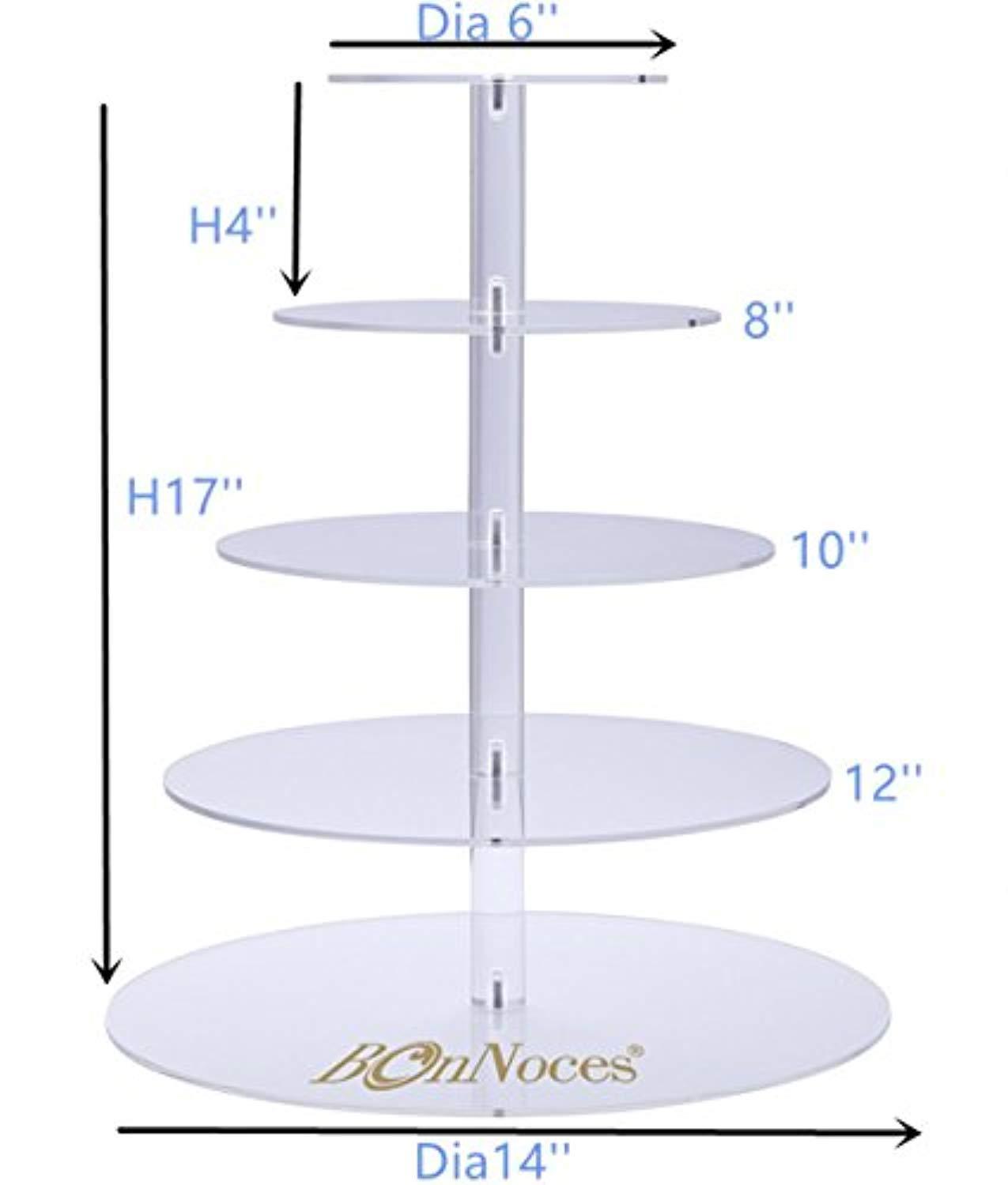 BonNoces 5 Tiers Round Acrylic Pastry Wedding Cupcake Stands Tower Tree-Cupcake Carrier-Clear Tiered Cake Stand Tall Jumbo-Round Dessert Stands-Cupcake Display Stand