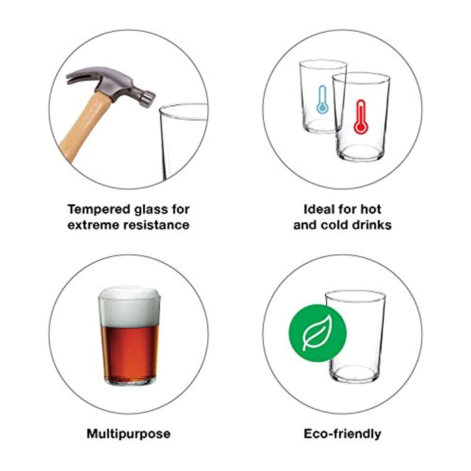 INCREDIBLY DURABLE MATERIAL: Bormioli Rocco’s 17oz glasses are made of premium quality tempered glass. Thanks to this heavy-duty material, our modern cold drink tumblers are resistant to thermal shock, breakage, chipping and dishwasher wear.