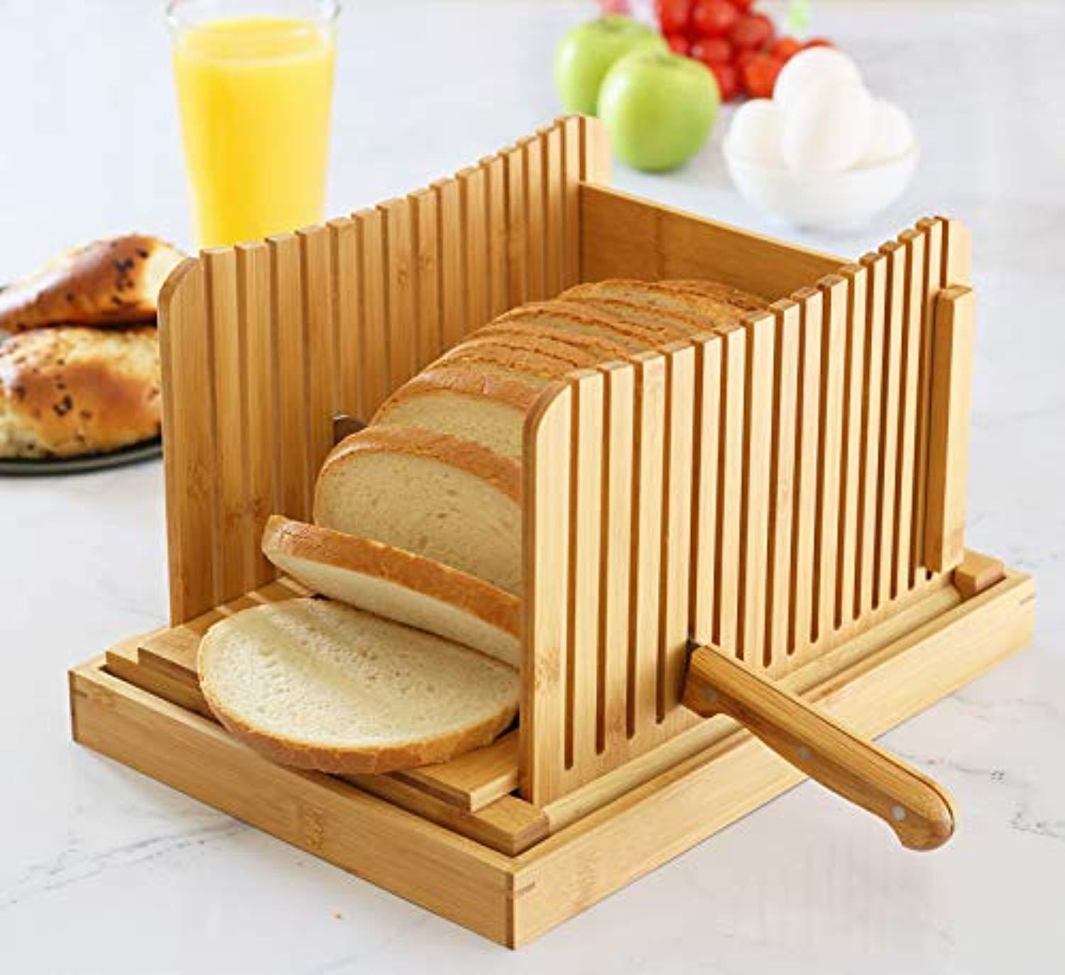 HERE’S HOW YOU CAN SLICE BREAD LIKE NEVER BEFORE with the Hartons premium bread slicer, which is designed to offer you maximum convenience and zero hassle. Our adjustable bread slicer will allow you to easily slice your favorite bread and avoid messy accidents thanks to its ergonomic and safe design. NO MORE SCRATCHES, NO MORE BACTERIA! Our exclusive bread slicer is made from 100% natural bamboo, which is not only eye-catching and beautiful, but also extremely durable and scratch-resistant. Plus, the natural water-resistant properties of bamboo will prevent bacteria build-up and keep your bread yummy and safe. SUPER-EASY TO USE & ADJUSTABLE DESIGN! What separates our bread slicer from the rest is that it’s extremely easy to operate. All you have to do is set your desired width, place your favorite loaf of bread and start slicing. And just to make your life even easier, we have included a BONUS bread slicing knife in our set! THE MOM-APPROVED BREAD SLICER IS FINALLY HERE! Now you will not make a huge mess every time you want to slice your bread, since the convenient crumb catcher will collect all the crumbs, so you can throw them away. Plus, our bread slicer is super-easy to clean and will dry faster than others, so you can use it again!
