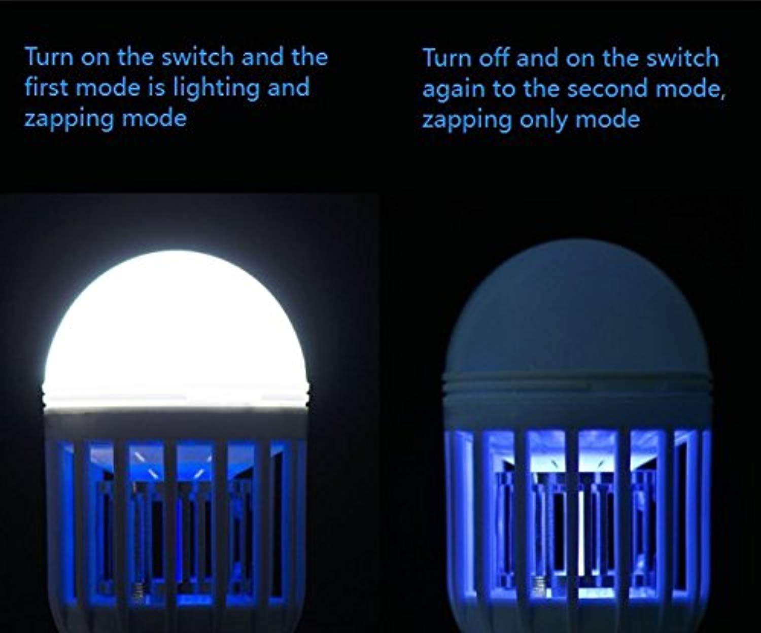 ADVANCED TECHNOLOGY -- 2 modes you can choose through the wall switch control. Use as mosquito zapper only, or a light bulb with zapper. Say Goodbye to painful bites! ELECTROSTATIC CAPTURE -- The mosquitoes are attracted by the light-wave technique, get trapped in 360 degrees and killed by the low voltage curren, effectively preventing being disturbed by mosquitoes. SAFE GUARANTEE -- No harm to your health. No need to spray chemical mosquito repellent and other liquids release. Safe for human health and environment. WIDE APPLICATION -- Apply to E26/E27 lamp base and used for anywhere whether in indoor and outdoor use. It will get better effect on a closed space. BUY IT WITH CONFIDENCE -- The 15W E26/E27 bug zapper bulb provides about 50000 hours working life. We provide 12-Month hassle free warranty, if you are not satisfied with it, please contact with us. We will help you solve it at the very first time.