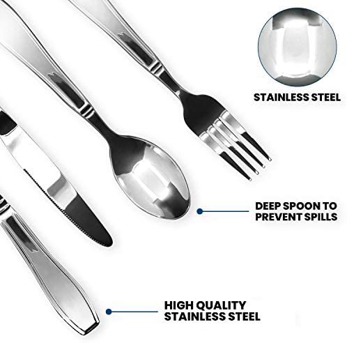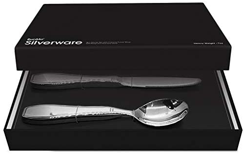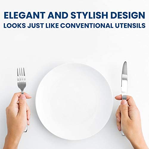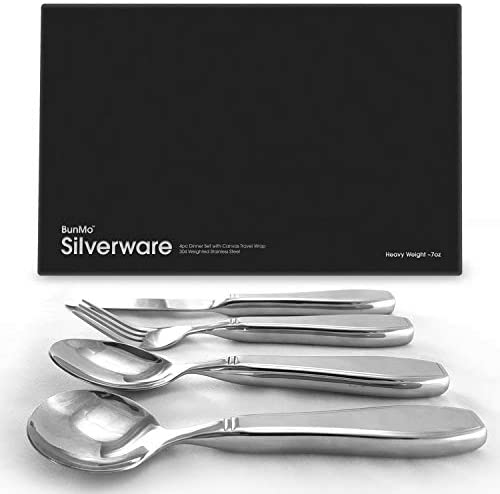 BUNMO Weighted Utensils for Tremors and Parkinsons Patients - Heavy Weight Silverware Set of Knife, Fork, 2 Spoons and Travel Bag - Adaptive Eating Flatware Helps Hand Tremor, Parkinson, Arthritis