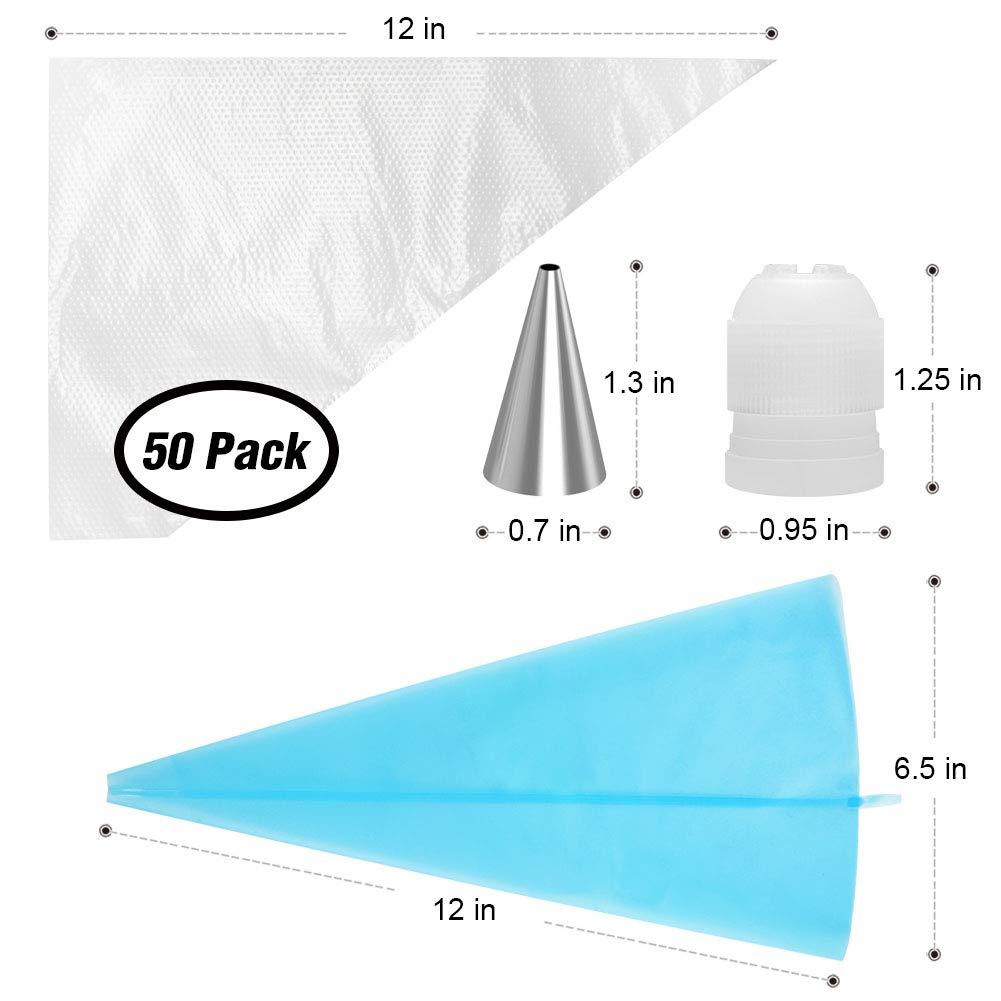 Reusable / Disposable Pastry Bags: 2 pack 12 inches Silicone piping bags which can withstand powerful extrusion and reuse. Disposable bag for no messy cleaning after finished icing, clear bags are ideal for instant icing color identification.