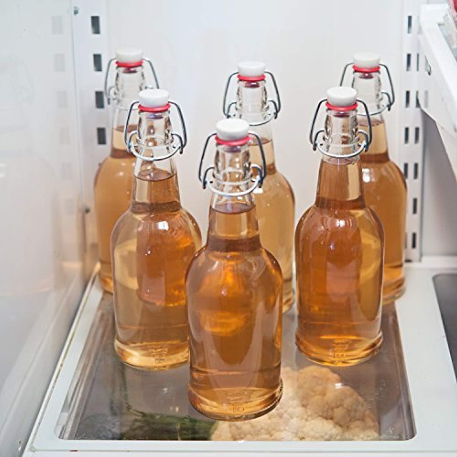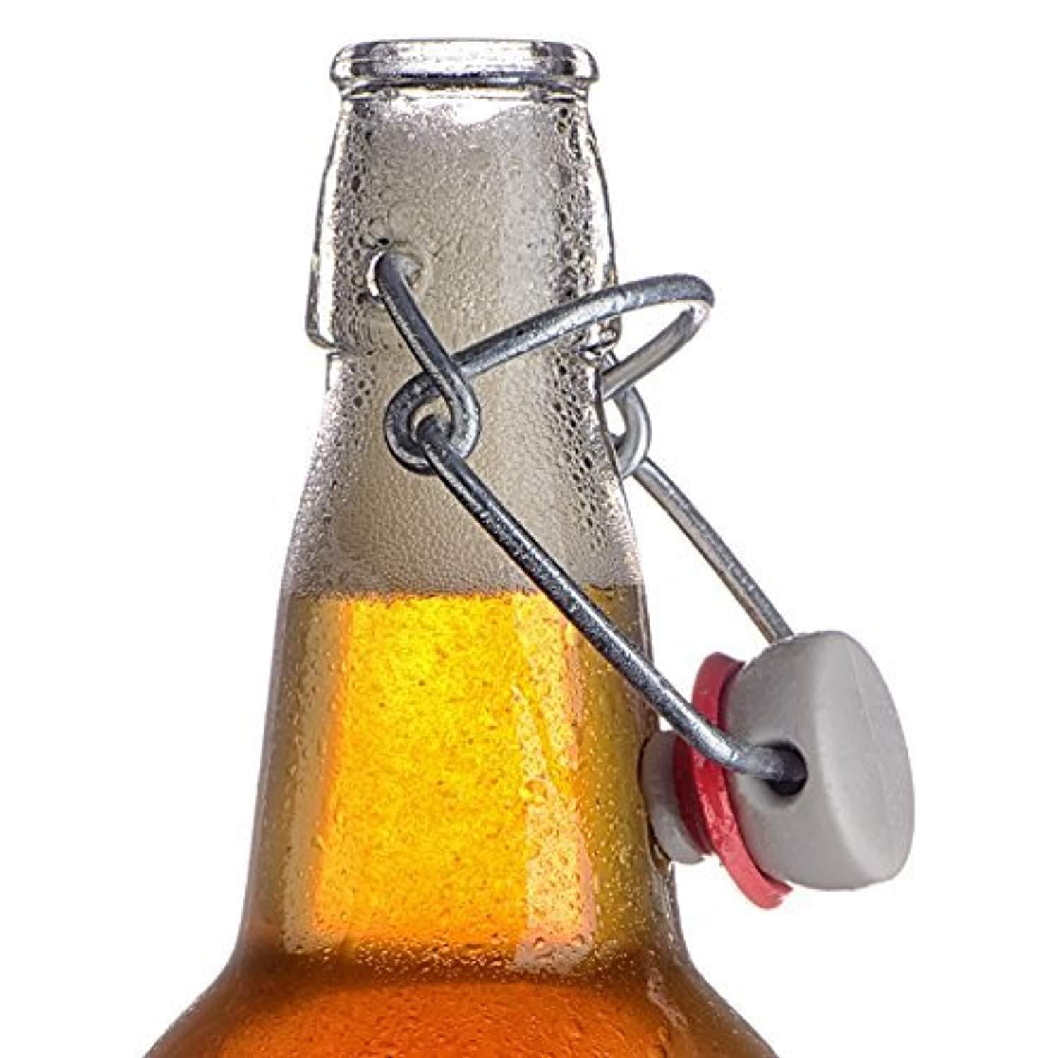 California Home Goods 16 Ounce Grolsch Beer Bottles with EZ Caps, Resealable & Reusable, Clear, Set of 6