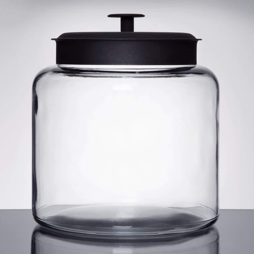 Set contains: (1) 48-ounce glass Montana jar black lid Durable thick glass does not discolor, retain smells, or leak chemicals into foods. While the snug fitting lid helps keep foods fresh longer. Conveniently add storage to use in the kitchen, bathroom, or bedroom to store items or to create beautiful landscapes to decorate the counter space Clear glass allows contents of jar to be easily seen and boasts a wide mouth opening for ease of access and scooping. Makes great gifts perfect for holidays, birthday, and showers.