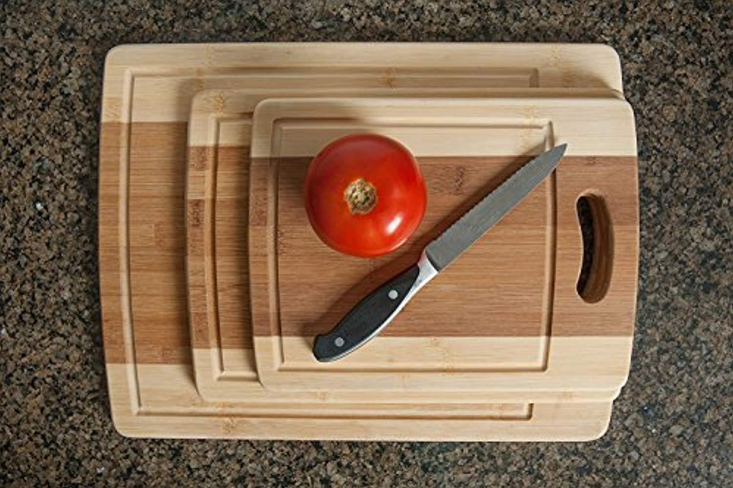 CC Boards: Cutting boards with the durability, features and style you want! Includes three sizes you need most often, with juice wells to keep your counters clean and a stylish design that looks good in any kitchen. Made of strong bamboo that won’t dull your cutlery, these cutting boards can handle most jobs in your kitchen. Our bamboo boards are environmentally friendly and sustainable, unlike other wooden boards. If for any reason this product does not meet your expectation, we will send you a new one for free at our cost. No questions asked. Buy now to take advantage of the limited-time special pricing.