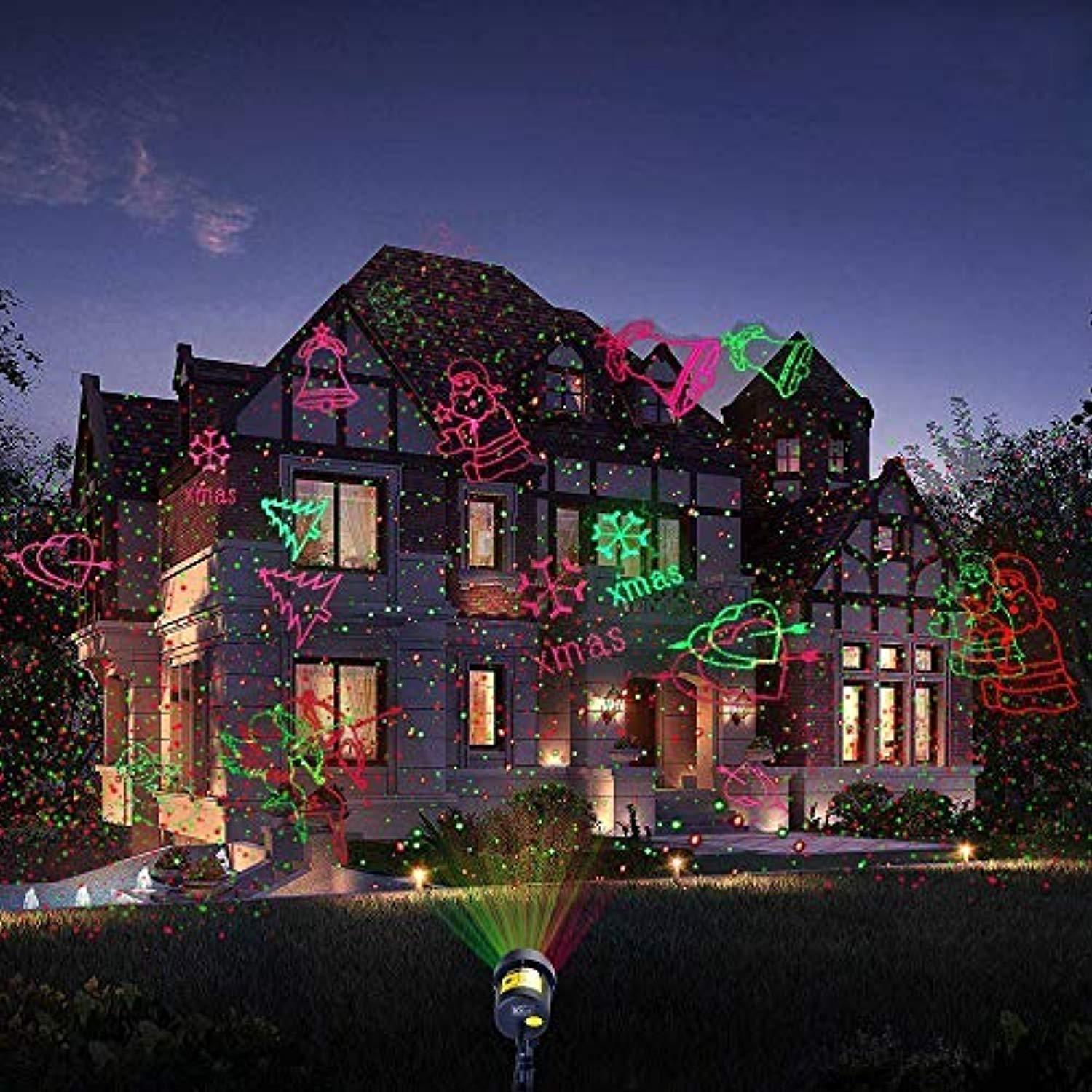 🎅8 Motion Patterns – The Christmas lights has 8 auto-moving decoration patterns for christmas: snowflake, Santa Claus , Christmas tree , snowman, wind chimes, angel,hearts and moving stars. Ideal for interior and exterior walls, landscapes, dance floors and Celebration Projection Light Designs for Christmas 🎄Auto Control - The Christmas lights outdoor projector can turn on/off automatically according to the light intensity, shining 600 square feet max. Great decoration for family birthday party, wedding, camping, Halloween, Christmas trees, house wall, lawn, park 🔔IP65 Waterproof - Made of ABS plastic, this Christmas laser light can work on snowy and rainy days, also in winter -20 degrees centigrade, suit for both indoor and outdoor use., no maintenance required 🎀Safe Christmas Laser Light - CLASS IIIA product, FDA, FCC, RoHS, IP65 waterproof, CE certificated, low power consumption less than 3.94mW power output. Safe and Cost-effective 🎁Convenient to Use - The Christmas landscape light comes with indoor base and outdoor stake, just spike into ground or put it on any platform by the indoor base, adjust the best angle and distance you like, and enjoy the amazing lighting shower with your family