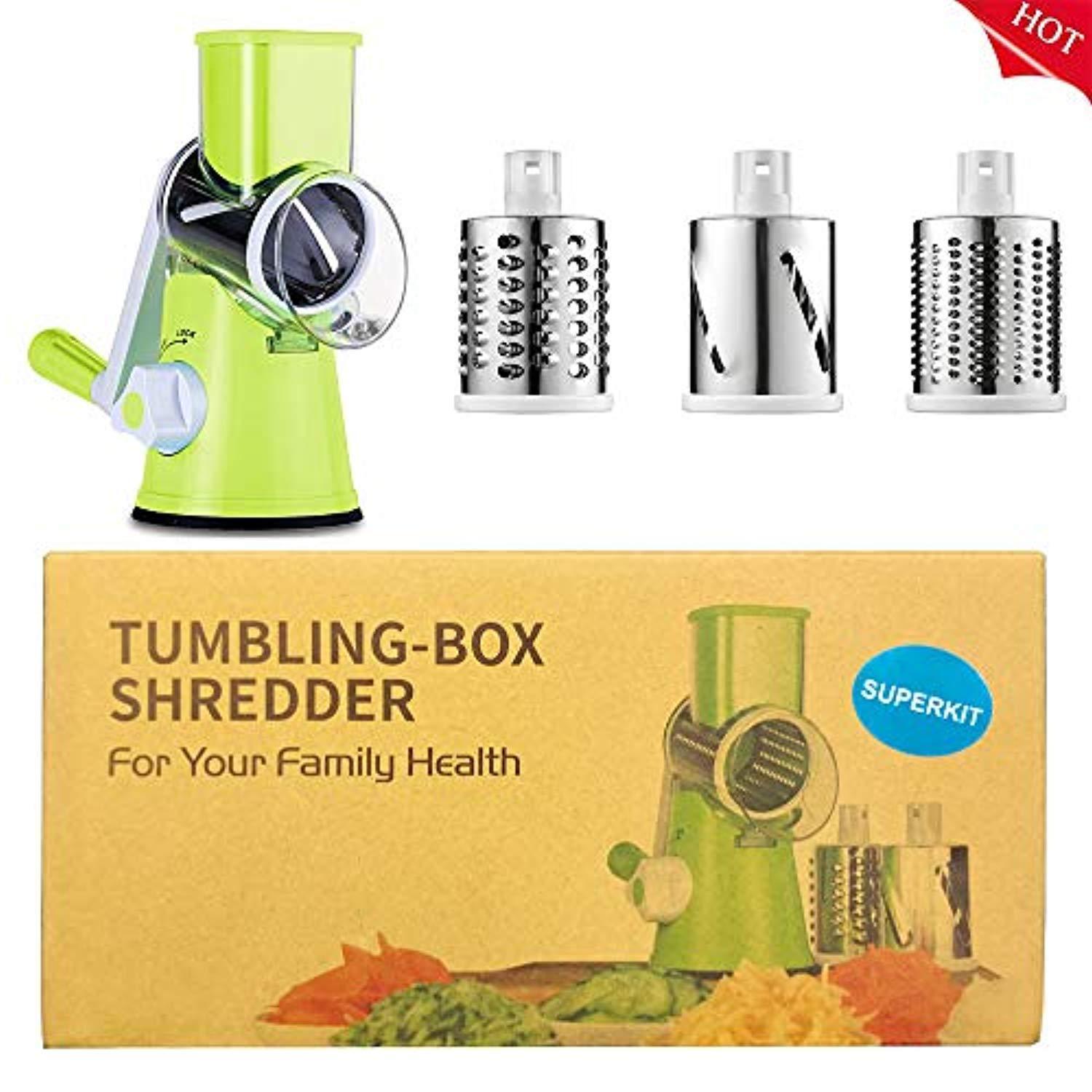 Cheese Grater Rotary Handheld Vegetable Slicer Rotary Drum Grater 3-Blades Manual Vegetable Mandoline Chopper with Suction Cup Feet Vegetable Fruit Cheese Shredder Stainless Steel by SUPERKIT
