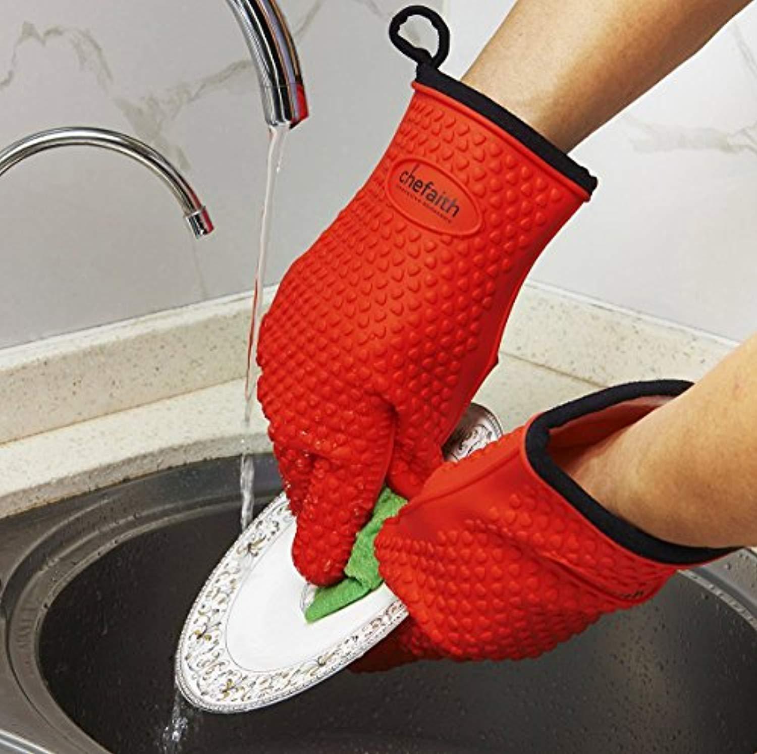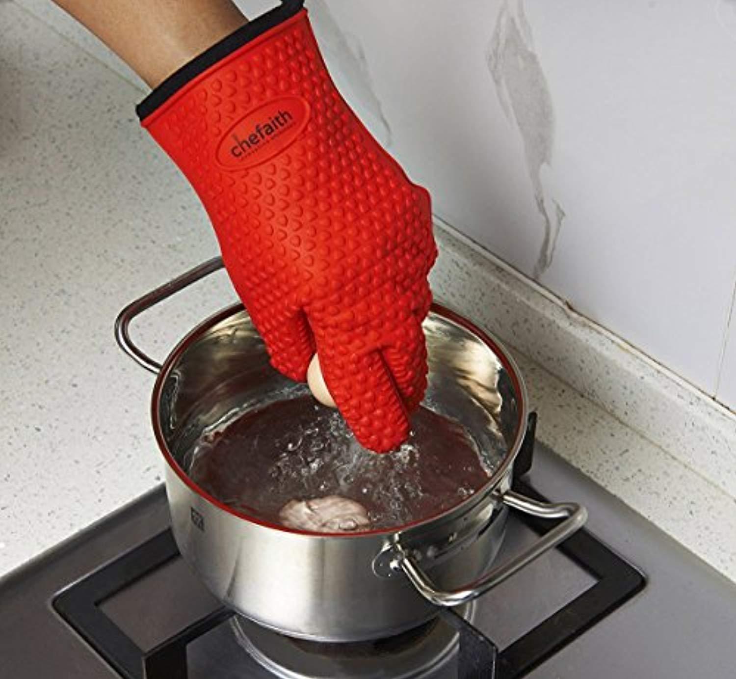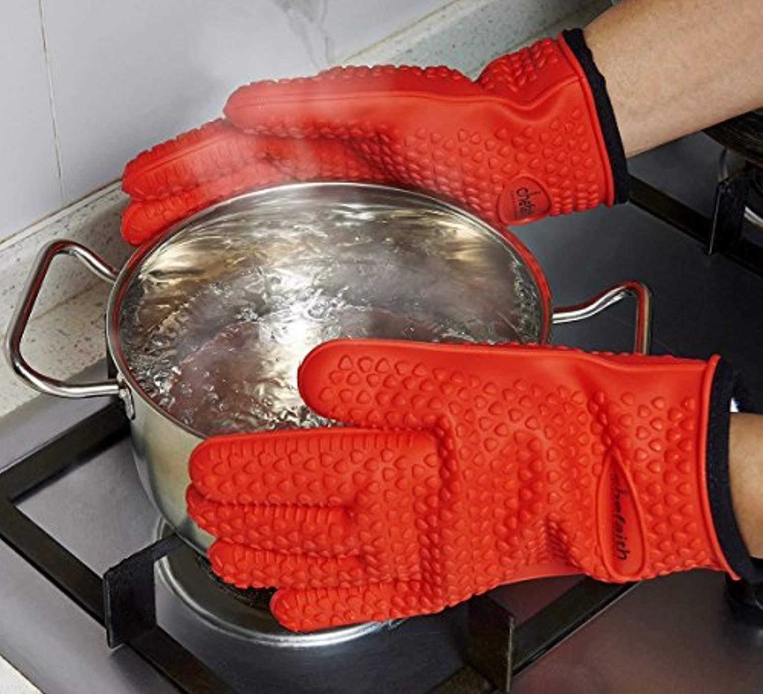 Chefaith Silicone Kitchen Gloves [Barbecue Shredding Smoker Meat Gloves] for Cooking, Baking, BBQ, Grilling [Free Pot Holder as Bonus]- Heat Resistant (Up to 480°F) Oven Mitts, Best Protection Ever
