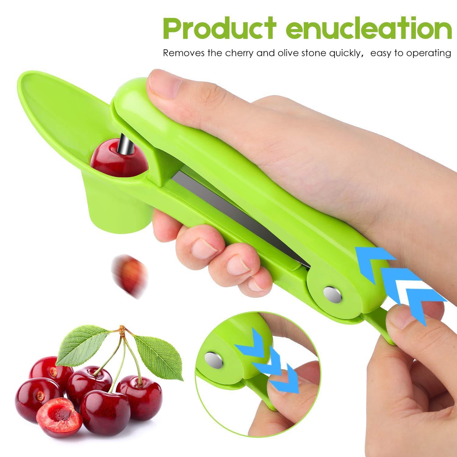 Cherry Pitter, GLIN Easy to Remove Cherry Stone Cherry Pitter tool, Space-Saving Lock Design and Lengthened Splatter Shield Dishwasher Safe, Easy to Clean, Heavy Duty Simple and Durable Olive Pitter