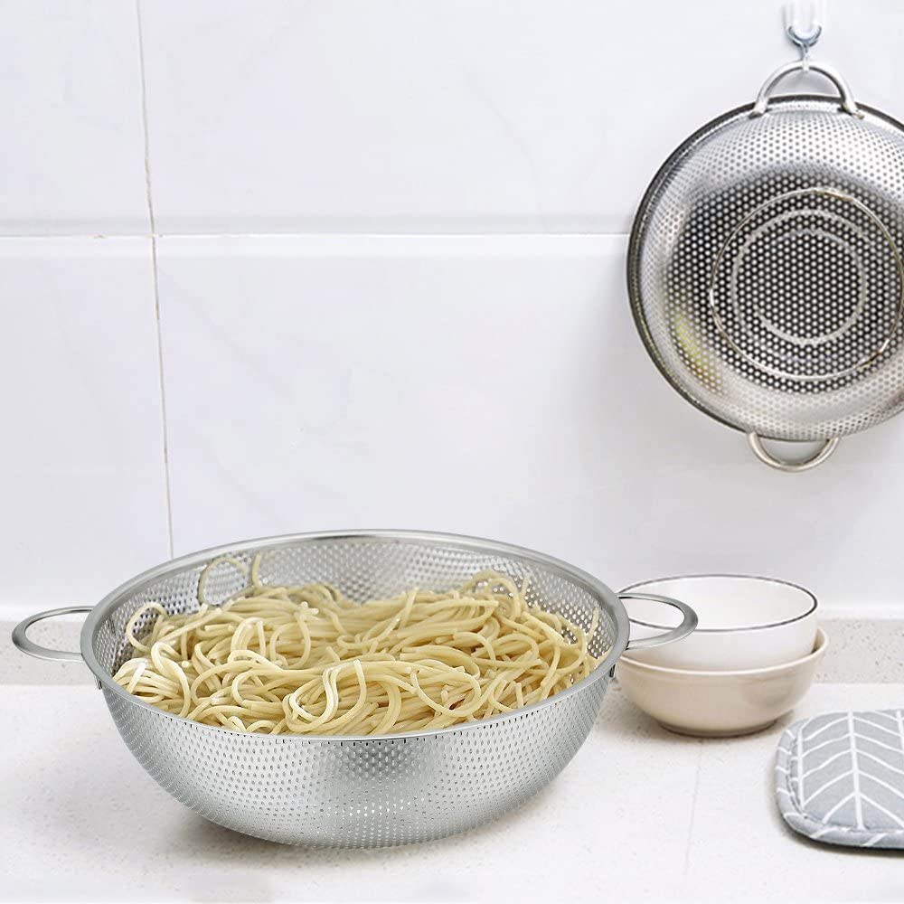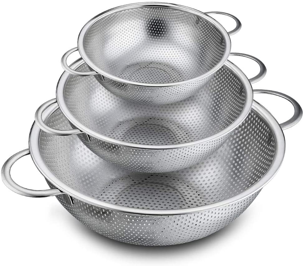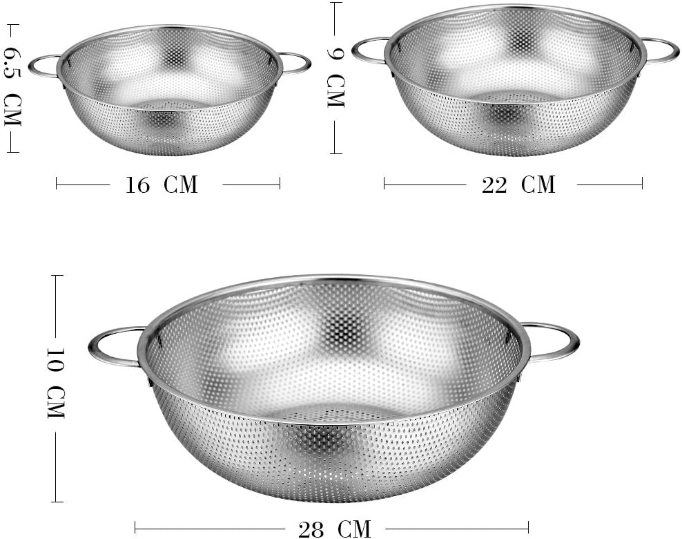 CIA Colander Set of 3, TeamFar Stainless Steel Micro-Perforated Colander with Handle, Metal Colanders Strainers for Vegetable Pasta Fruit Food, Durable & Dishwasher Safe - Various Size (16/22/28 cm)