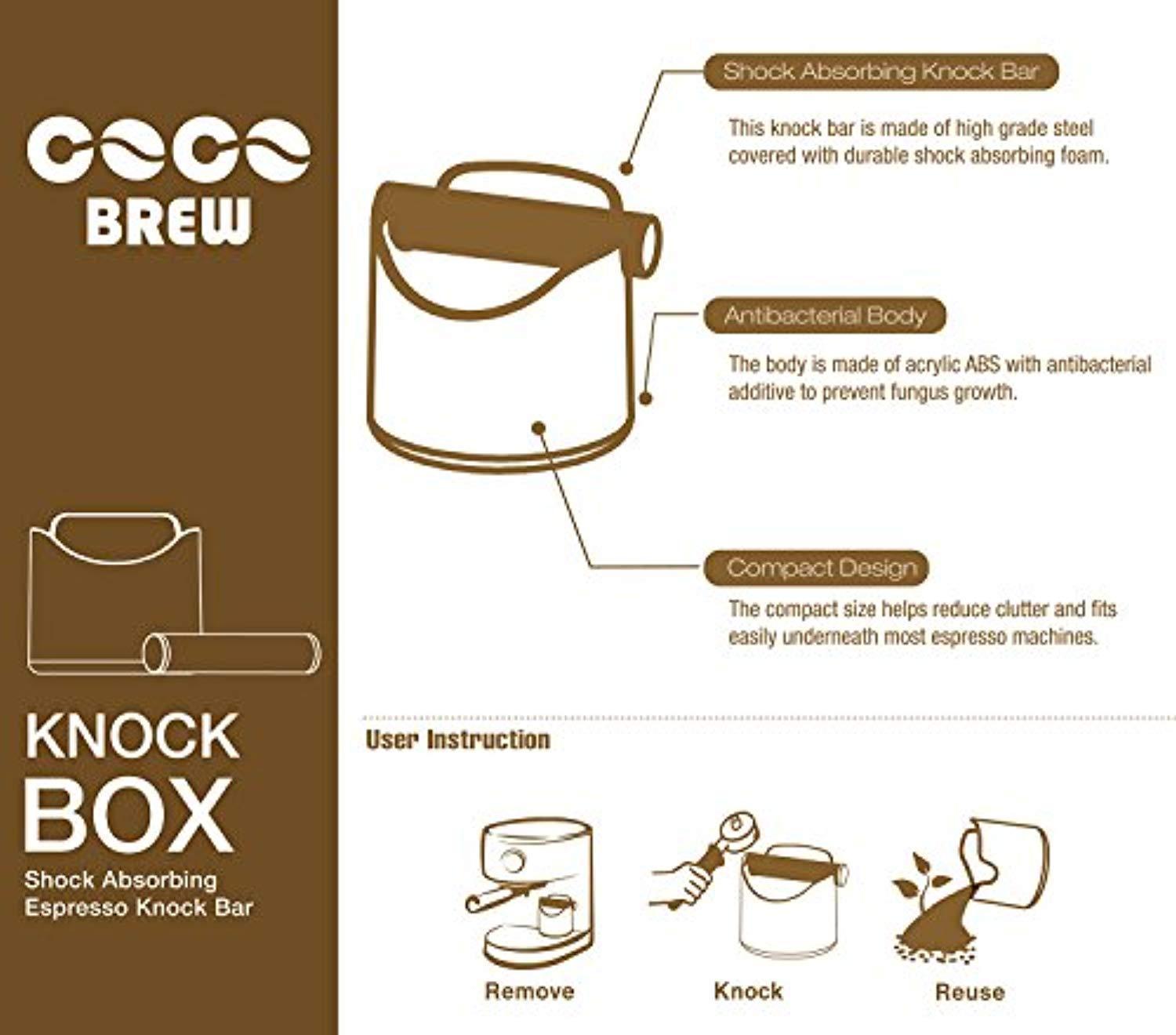 CoCo Brew, Espresso Knock Box - Durable 4.7 Inch, Barista Style Sturdy Shock-Absorbent Knockbox - Dishwasher Safe (Grey)