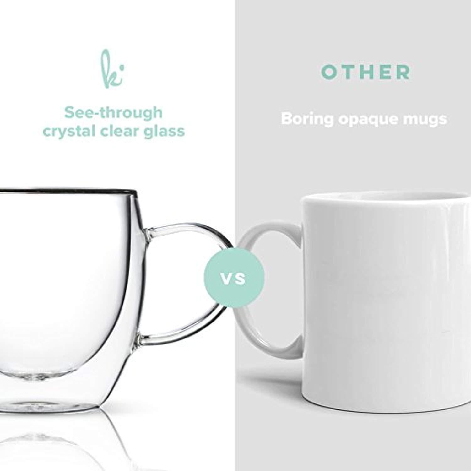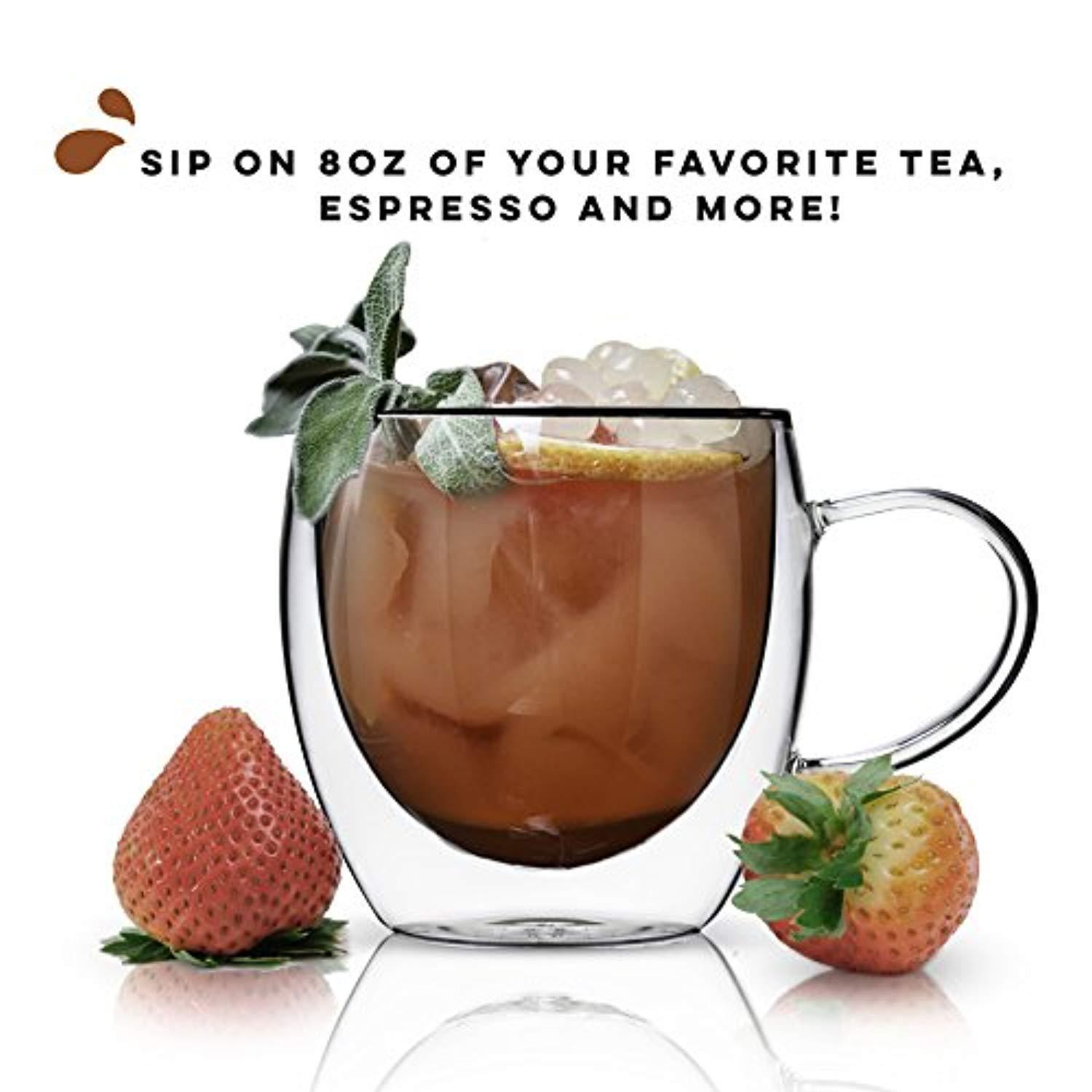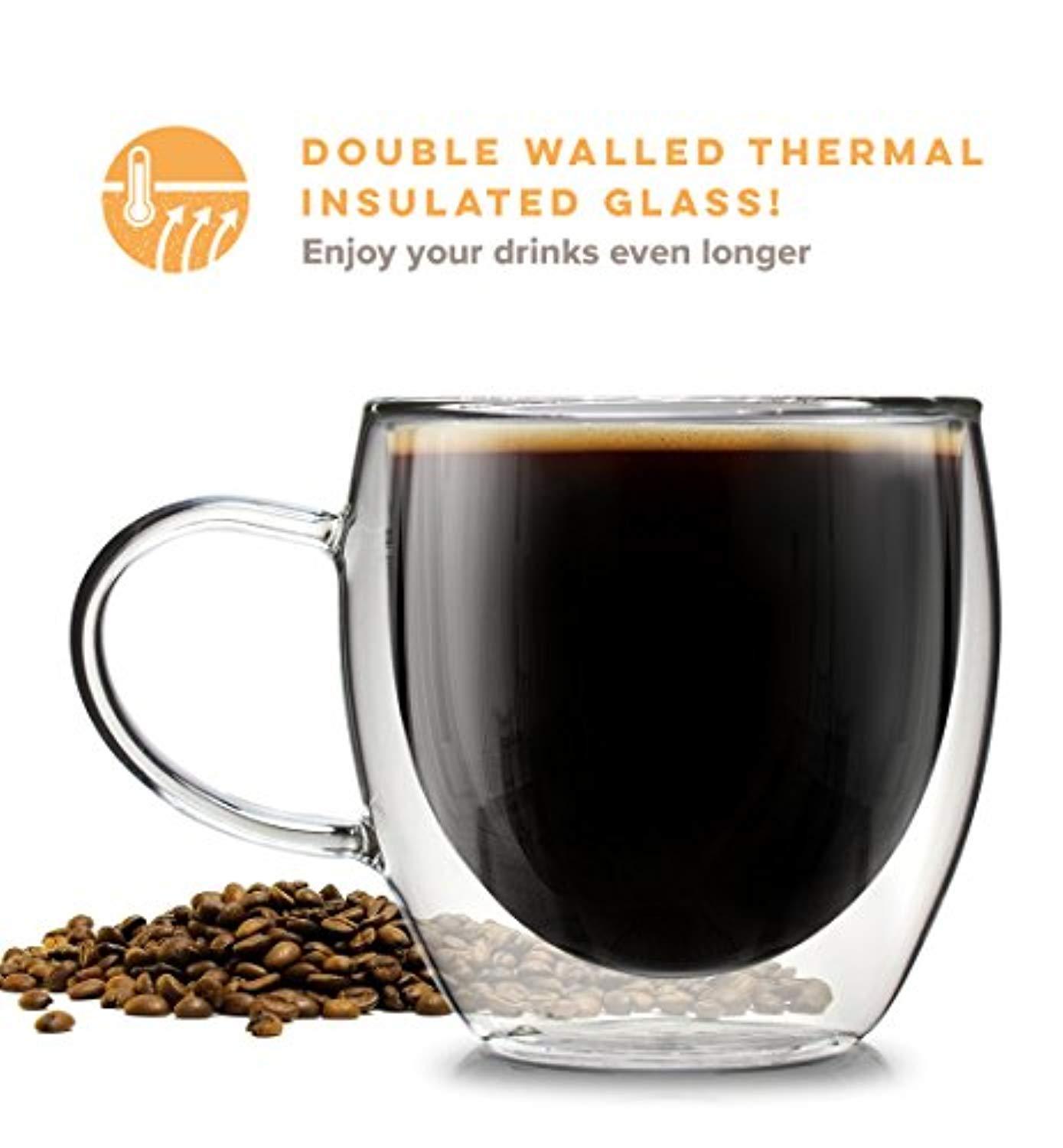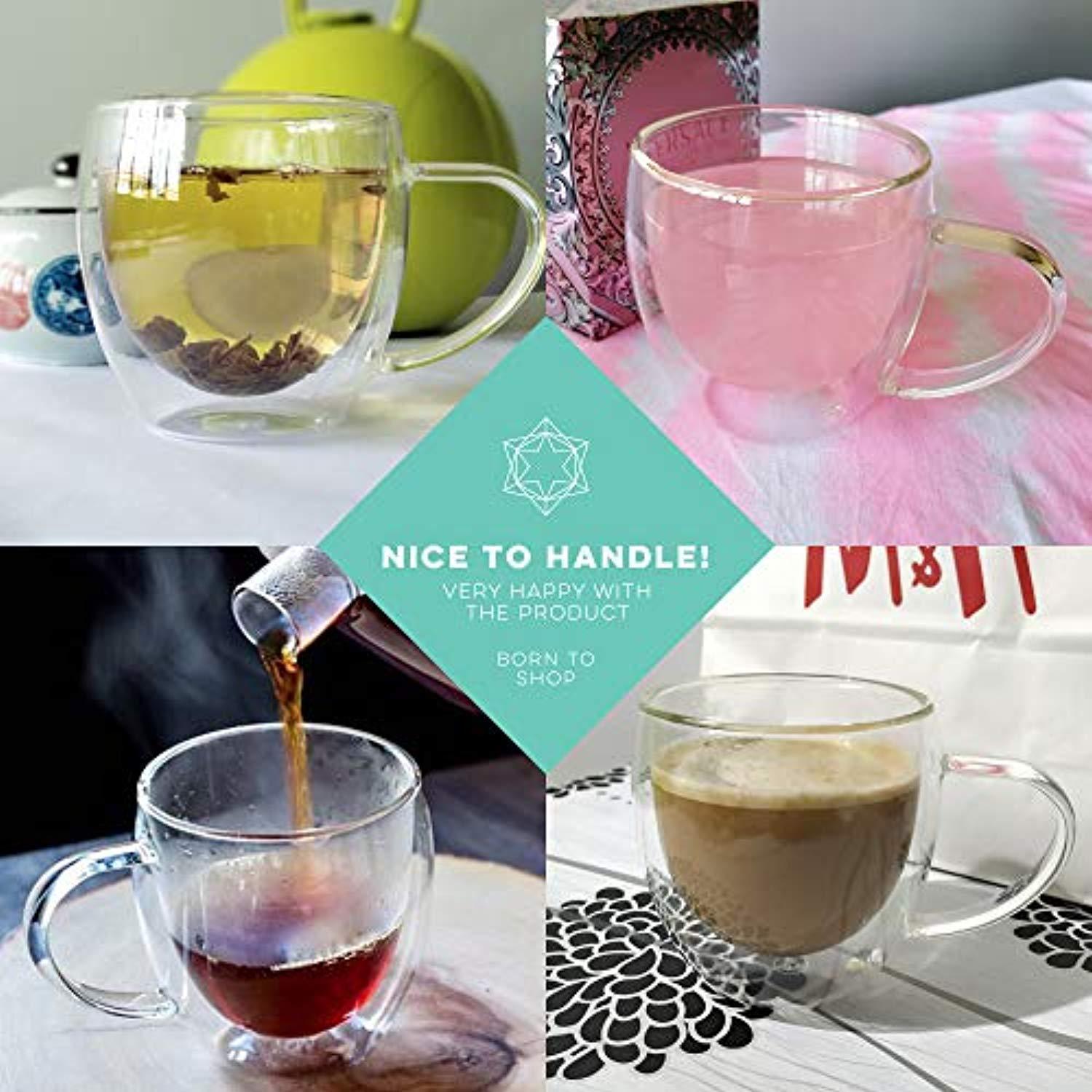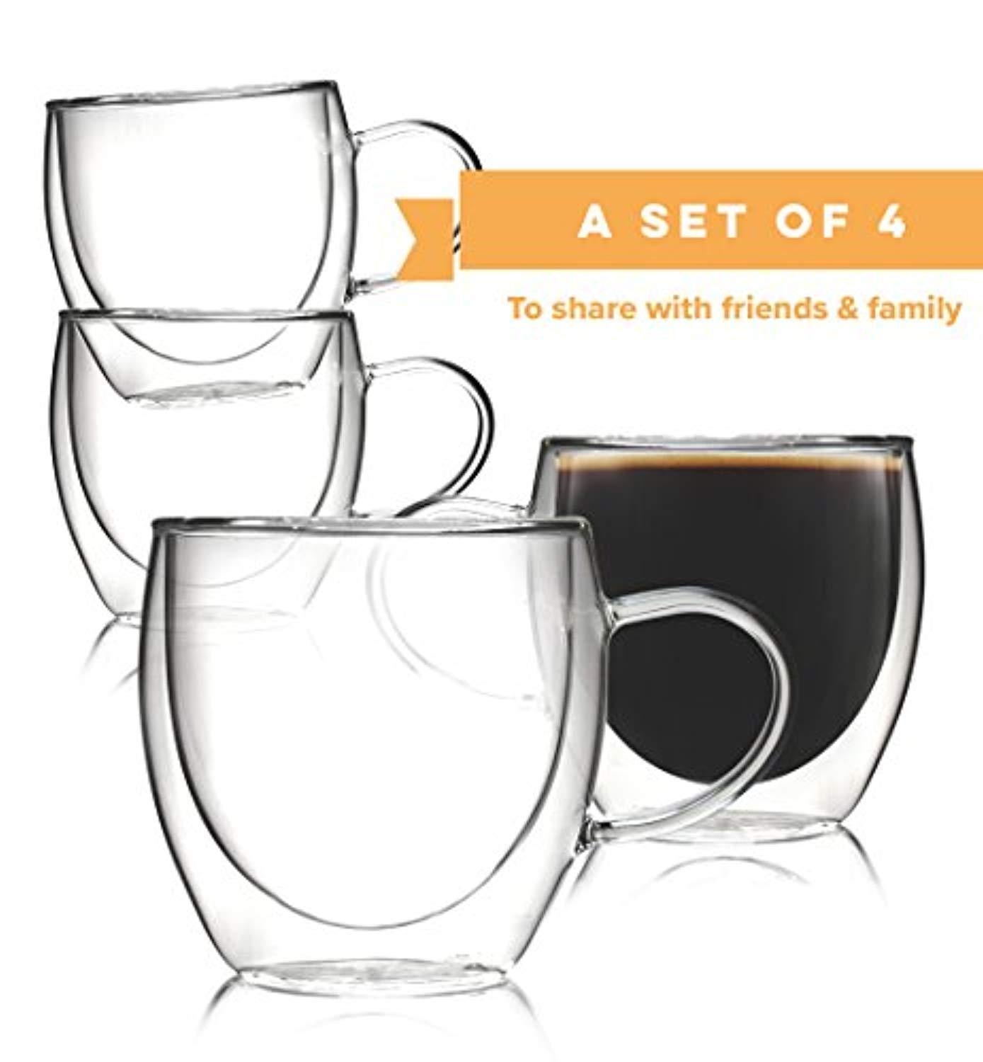 Coffee or Tea Glasses Set of 4-8oz Double Wall Thermal Insulated Cups with Handle