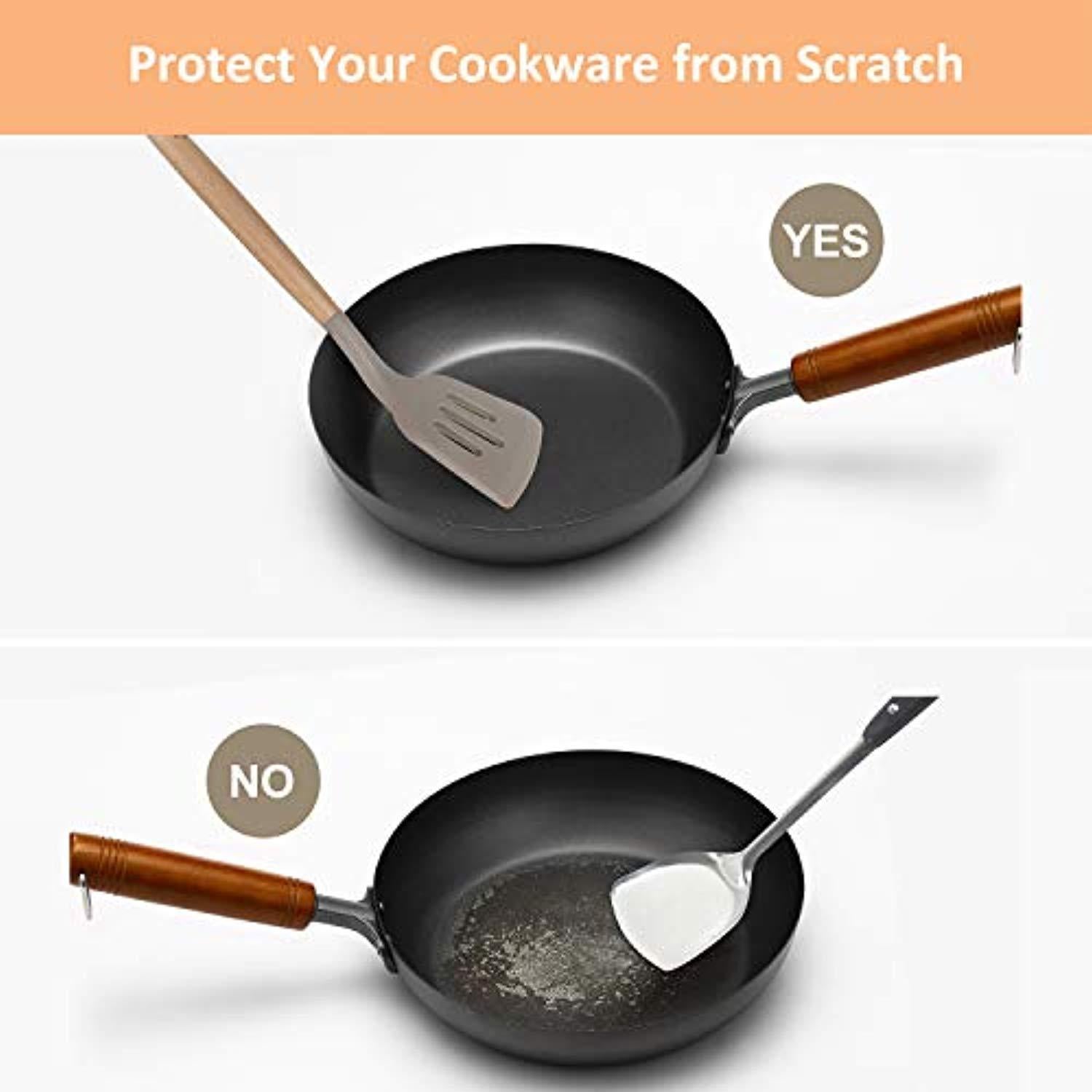 Cooking Utensils Kitchen Utensil Set Wooden Handle - 10pcs Silicone Baking Tools Spatula Set, Kitchen Serving Gadgets Non-Stick Heat Resistant for Cookware, DECLUTTR