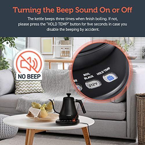 COSORI Electric Gooseneck Kettle with 5 Variable Presets, Pour Over Coffee Kettle & Tea Kettle, 100% Stainless Steel Inner Lid & Bottom, 1200 Watt Quick Heating, 0.8L, Matte Black