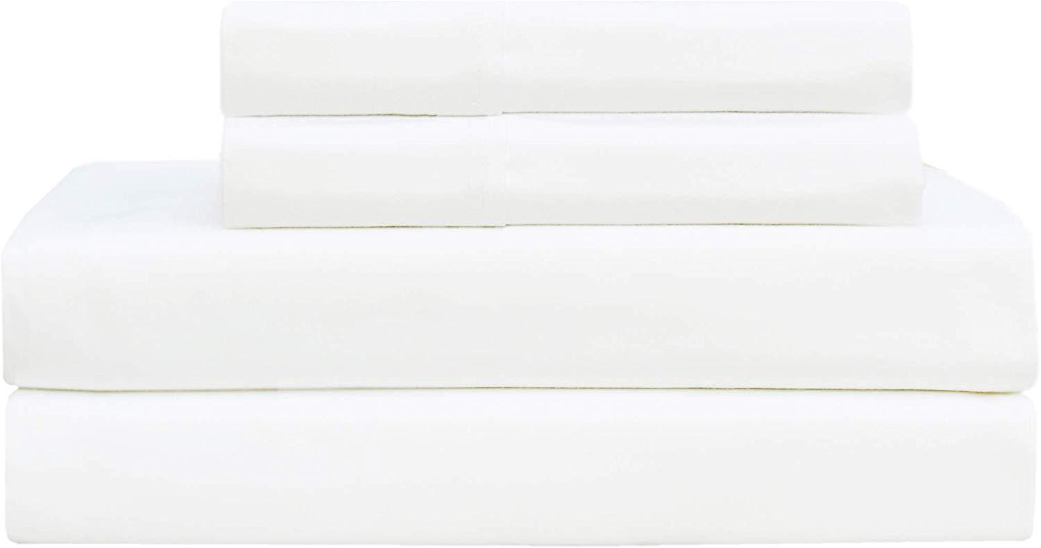 400 THREAD COUNT: Perfect for your master or guest bedroom, this four-piece sheet set boasts a premium 400 thread count. Each piece’s soft surface will comfort your body as you drift off to sleep. Durably composed, the set resists pilling and tearing for longer-lasting use too.