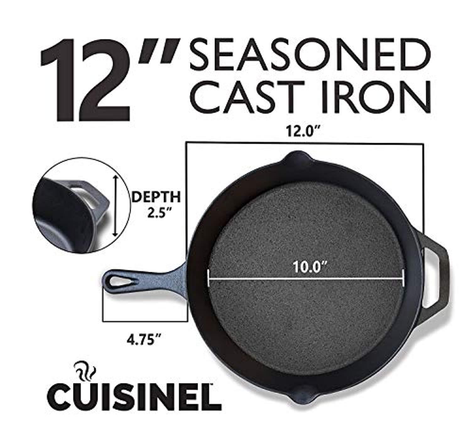 cuisinel - Pre-Seasoned Cast Iron Skillet (12-Inch) w/Handle Cover Oven Safe Cookware | Heat-Resistant Holder | Indoor and Outdoor Use | Grill, Stovetop, Induction Safe. New Version