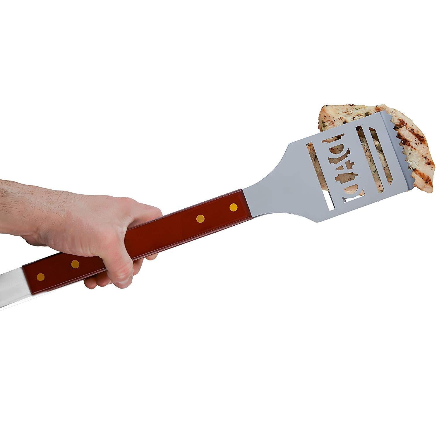 Dad BBQ Grill Set with Carry Case - 4-Piece Includes Spatula, Tongs, Digital Thermometer and Case - Great Gift for Father's Day, Dad's Birthday or Anytime for Dad
