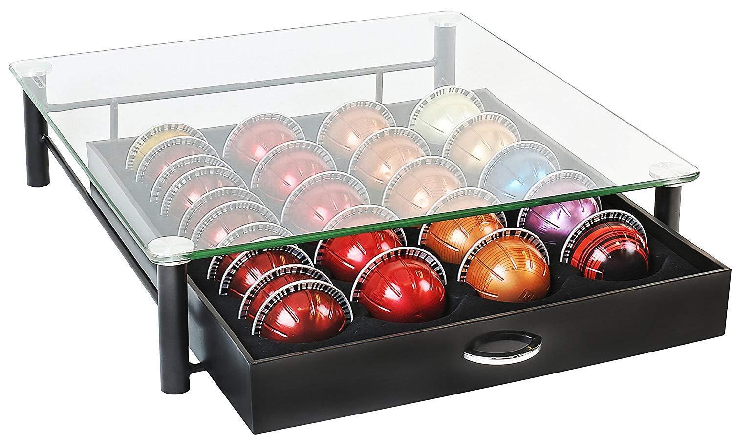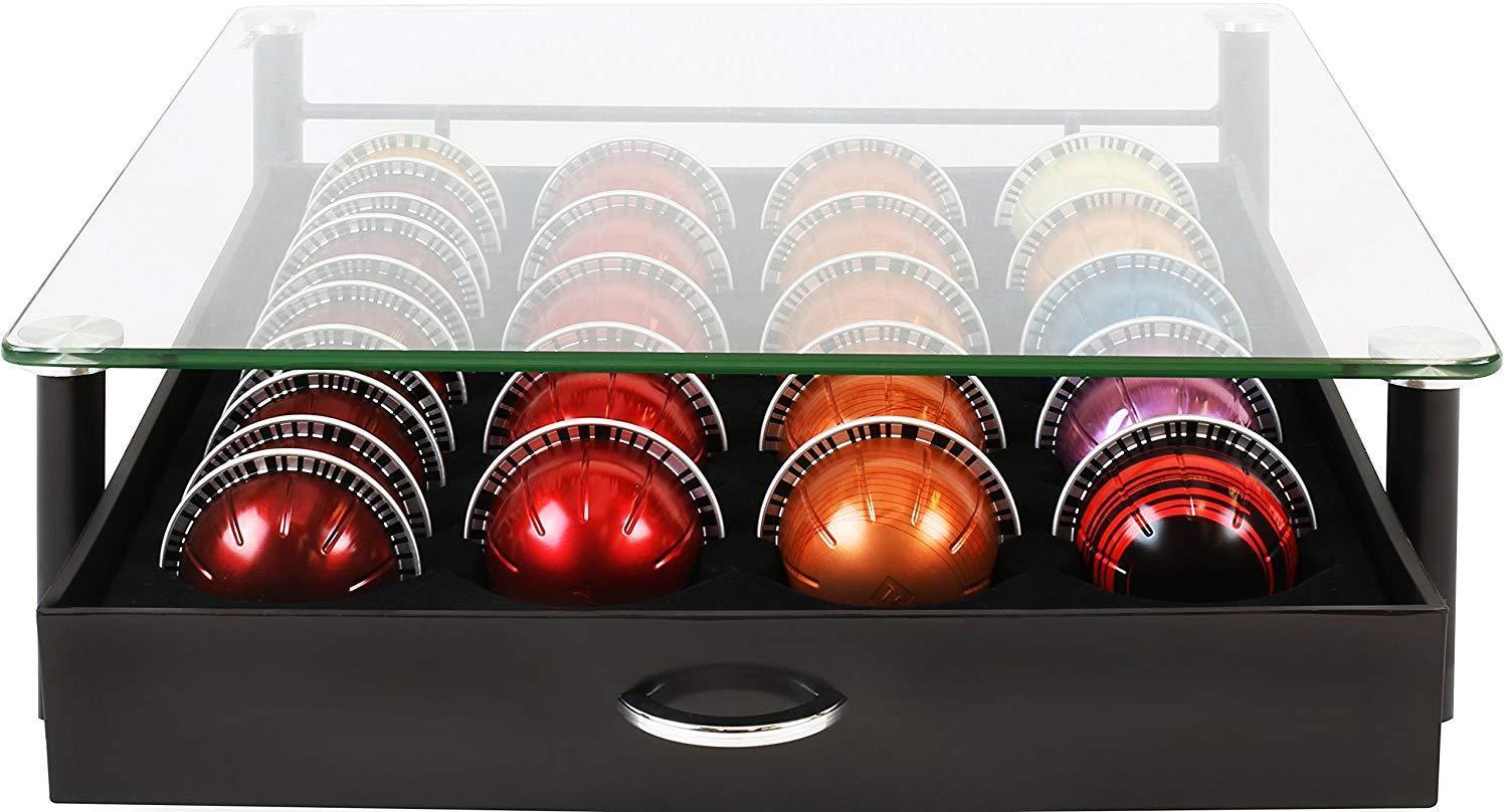 DecoBros Crystal Tempered Glass Nespresso Vertuoline Storage Drawer Holder for Capsules
