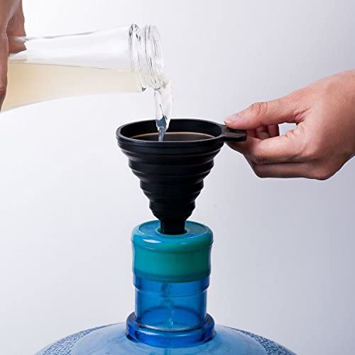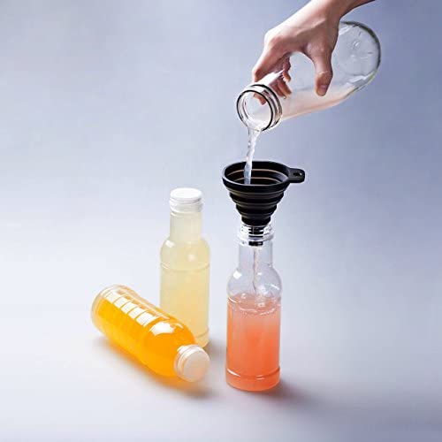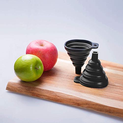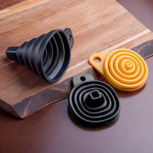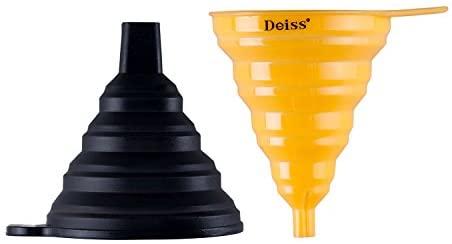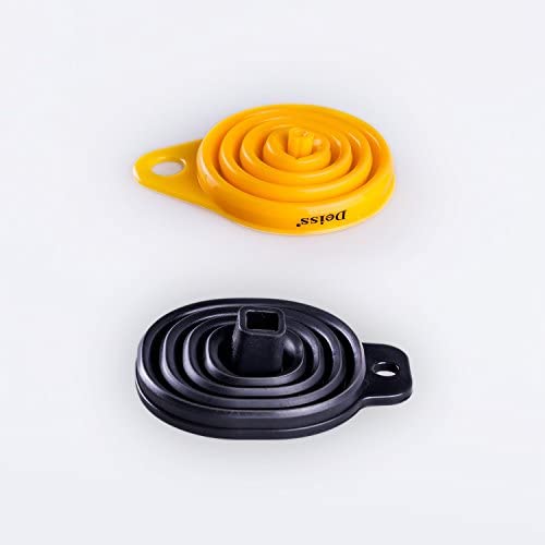 Deiss ART Silicone Collapsible Funnel Set - Rounded & Squared Foldable Funnels - Food Grade, BPA free, Dishwasher Safe - Set of 2 (Black, Yellow)